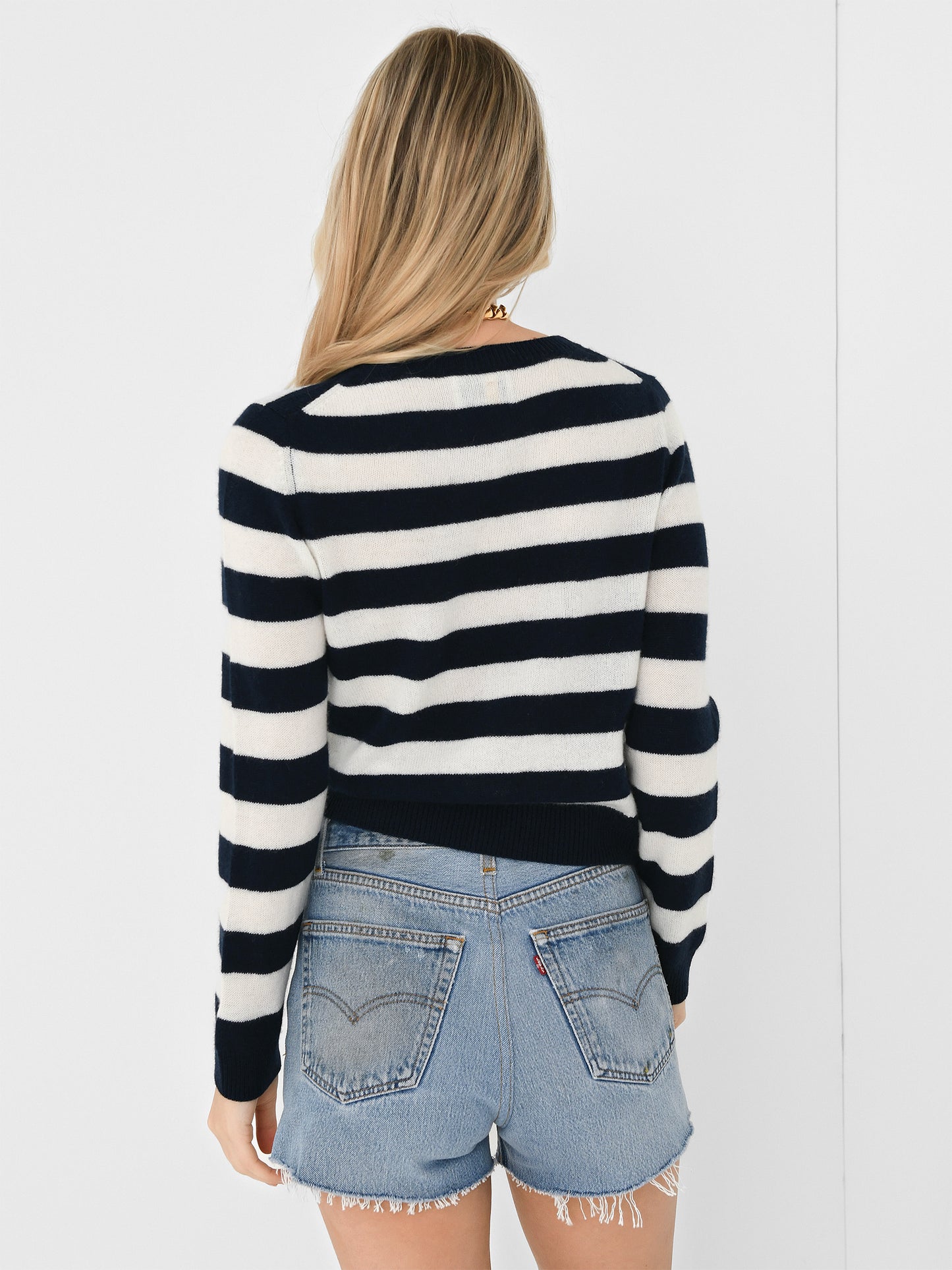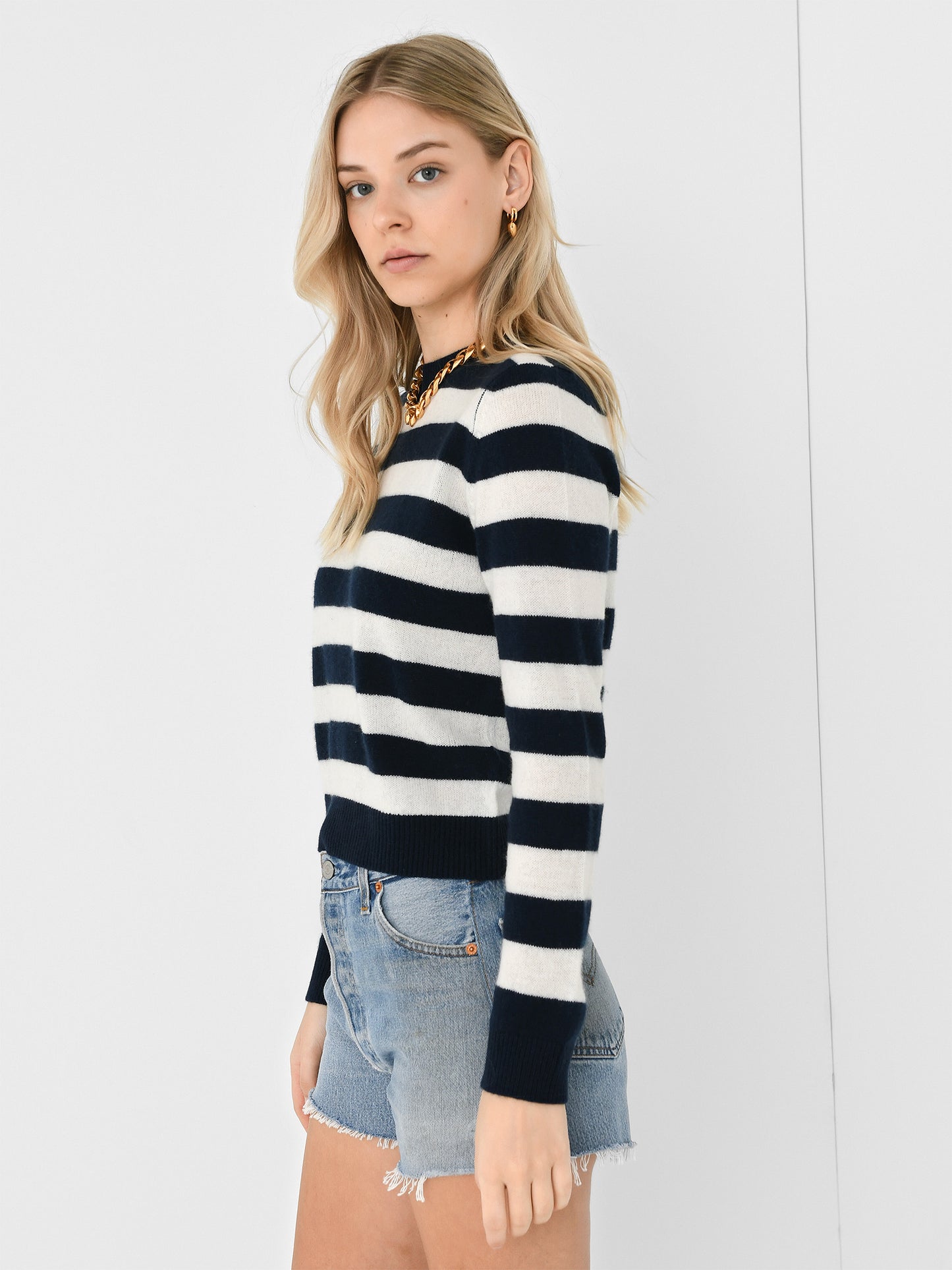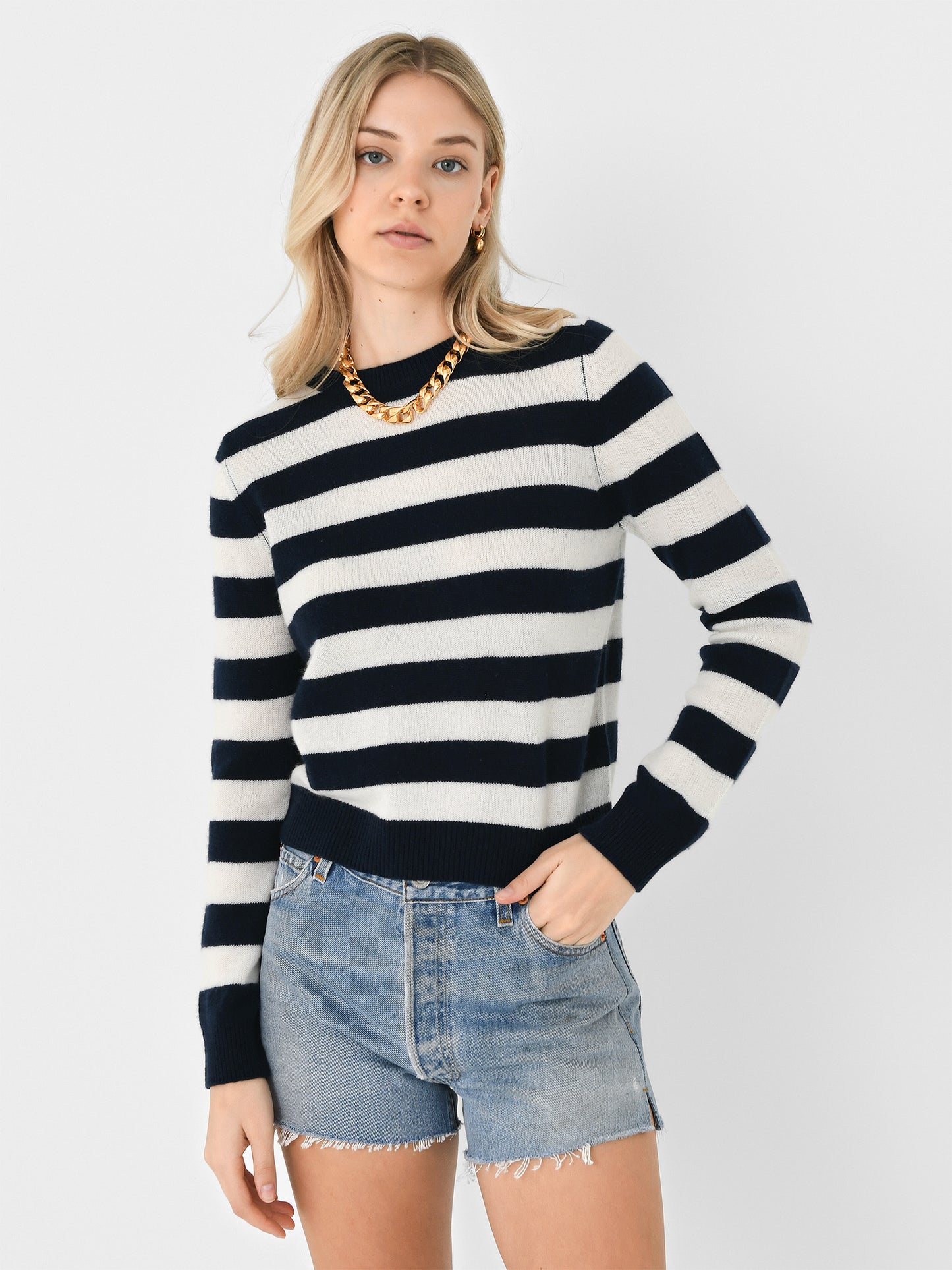 A classic two-tone striped sweater made from soft cashmere knit fabric.