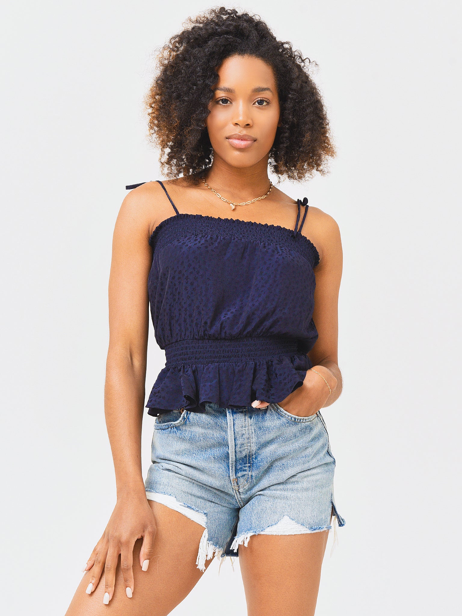 - Model is wearing size Small top.