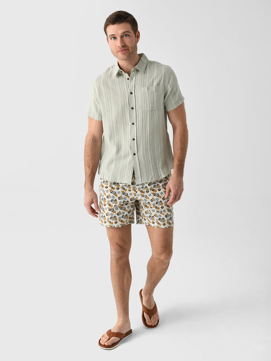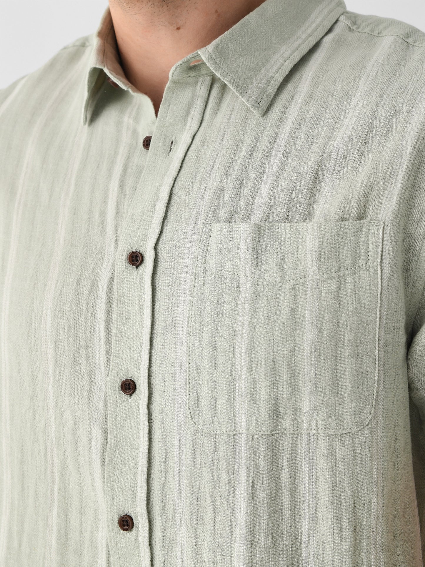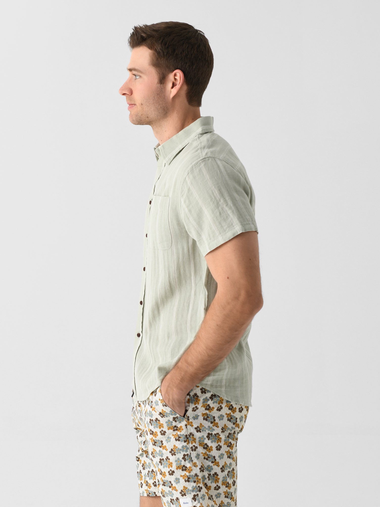 The best-selling Alan Shirt is made from a soft, breathable cotton linen herringbone blend. Its comfortable yet polished look and airy design make it perfect for warm weather.