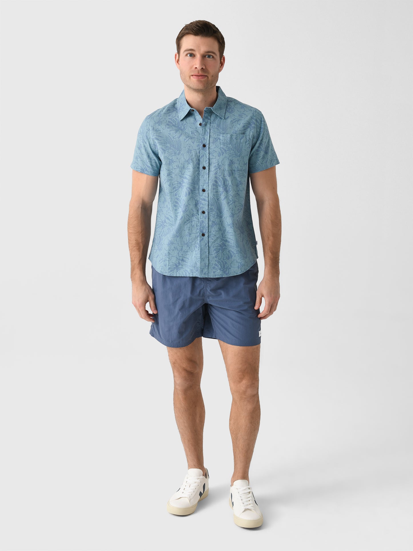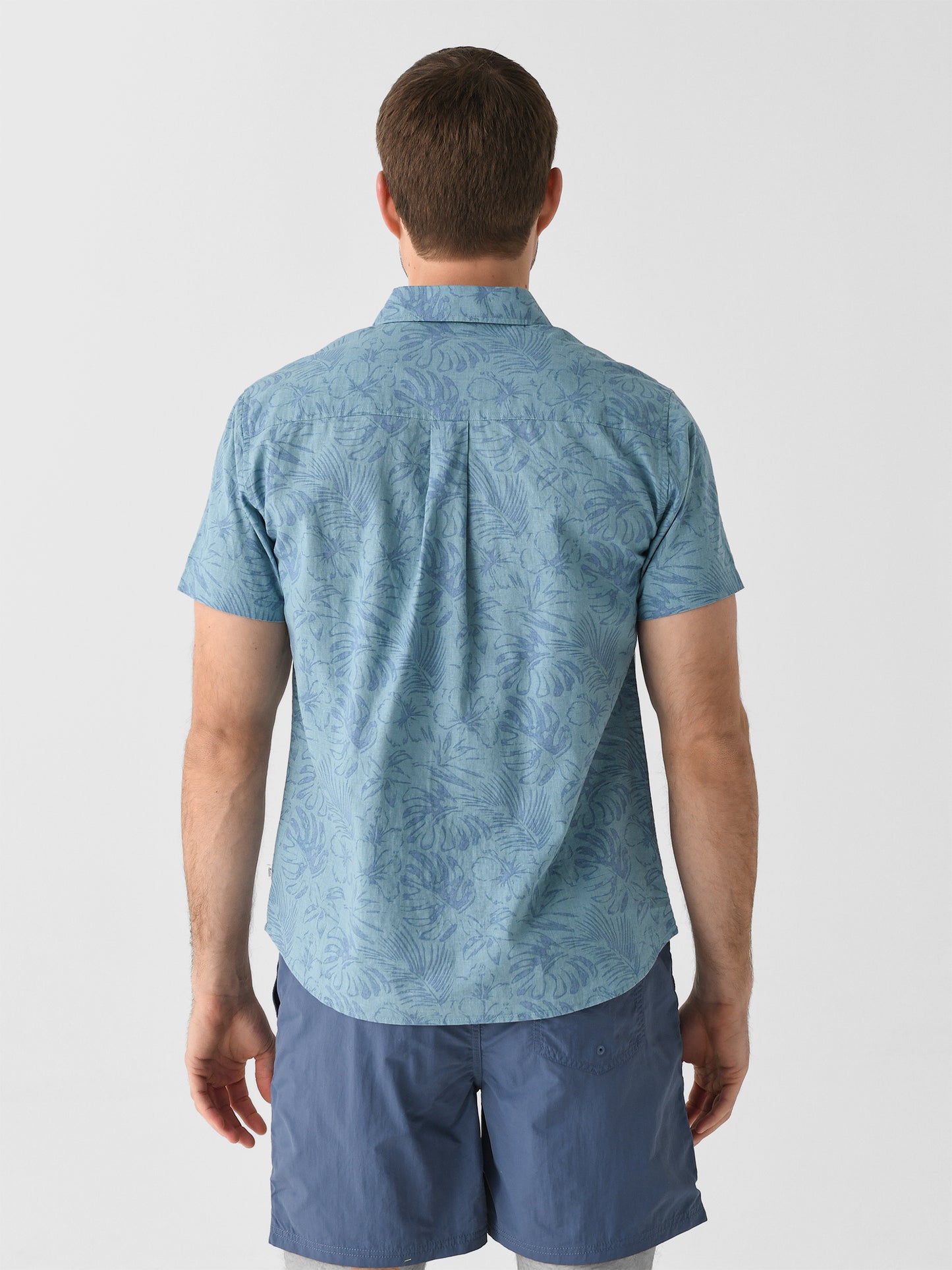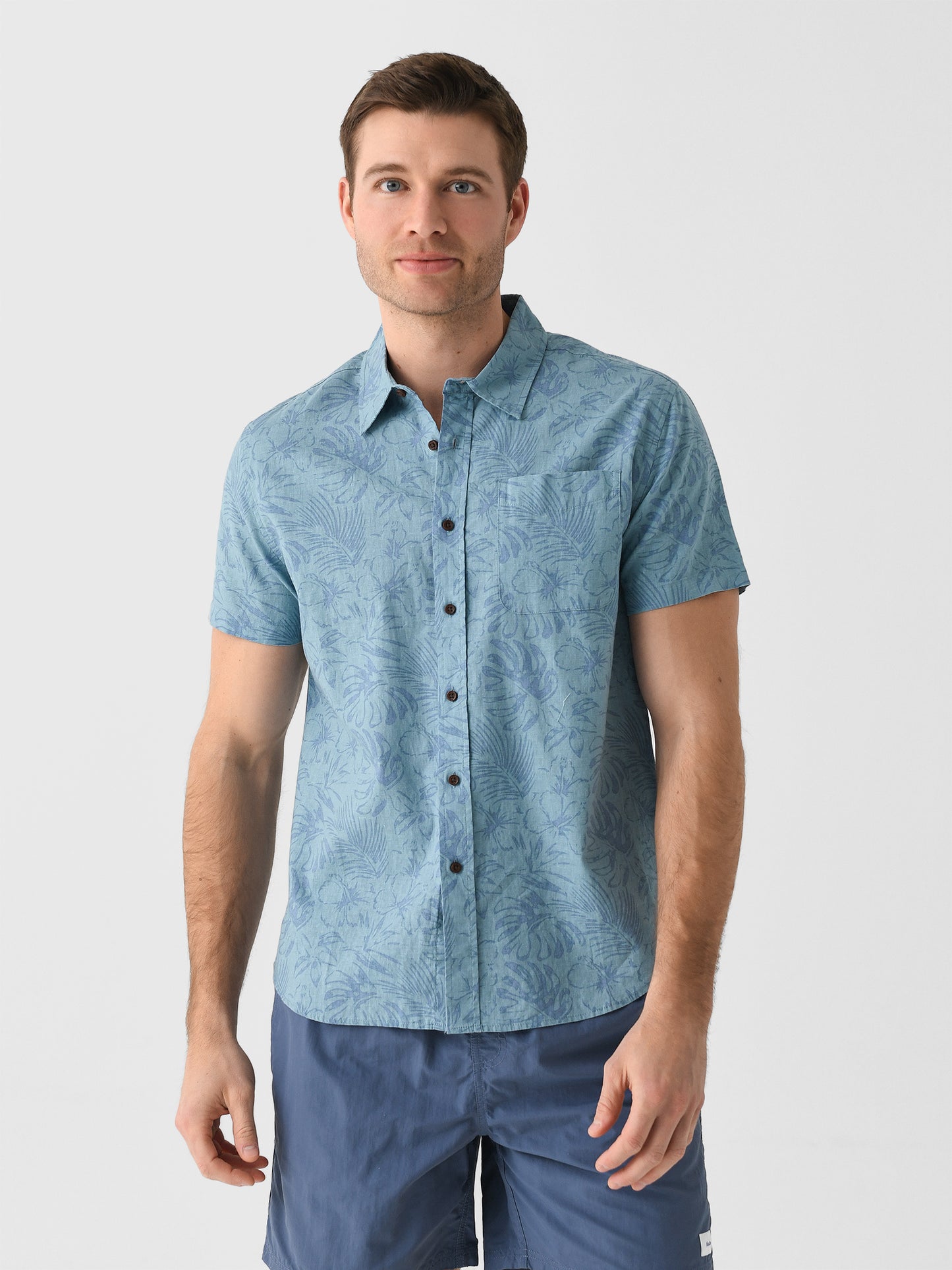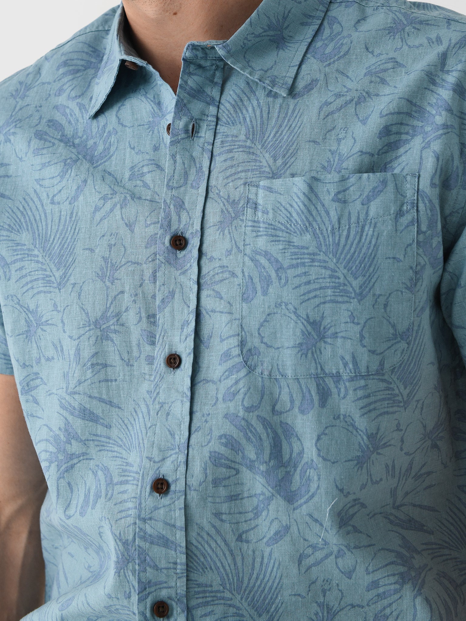 This lightweight woven shirt is made from a soft cotton and linen blend and features a tropical floral print.
