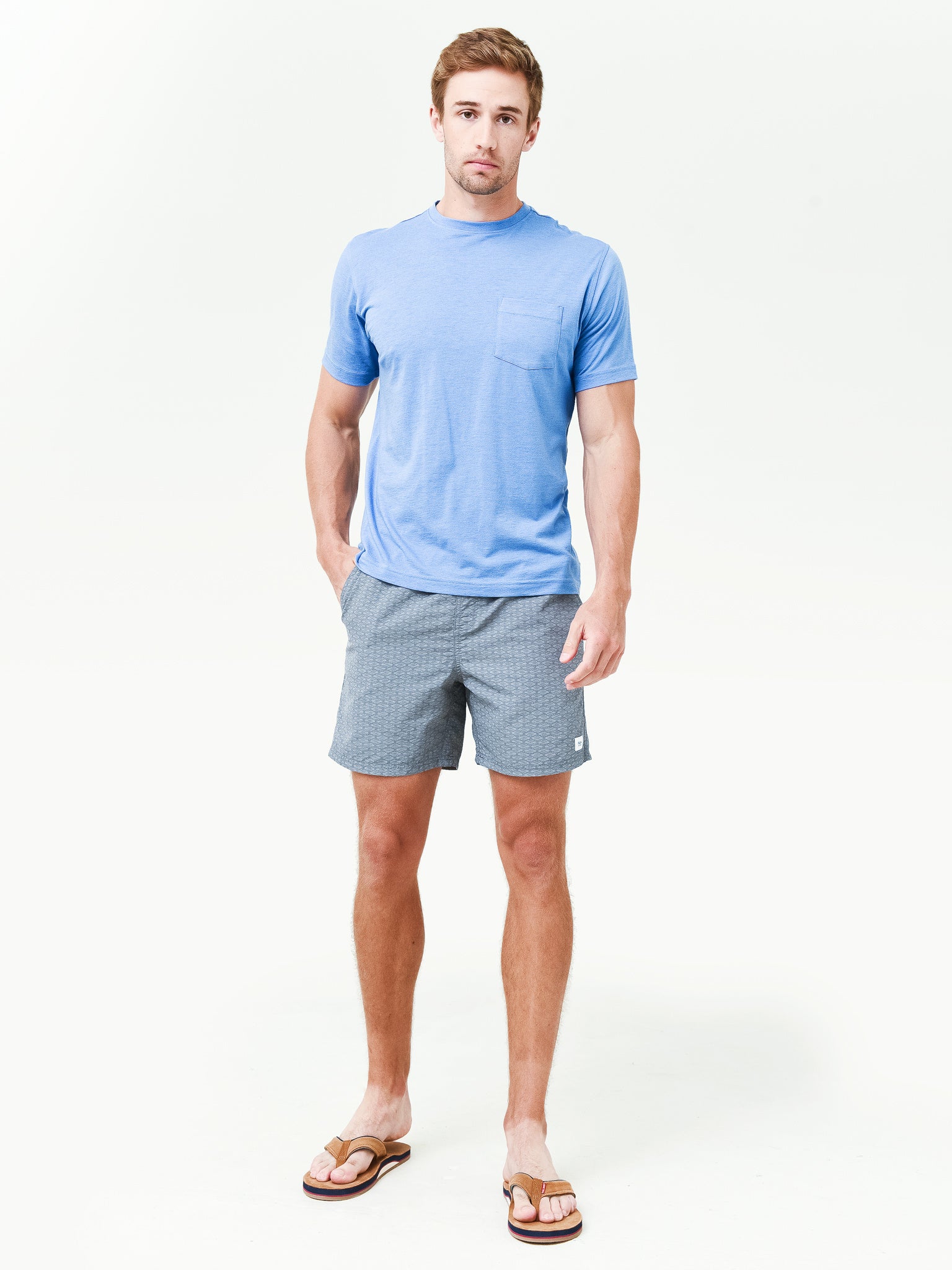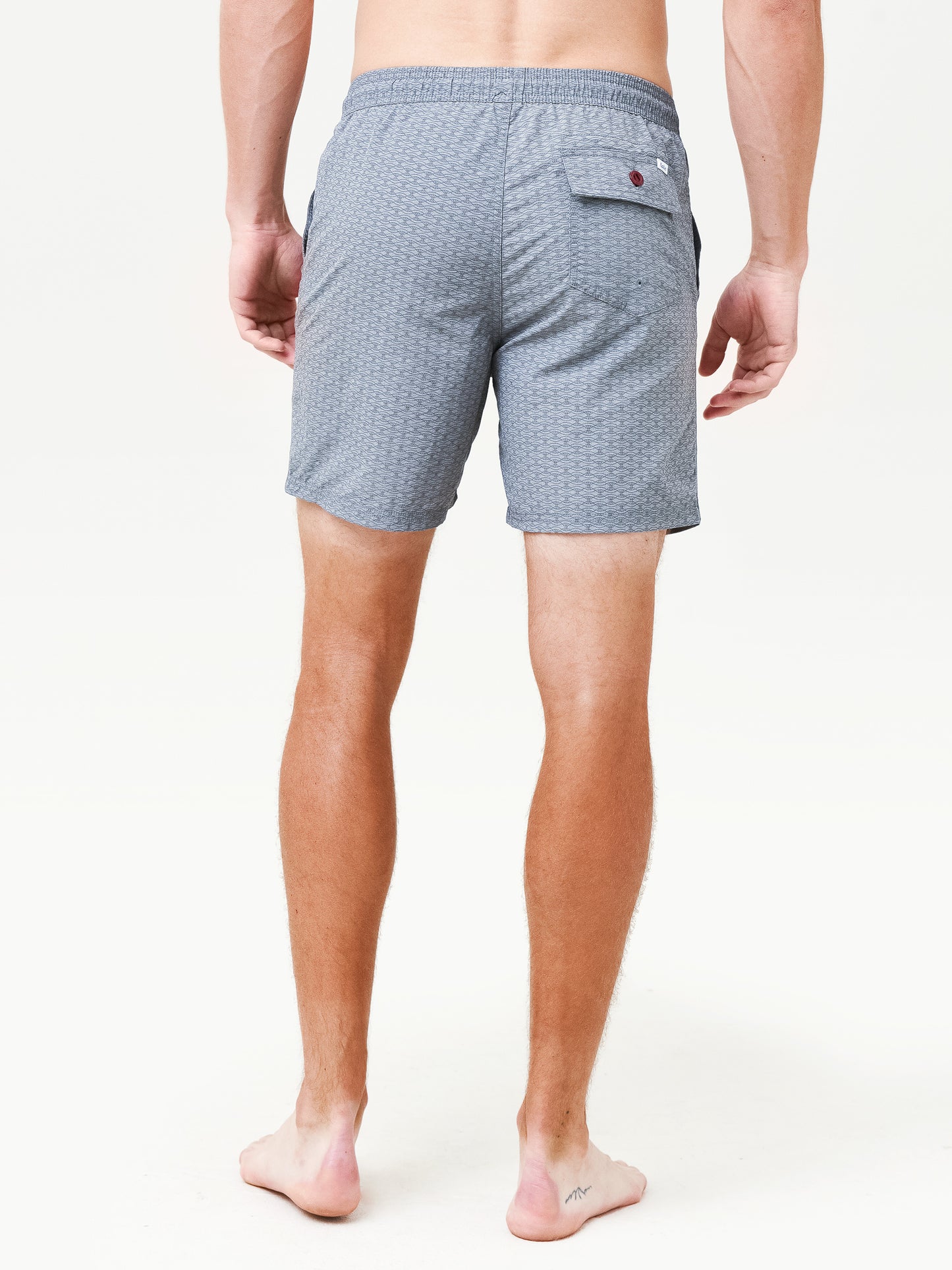 Classic swim trunk with multiple pockets.