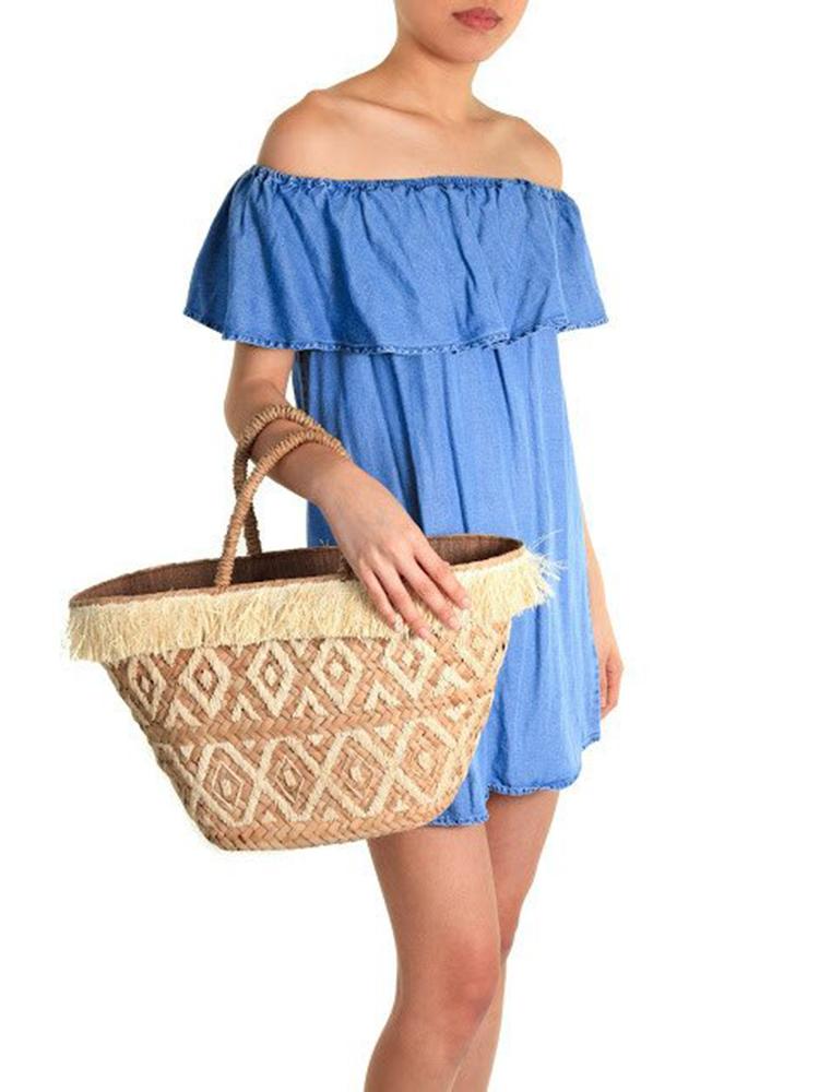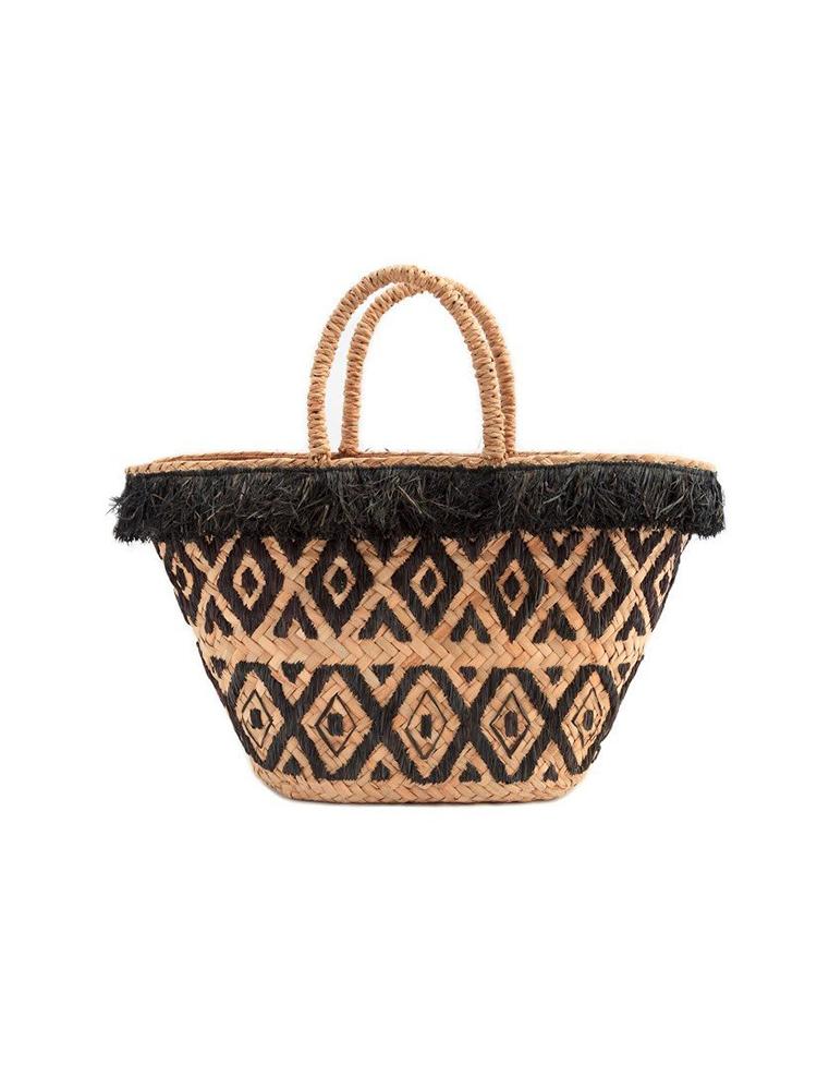 Made out of seagrass and hand embroidered with raffia, Kayu's Lillian tote features a drawstring enclosure to keep all your belongings safe and sound