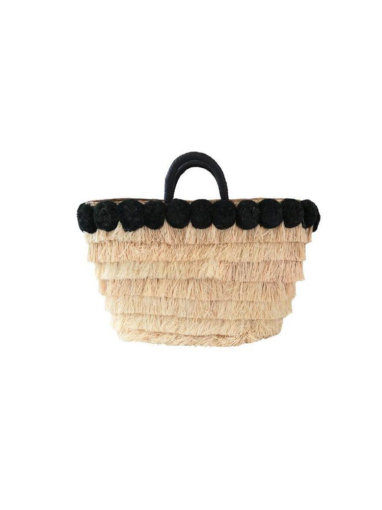 - Straw fringe and pom-poms