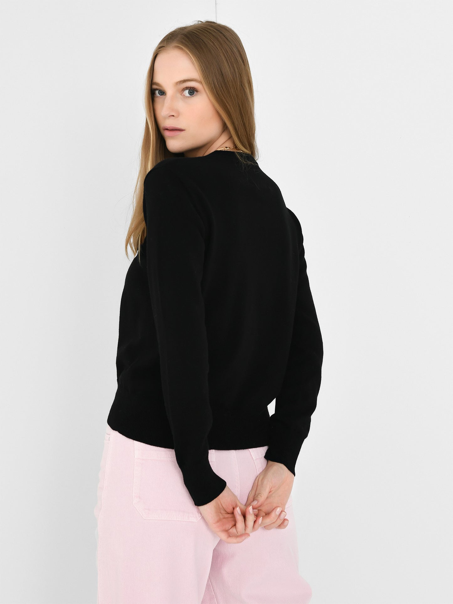 A soft cotton knit sweater featuring a contrast embroidered rope graphic.