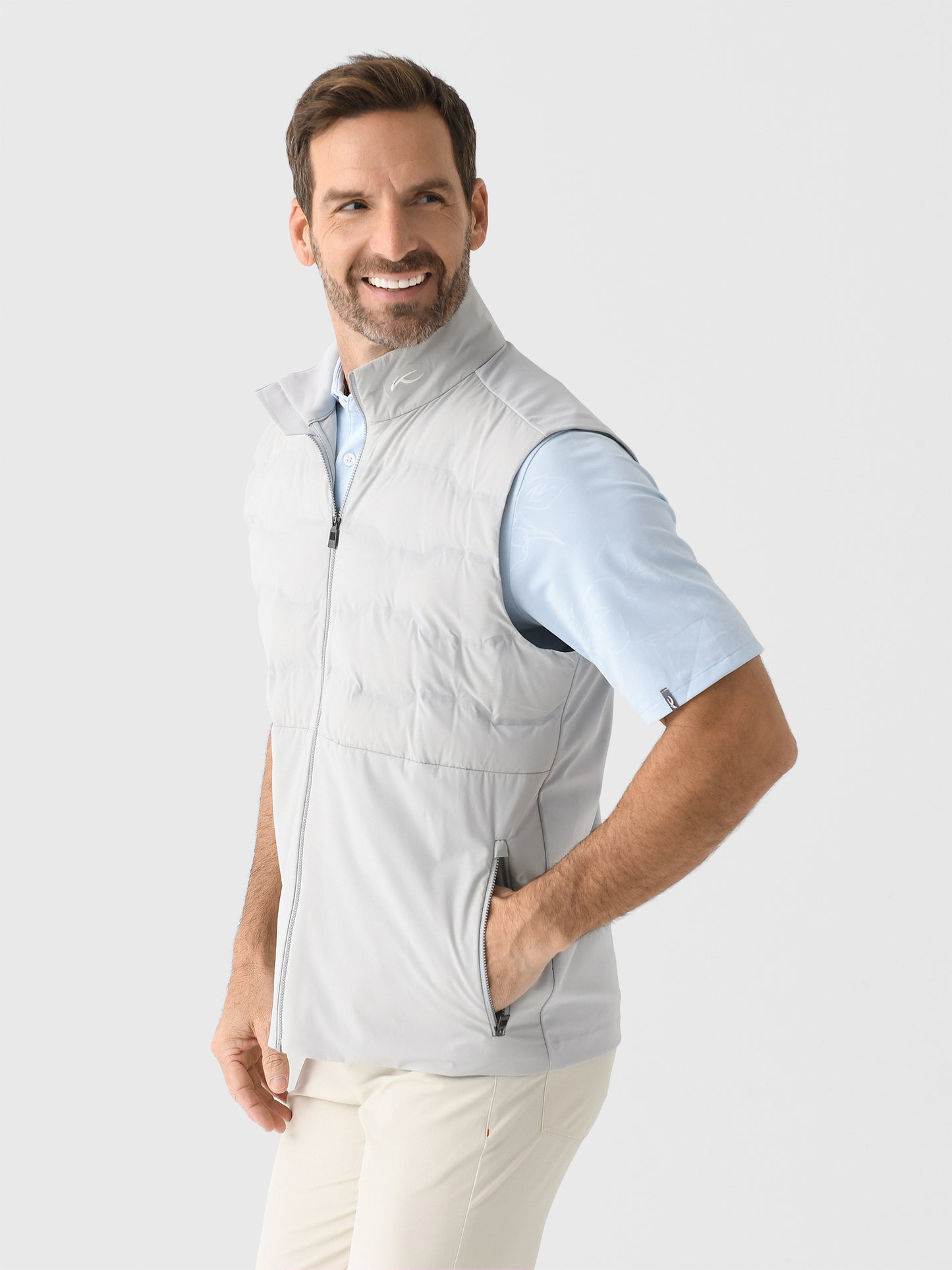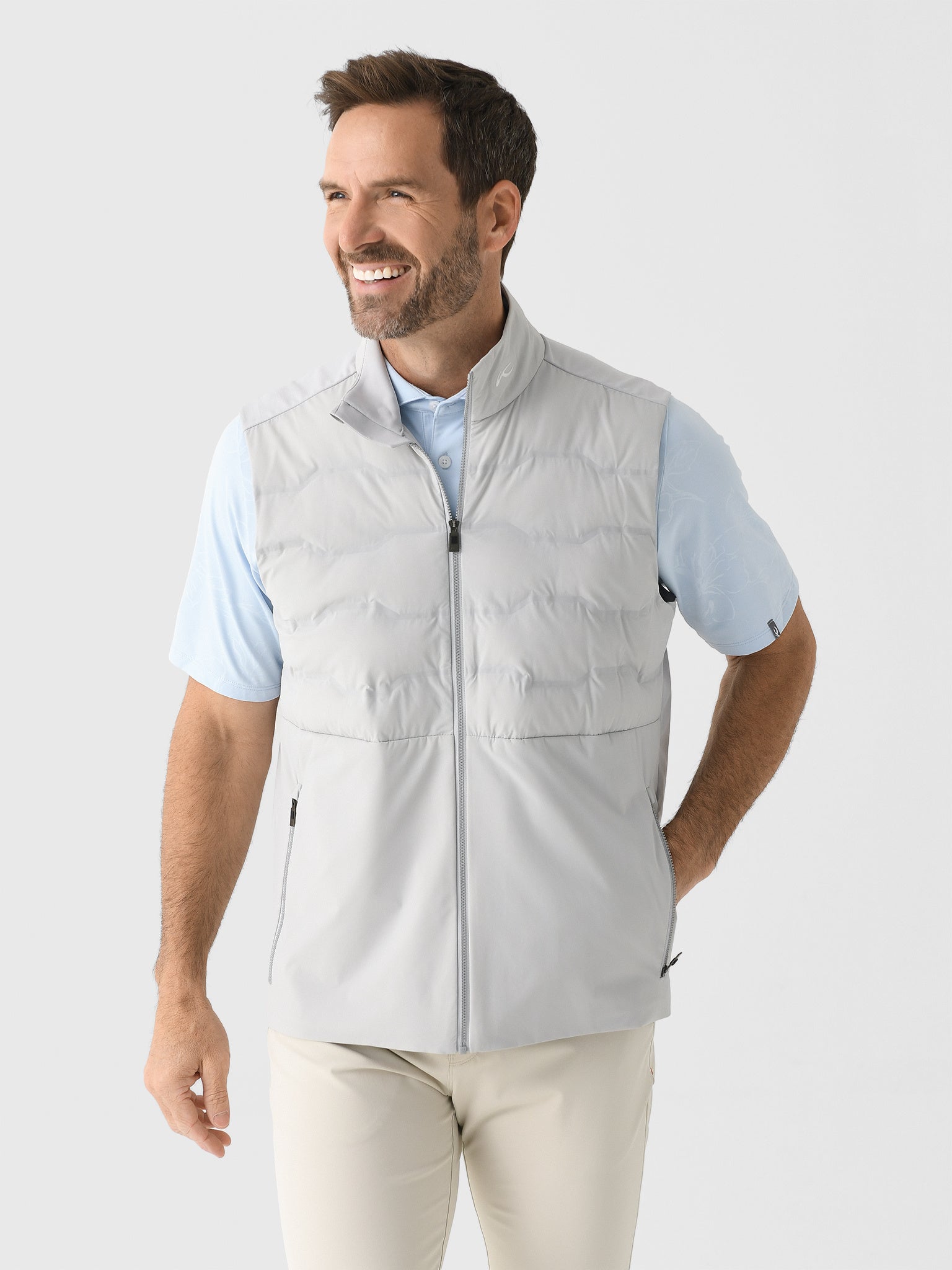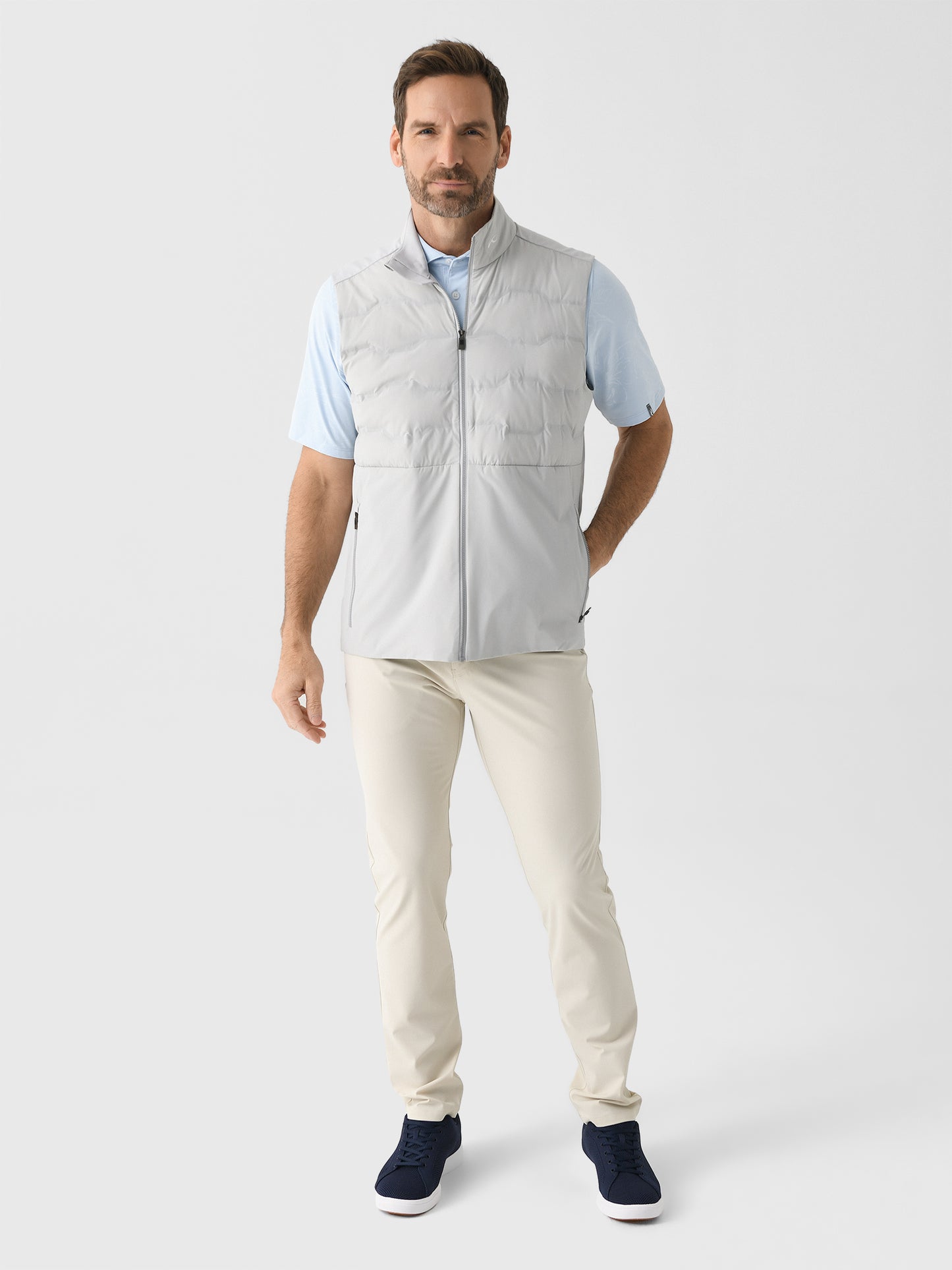 This windproof vest is made from comfortable stretch fabric and offers lightweight insulated warmth.