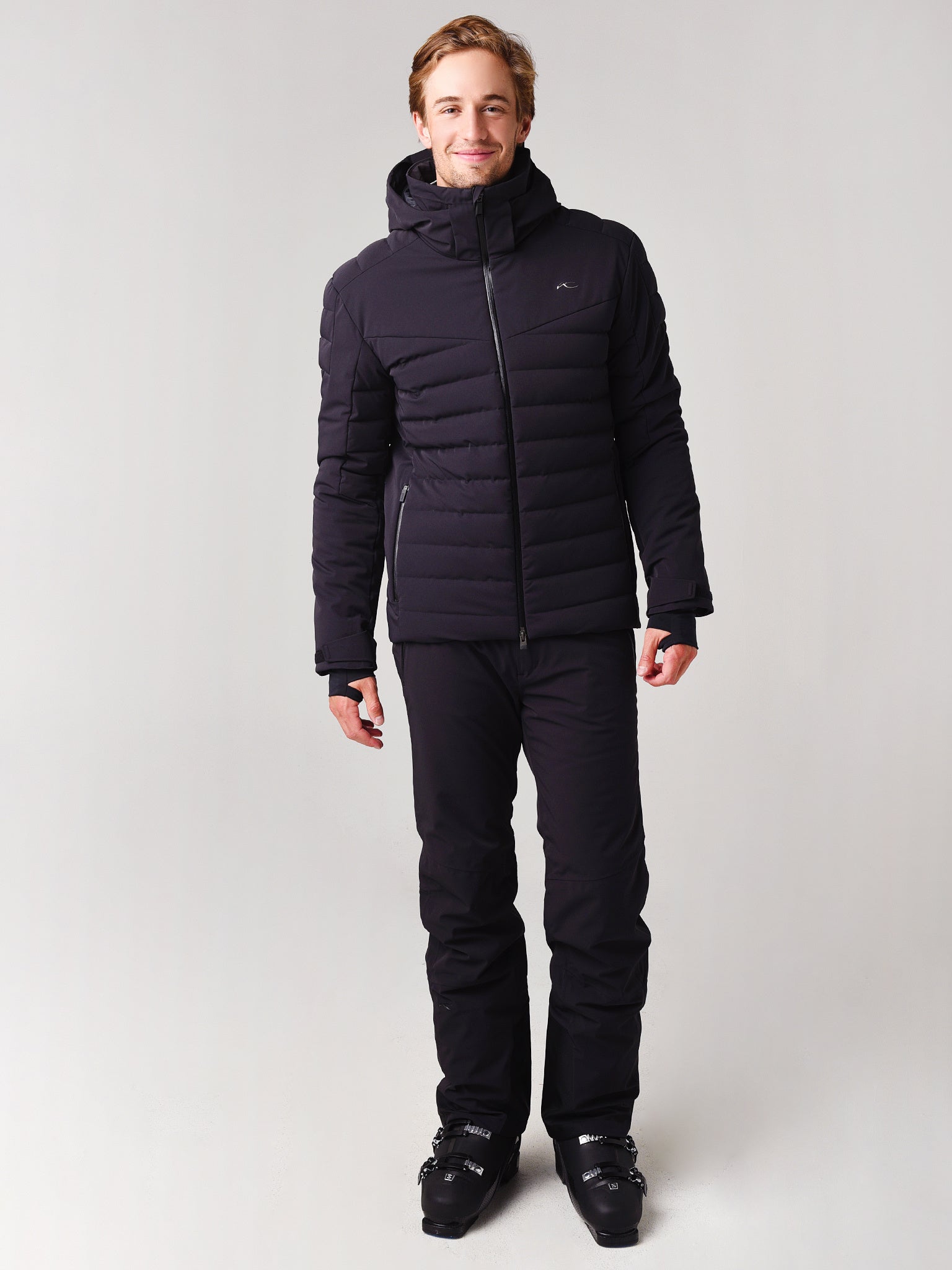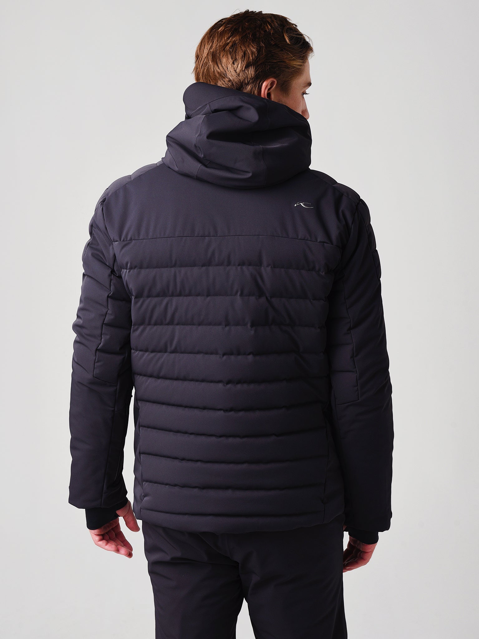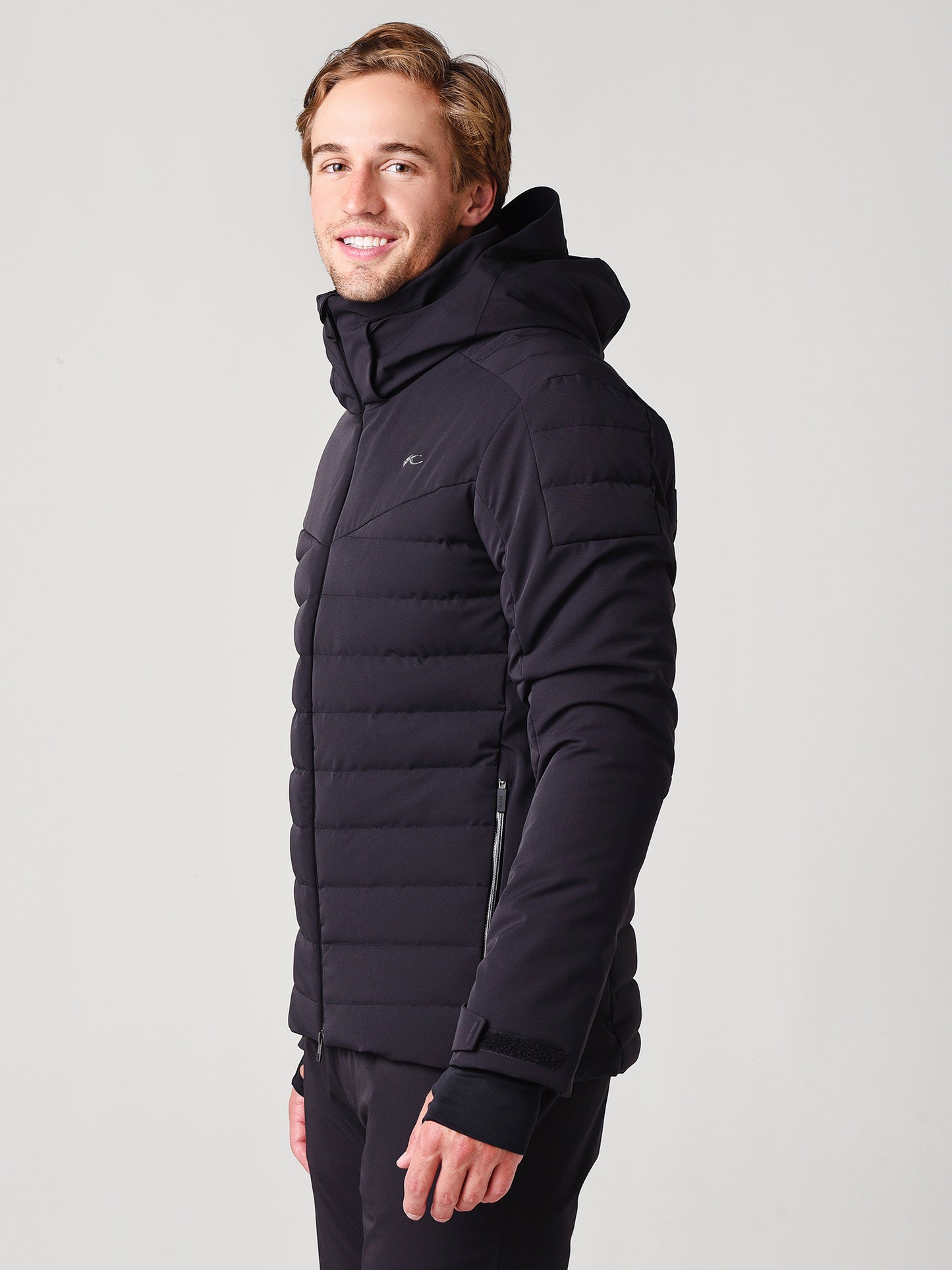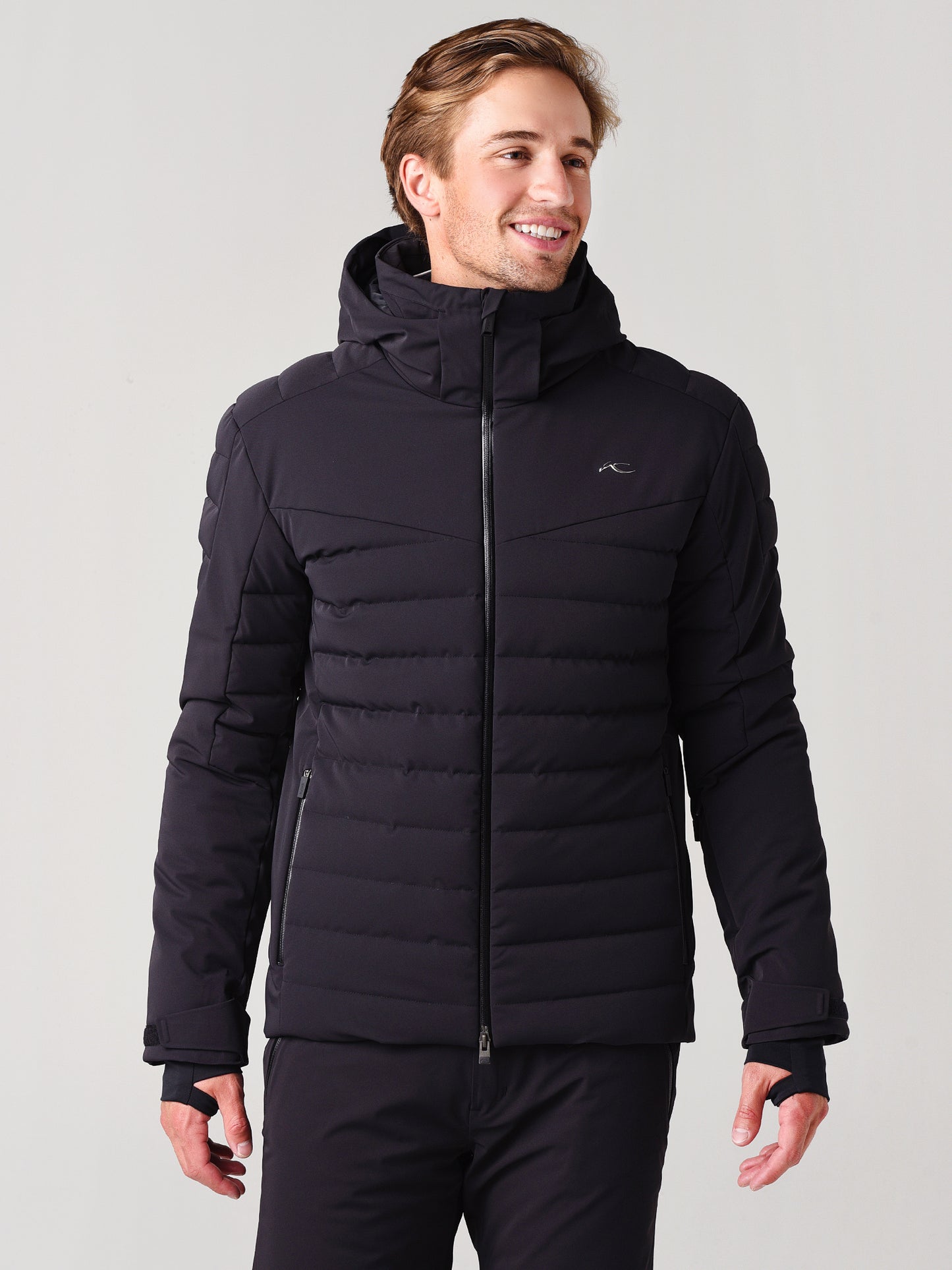 Sleek jacket with a fast look has 4-way stretch lining, plus adjustable cuffs and hem for sporty, warm comfort. Waterproof fabric and a removable hood keep everything dry.