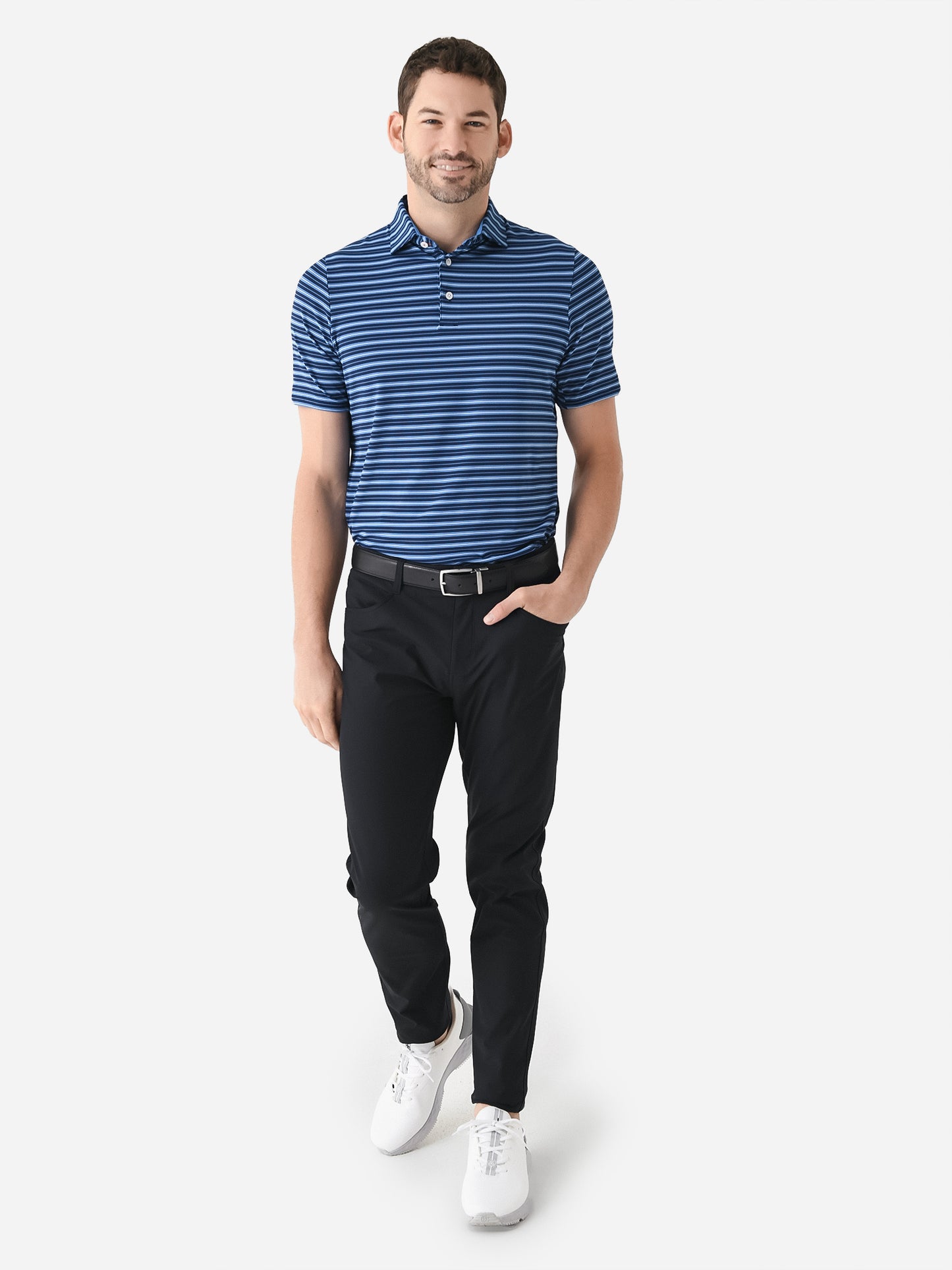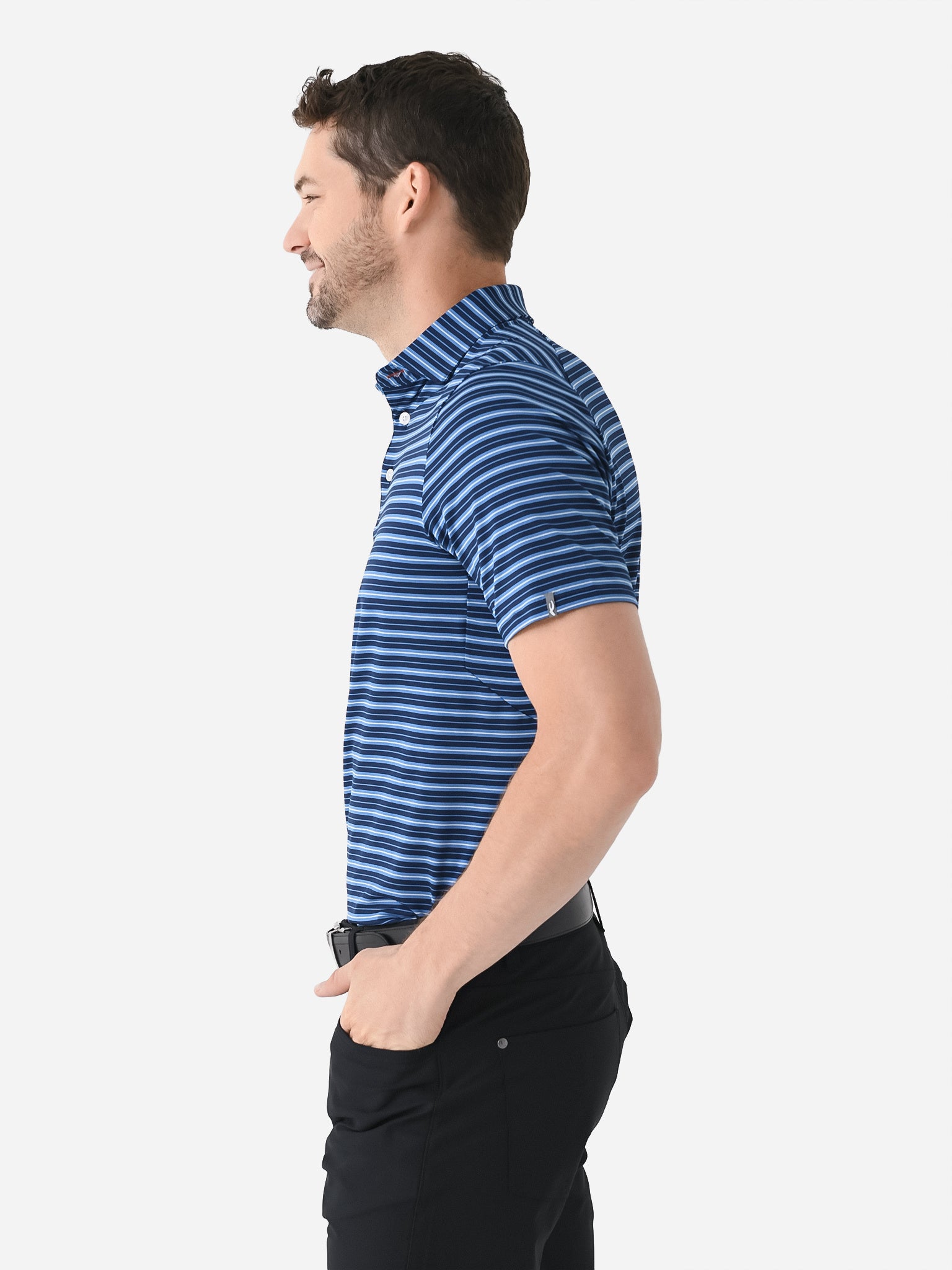 - Model is wearing size 50 polo.