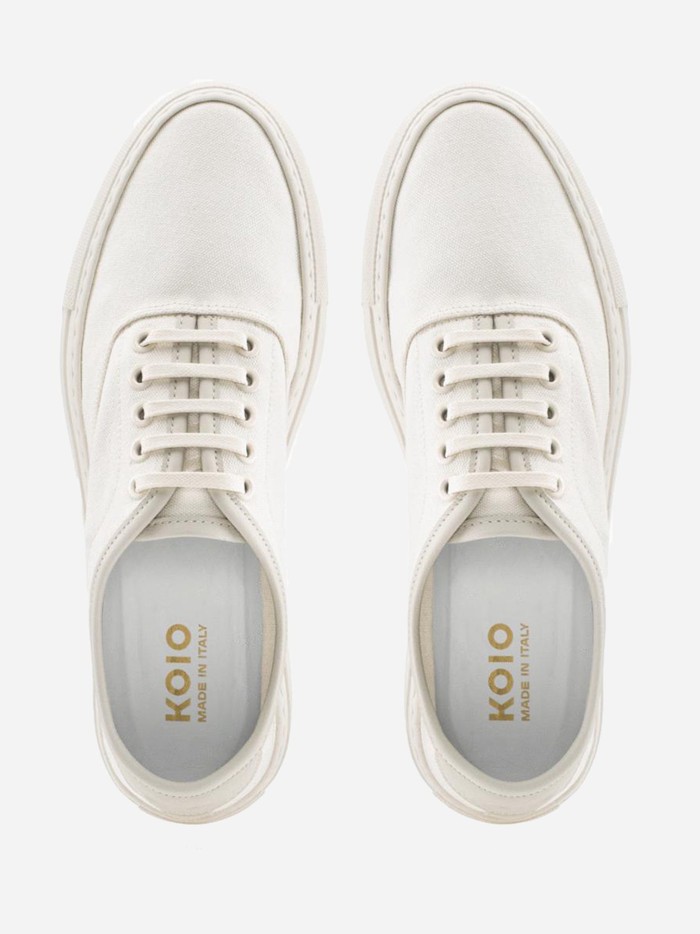 The Koio Men's Portofino Oat Canvas Sneaker look simple, sleek, and feel comfortable with OrthoLite® Hybrid™ technology.