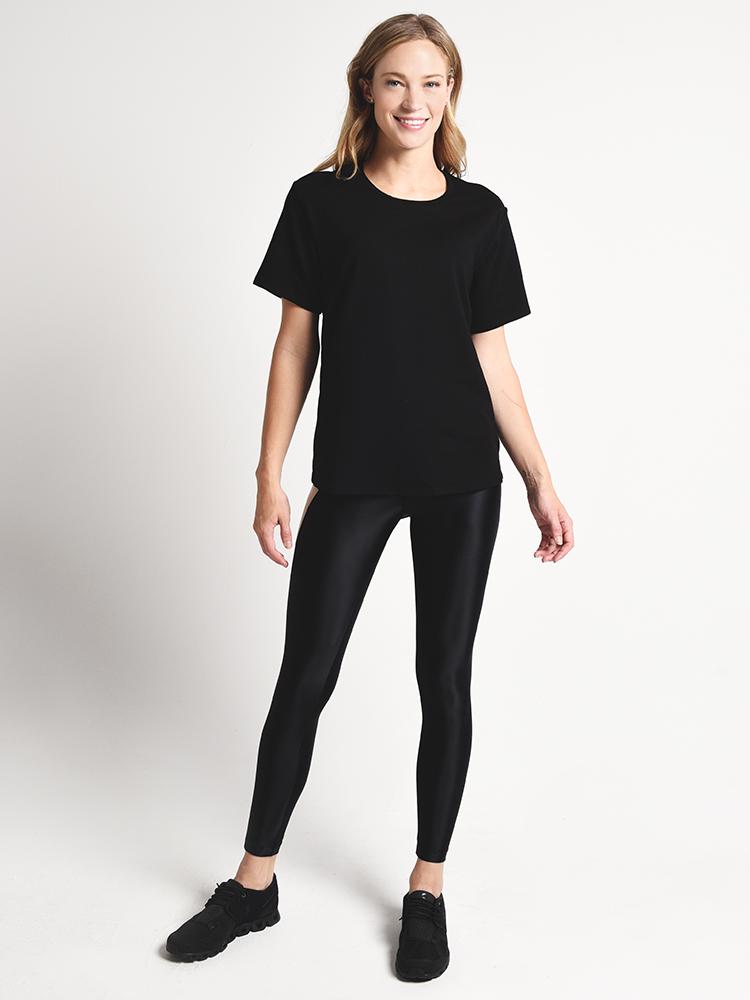 Styled with Koral Activewear t-shirt Style # A6336J70 and On shoes Style # WOMENS CLOUD NEW. Model is wearing size small legging and t-shirt.