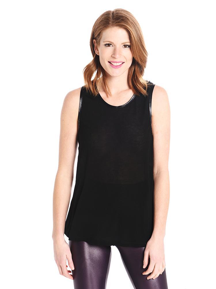 Lightweight jersey. Shell: 50% modal/50% cotton. Trim: 85% polyamide/15% lycra spandex. Length: 24.5in / 62cm, from shoulder Machine wash cold, tumble dry low Made in the USA of imported fabric Styled with Koral leggings Style # A2017HS04. Model is wearing size medium top and Leggings.