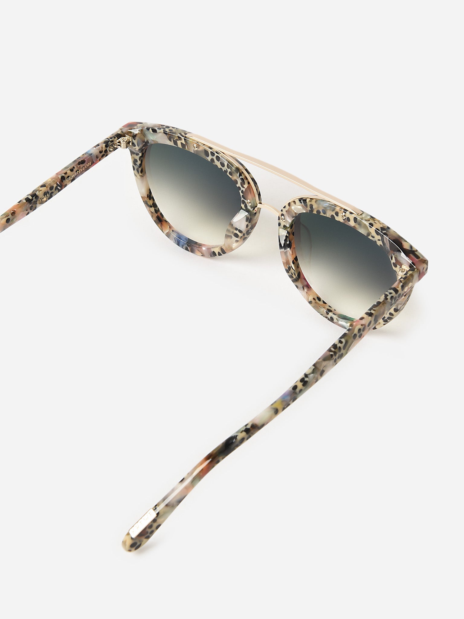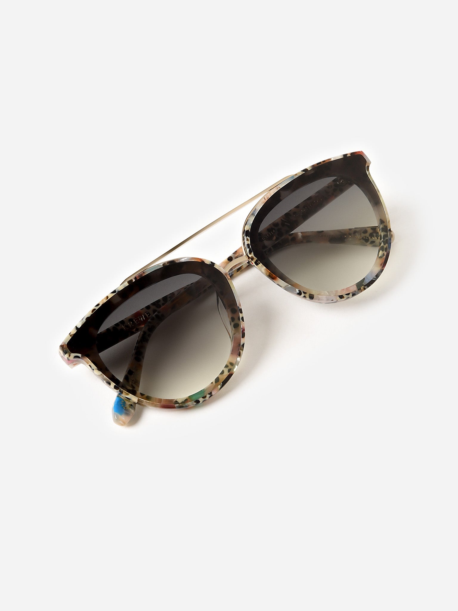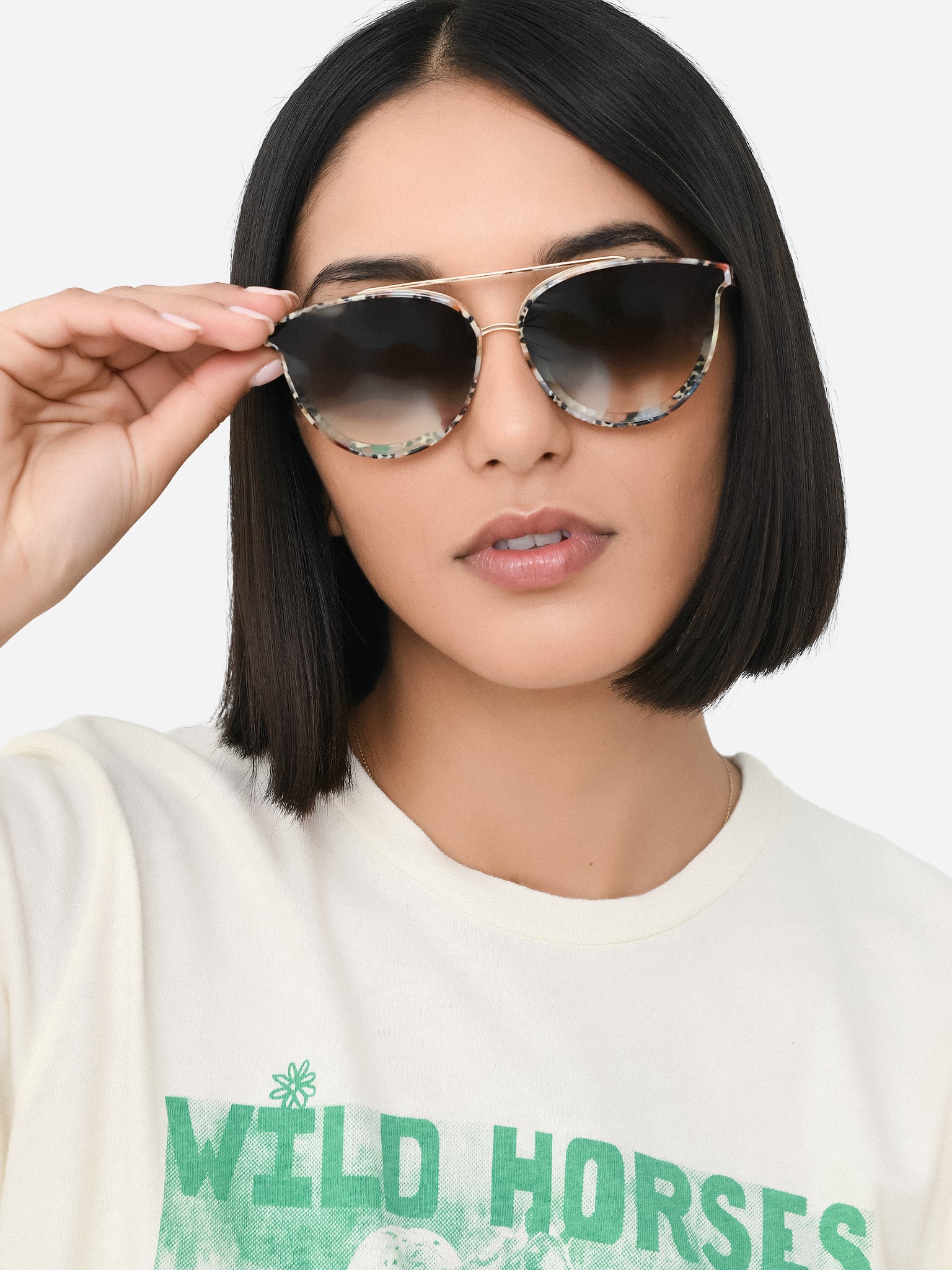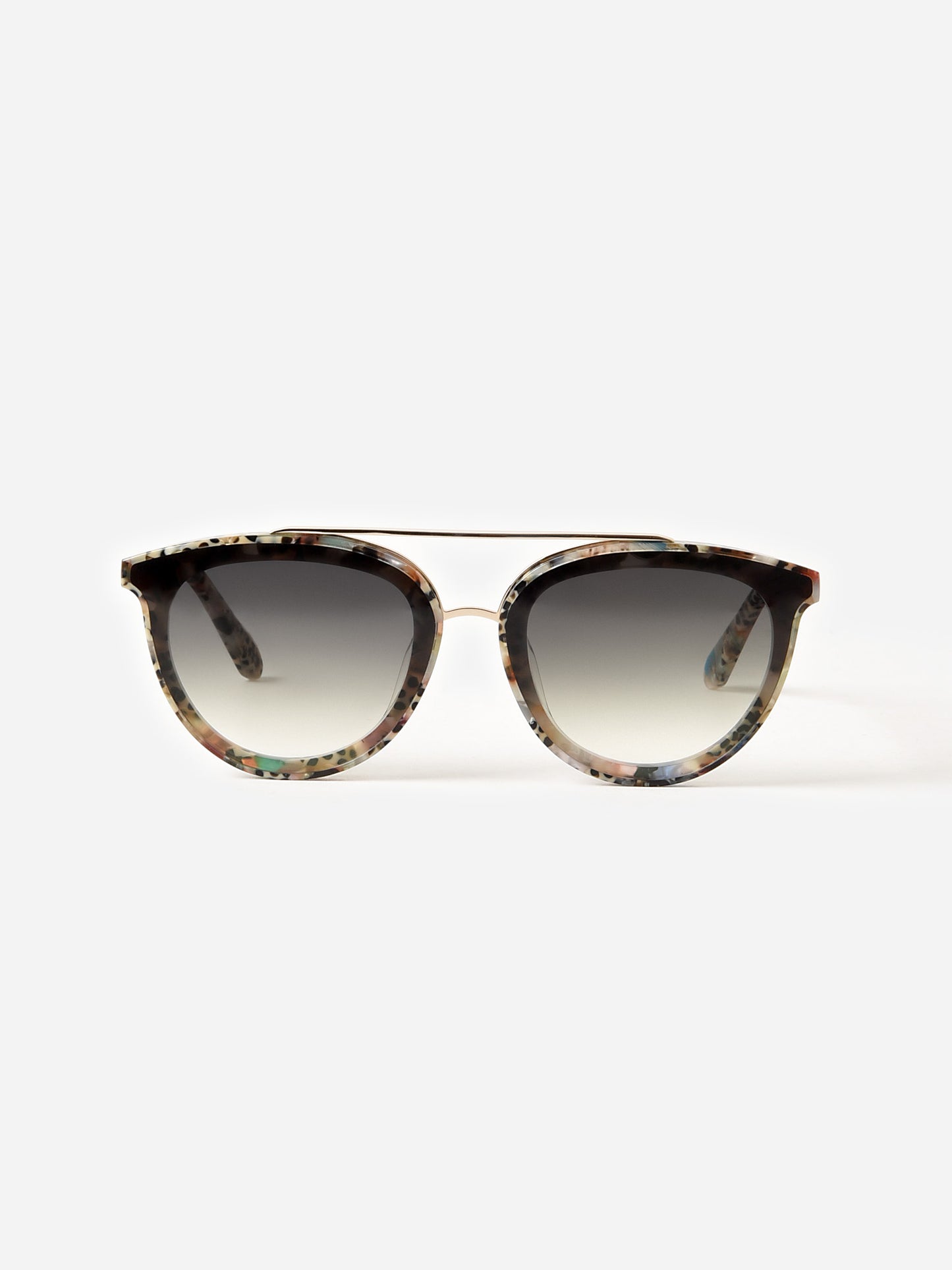With a reimagined classic aviator design, these sunglasses feature a sweeping browline and flat nylon lenses.