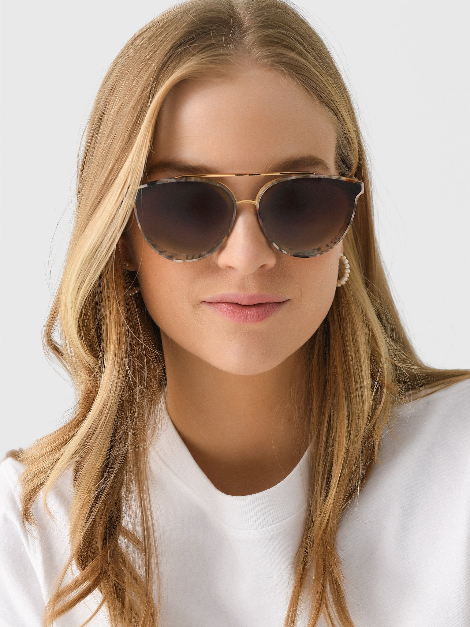 - Frame: Acetate, 18K Gold-Plated Stainless Steel Hardware