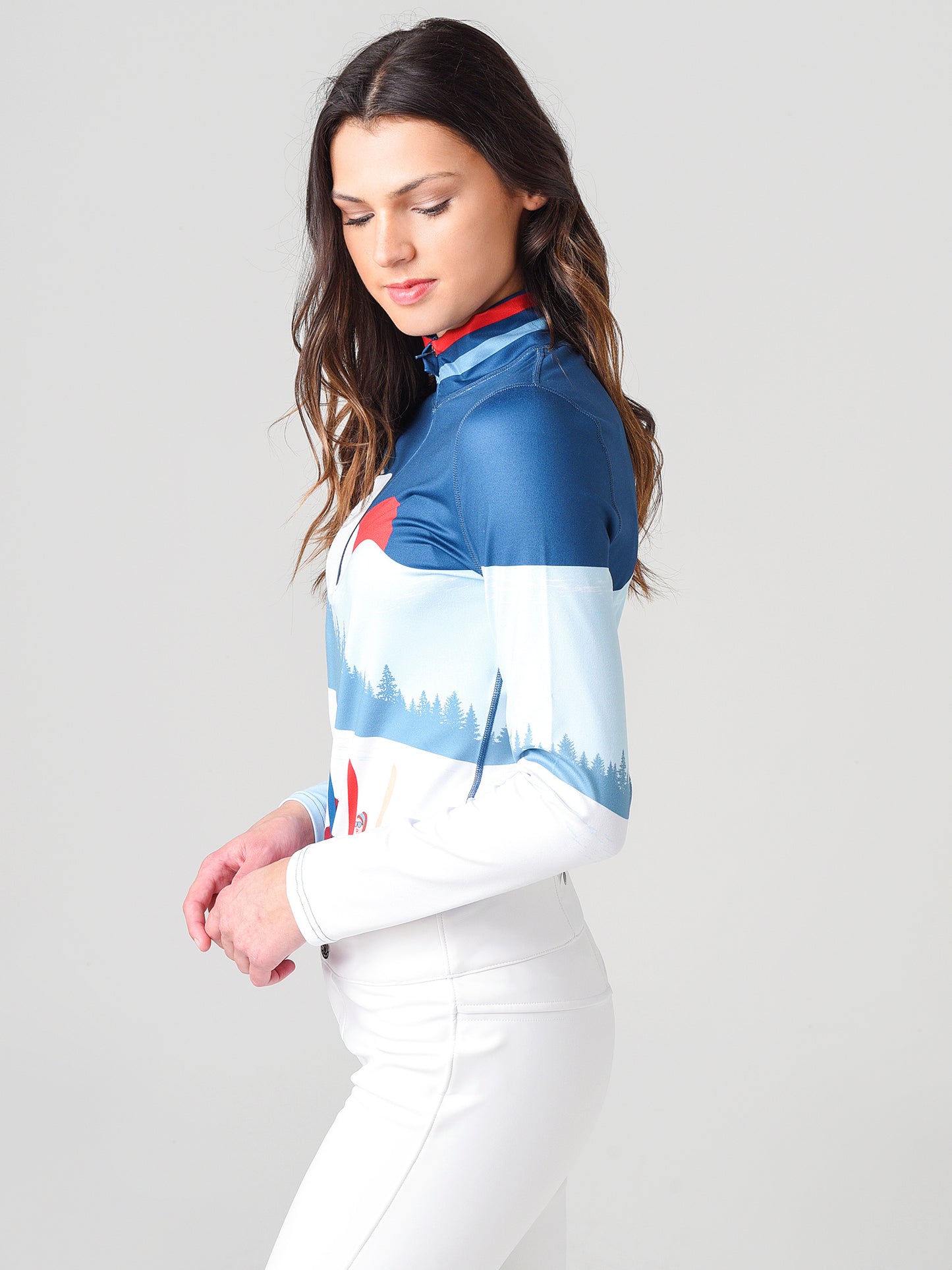 The perfect base layer to wear on girls day on the slopes arrives in the Krimson Klover Women's Amiche Merino Base Layer Quarter-Zip Top.