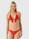 A classic triangle bikini top with adjustable ties and fun fringe detailing.