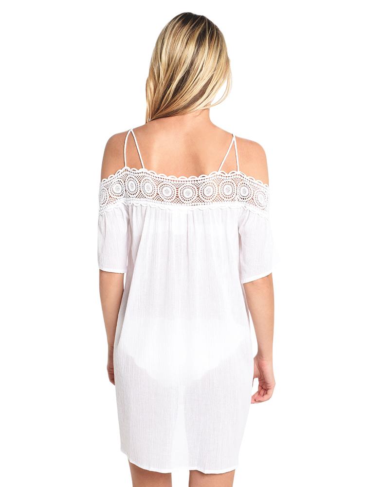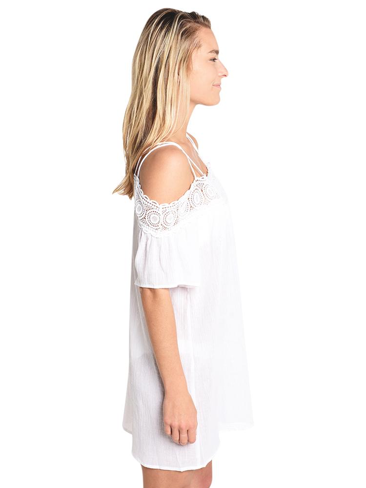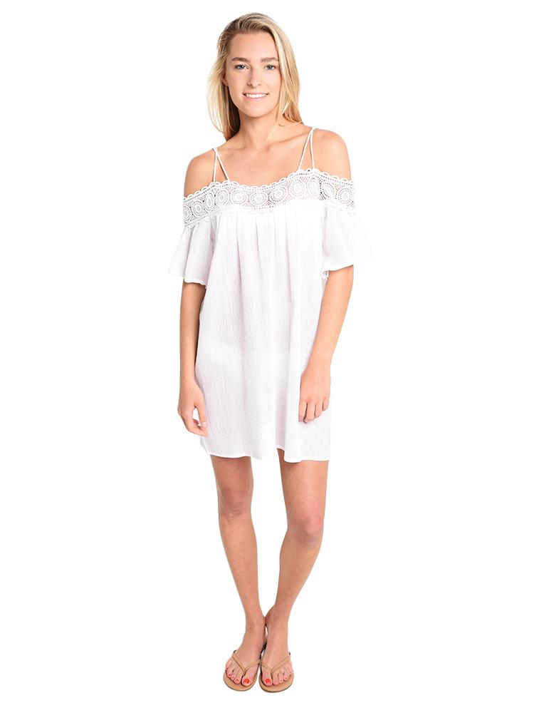 Island hop in the La Blanca Island Goddess Off The Shoulder Dress.