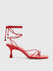 A charming, barely-there sandal with a kitten heel, ankle straps, and a printed footbed complemented by matching charm details.