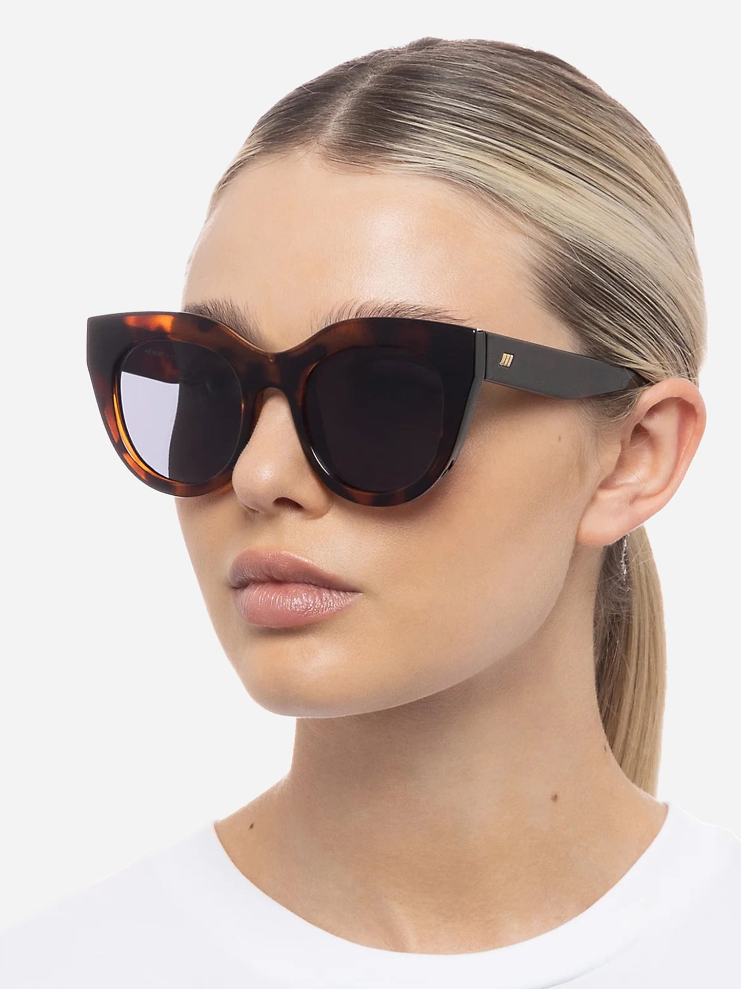 Iconic cat eye sunglasses with a dramatic, oversized silhouette and thick tortoise frame.
