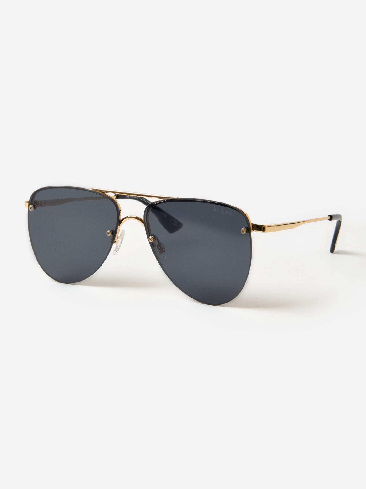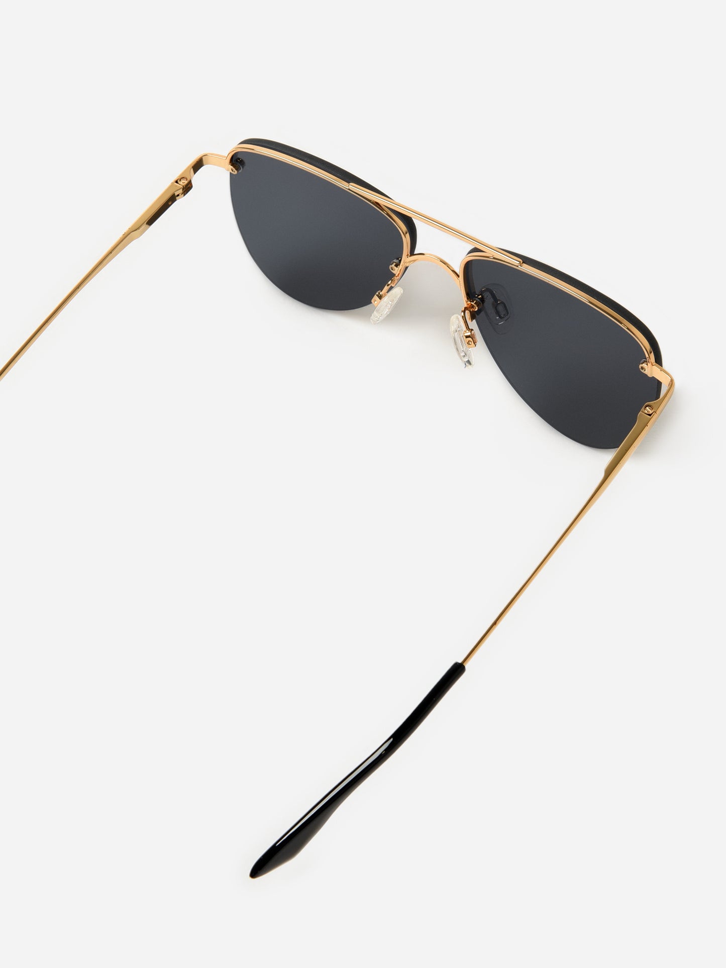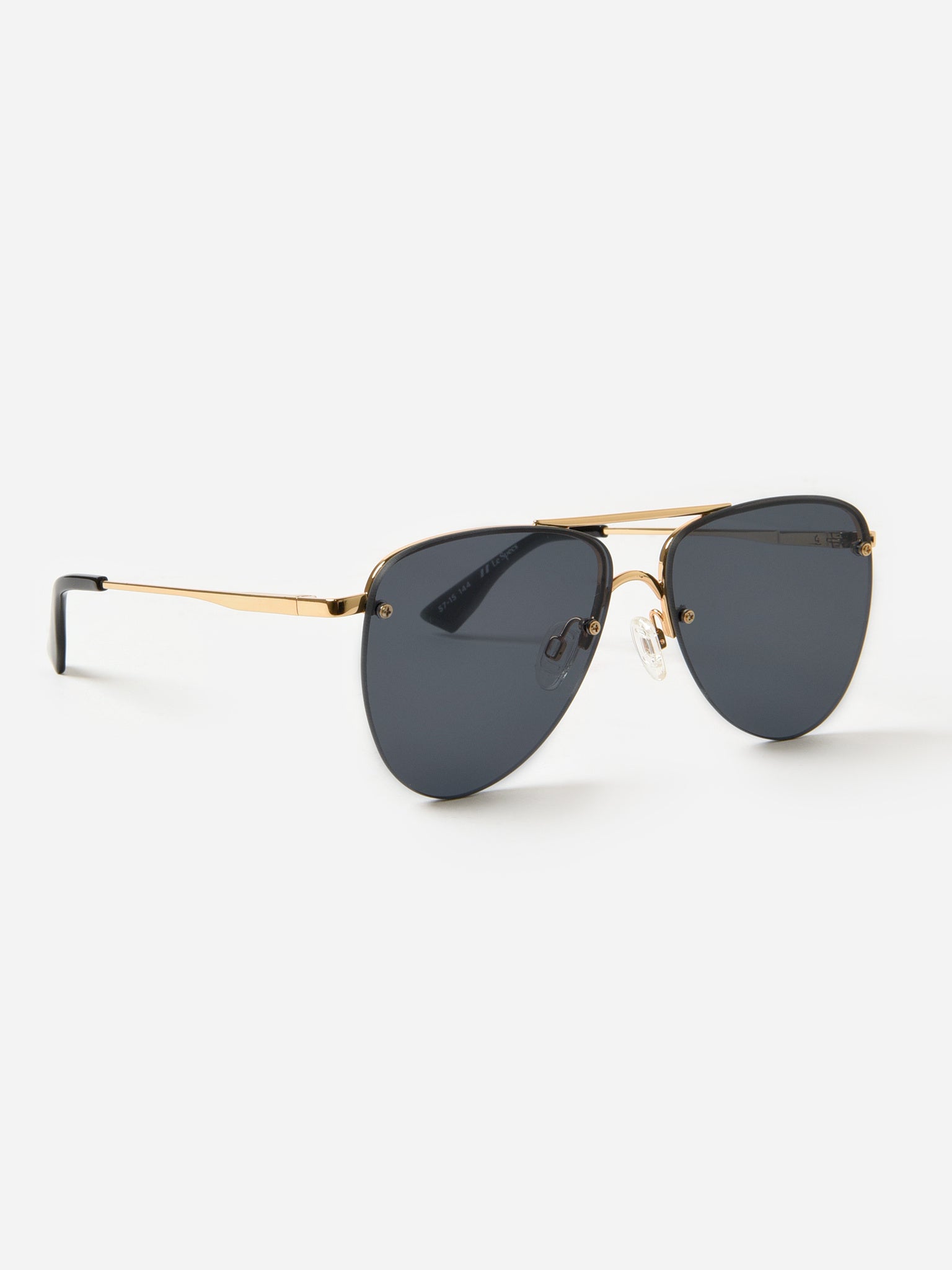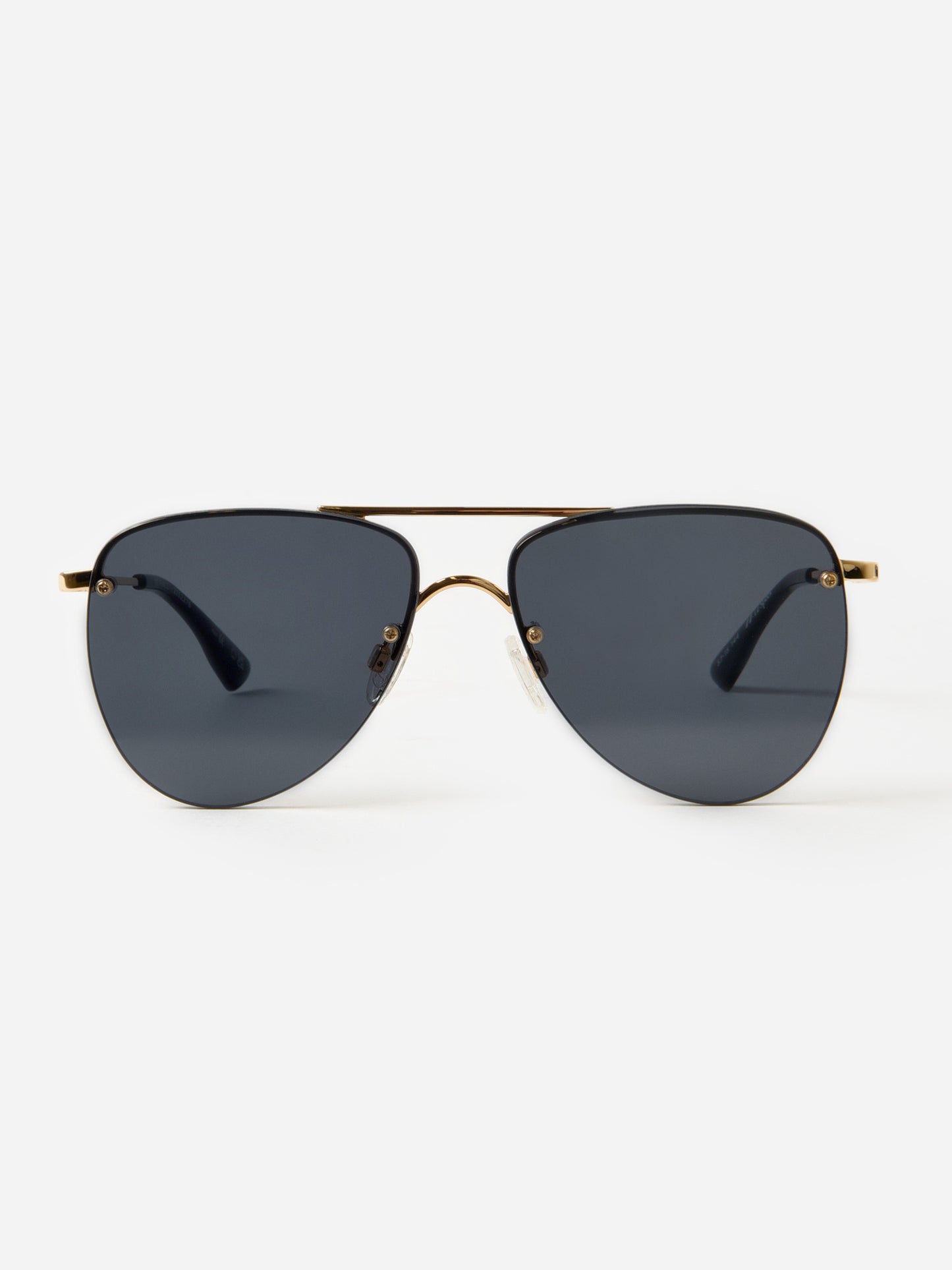 A universally flattering pair of aviator sunglasses with a flat lens design and adjustable nose pads.