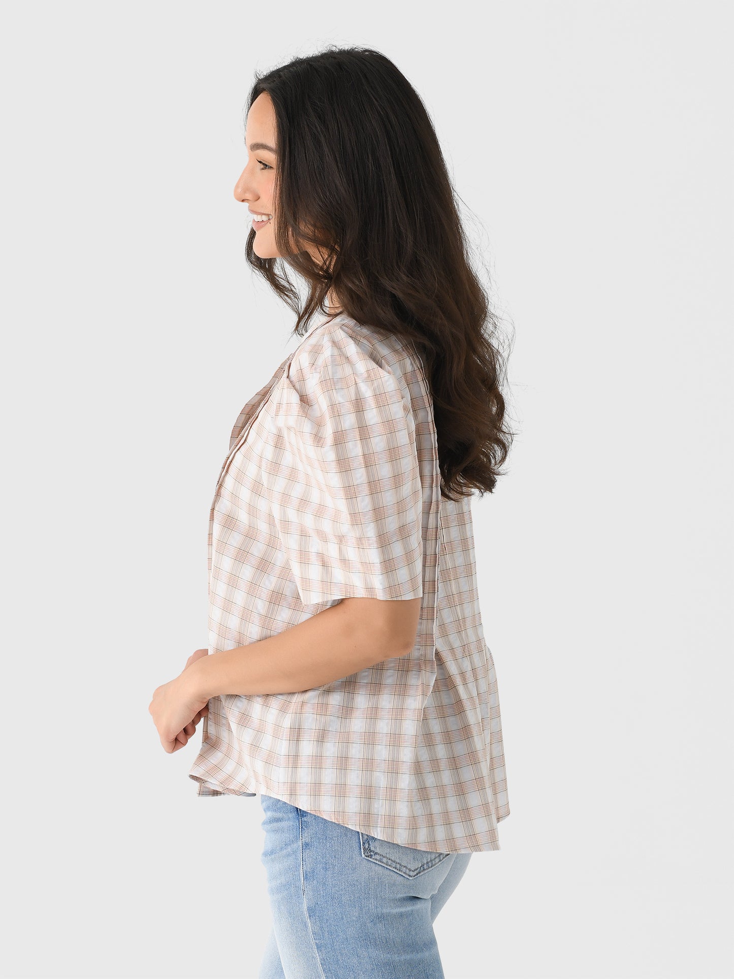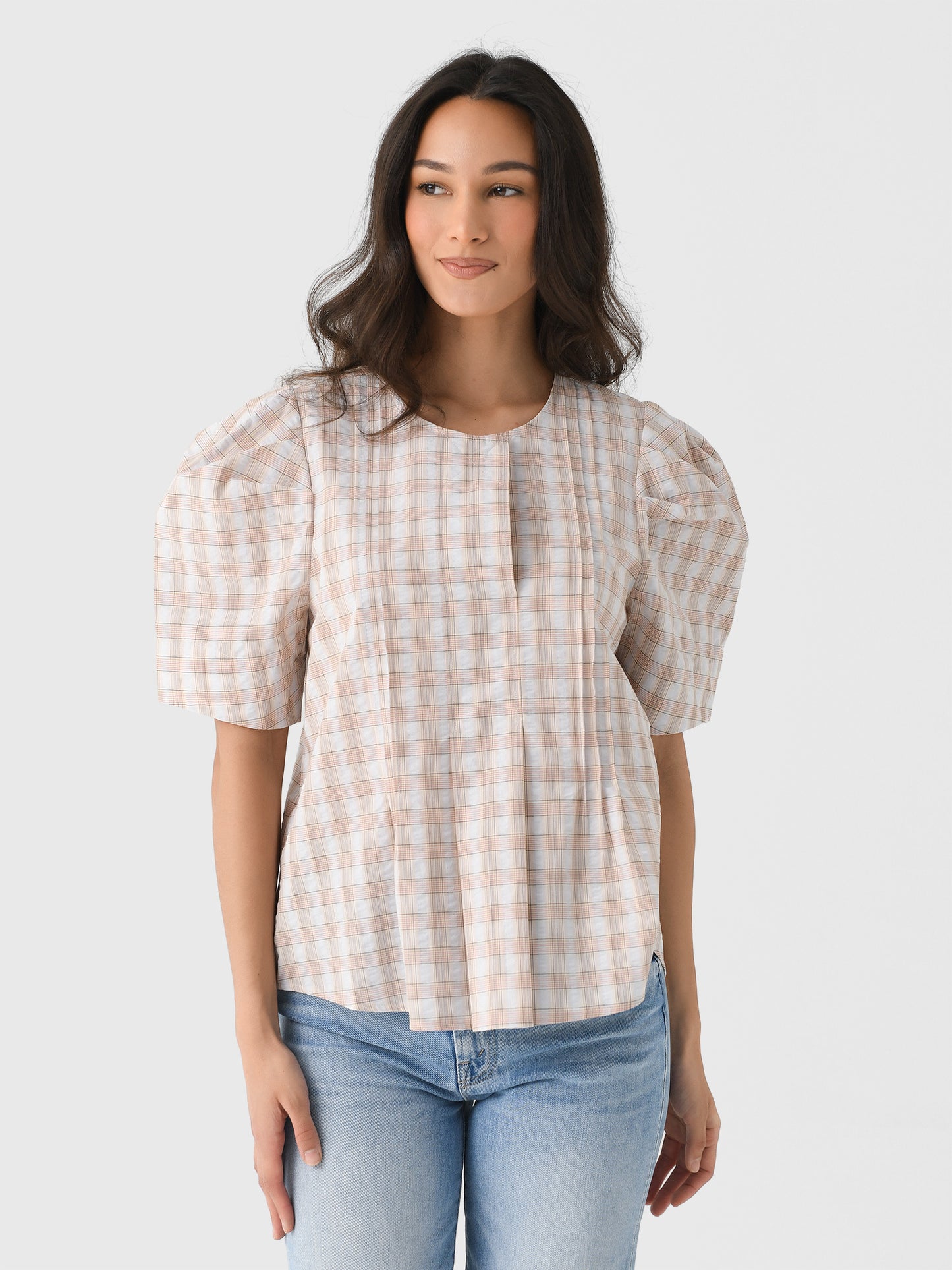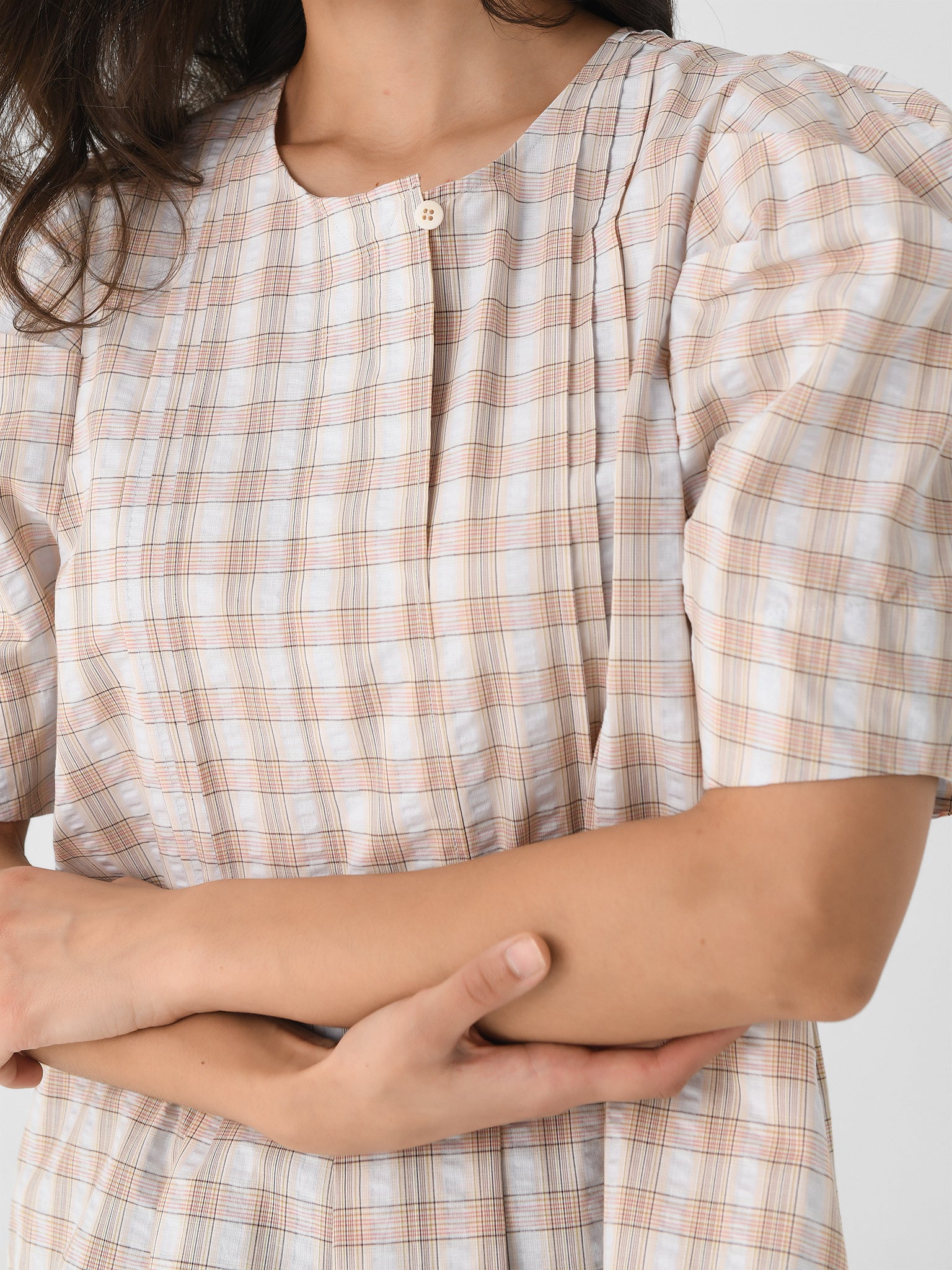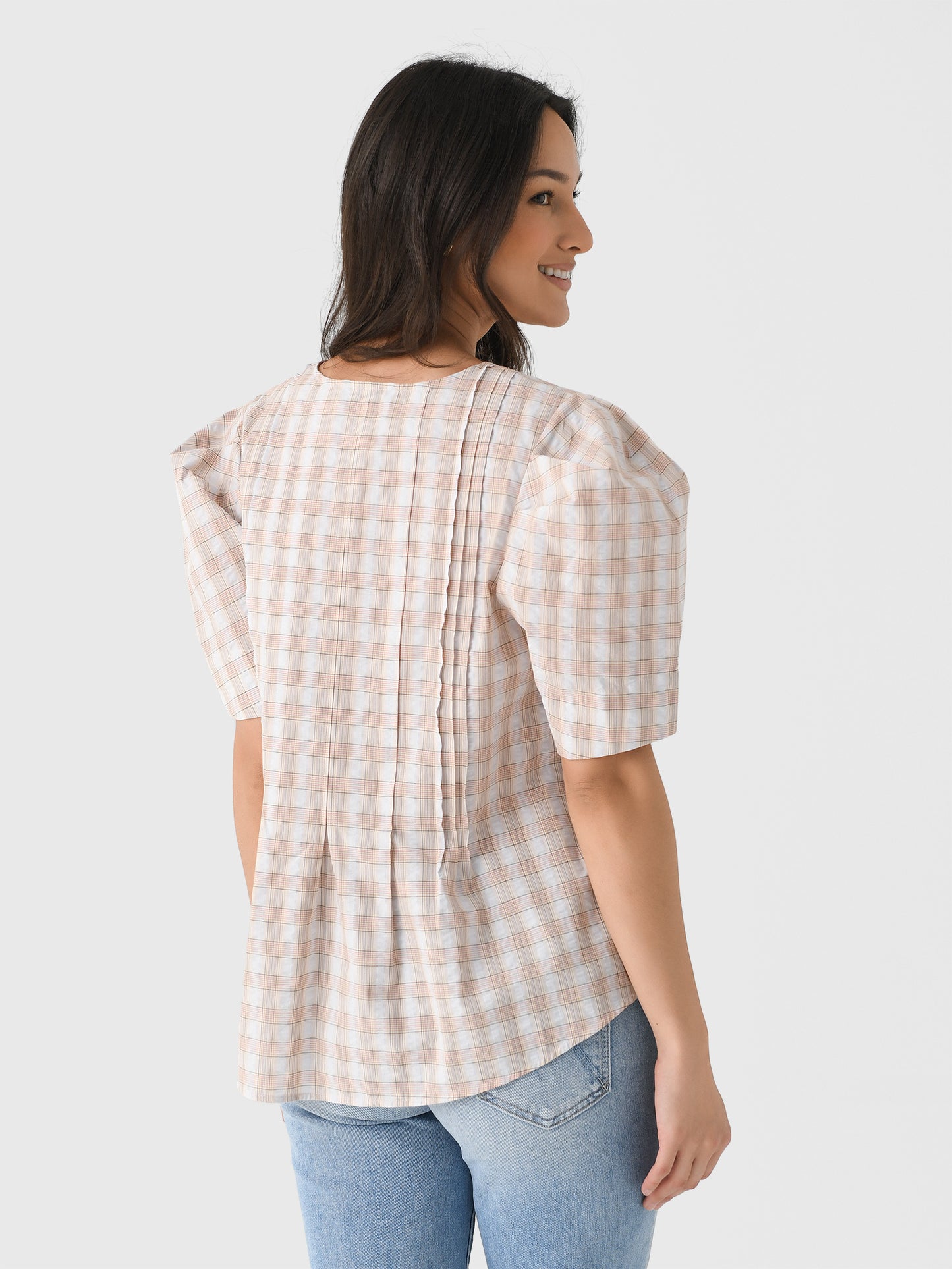 This easy-fitting blouse is made from lightweight seersucker fabric and features structured sleeves, pintuck details, and a hidden button closure.