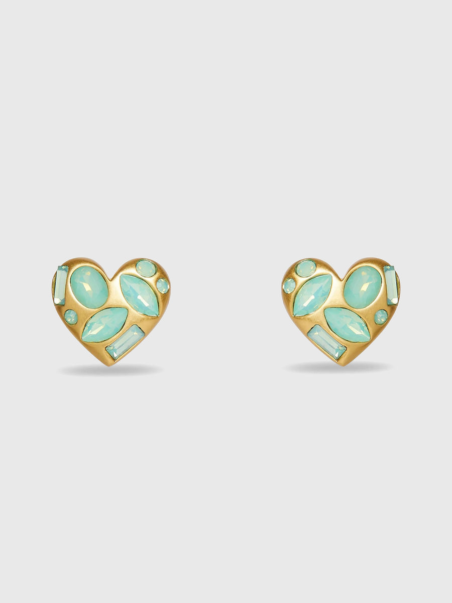 Crystal Molten Heart Button Earrings