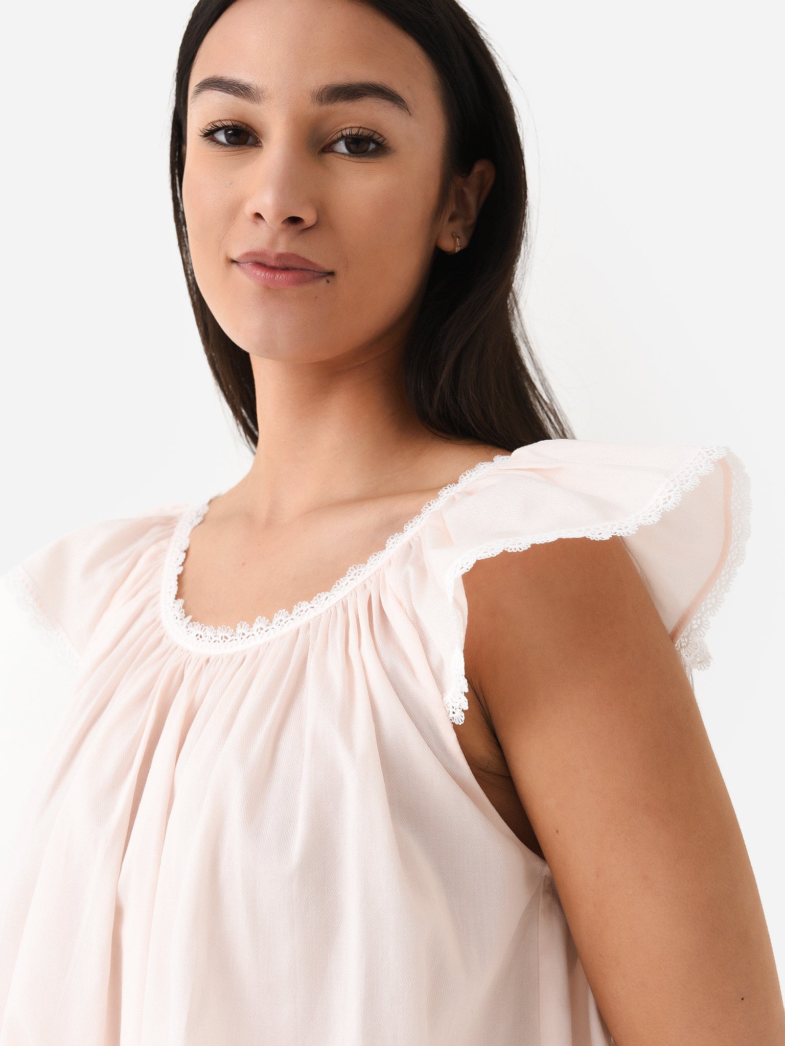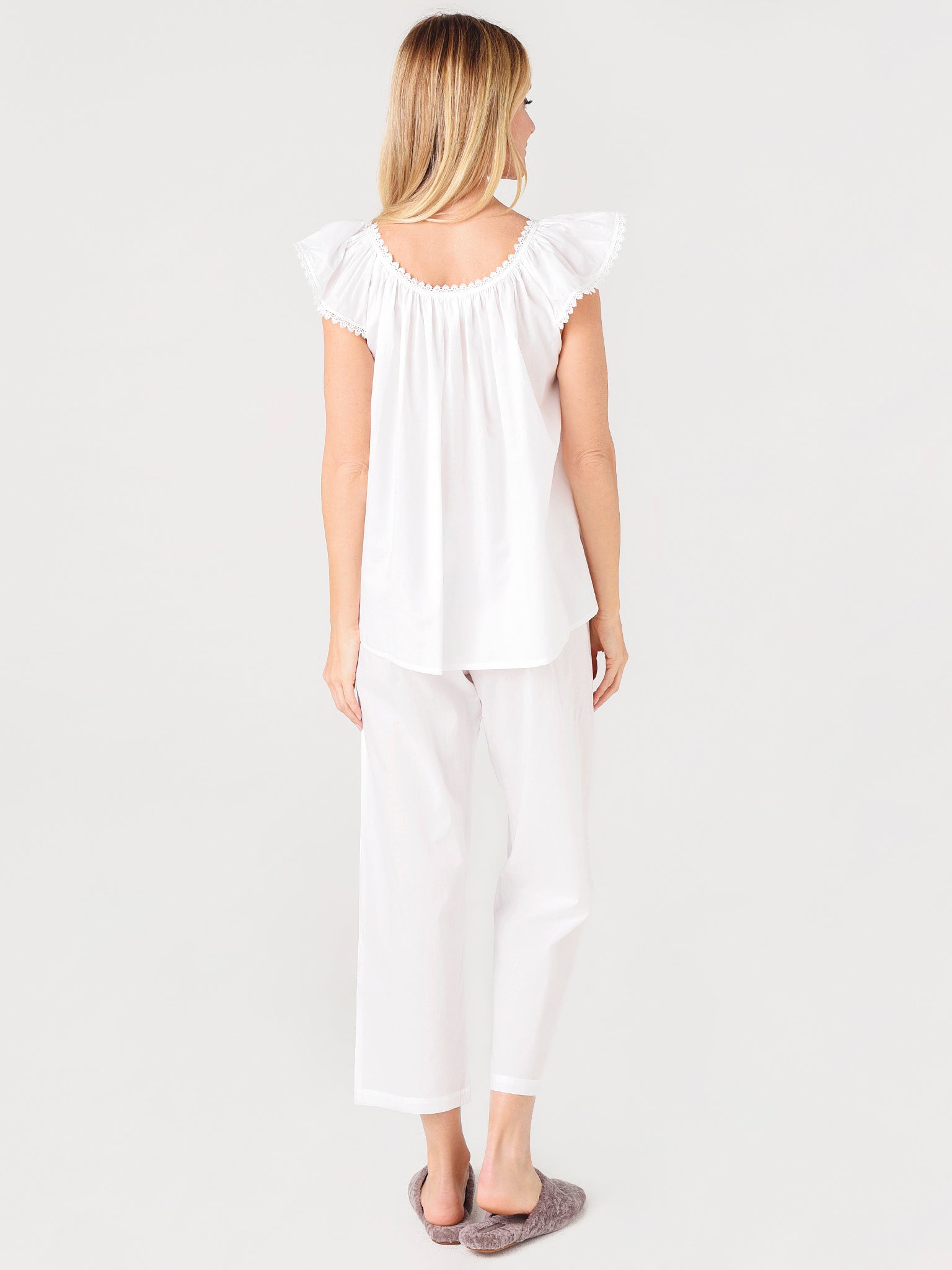 Super-soft brushed cotton pajama set with a lace-trimmed top and cropped pant.