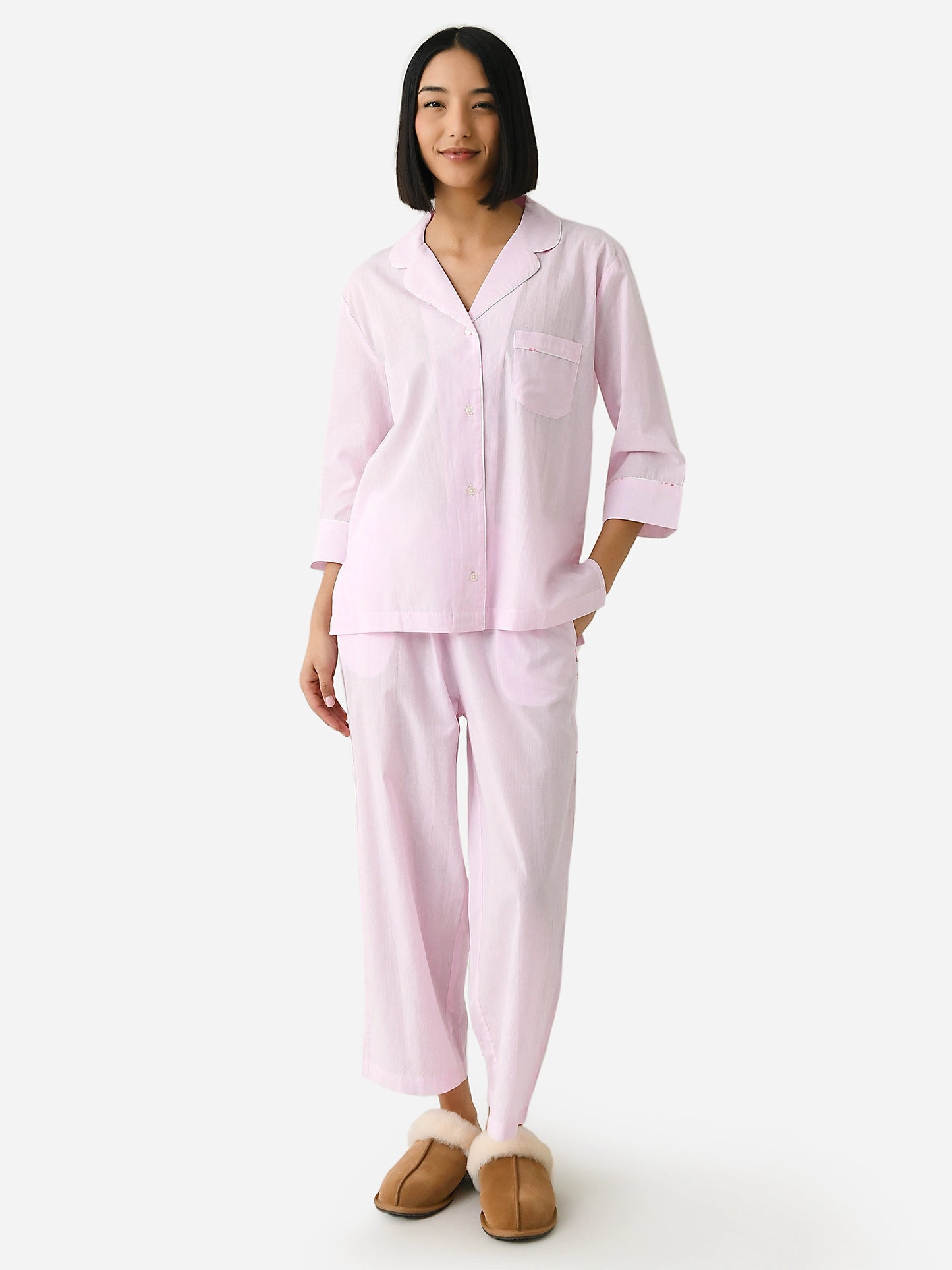 A super-soft pajama set made from dreamy lawn cotton featuring a subtle pinstripe design.