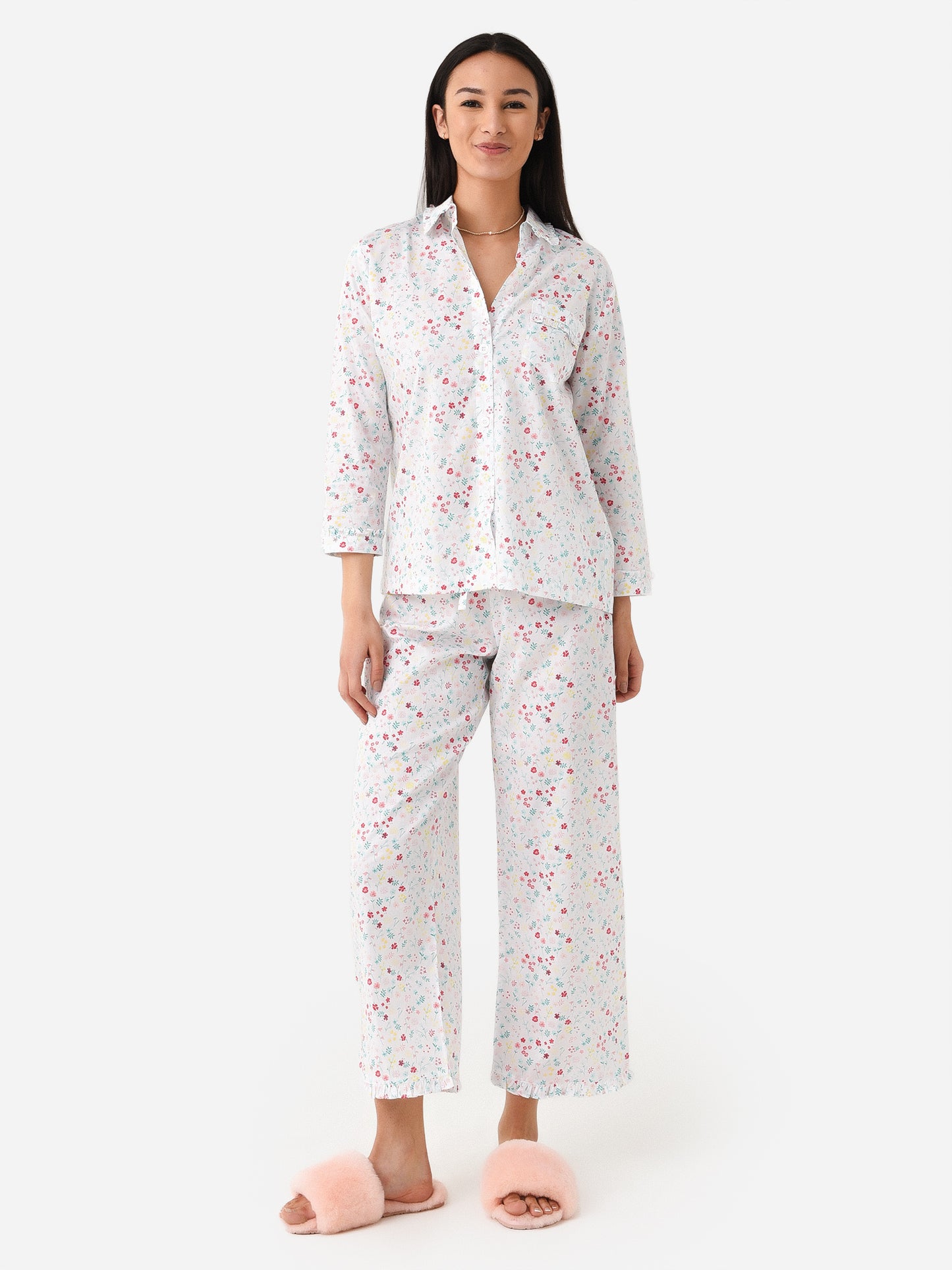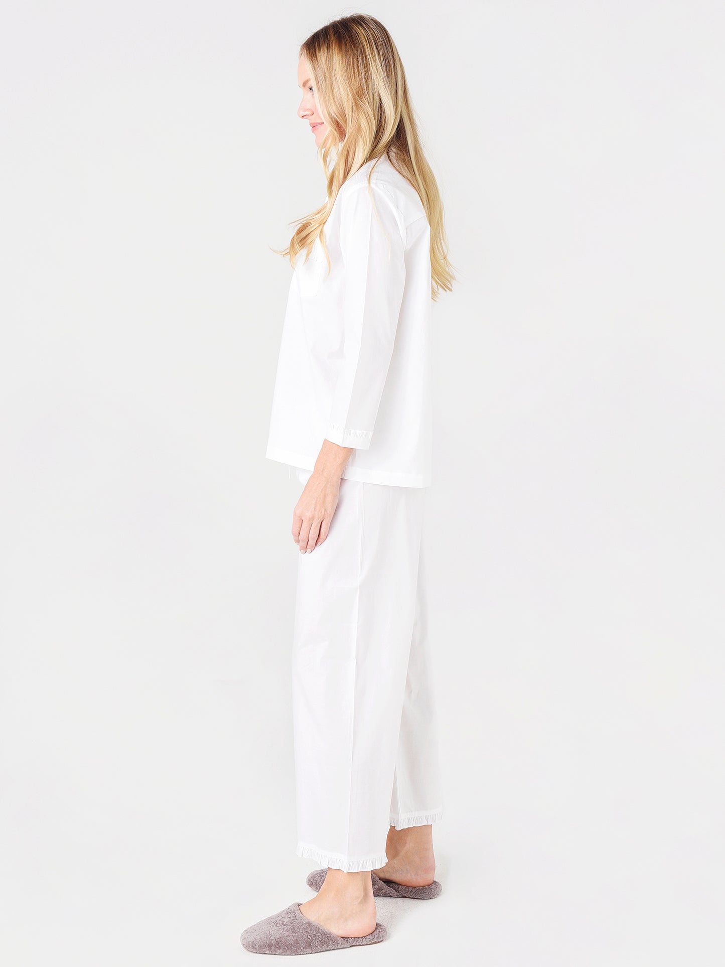 Ruffle-trimmed lightweight cotton pajama set.