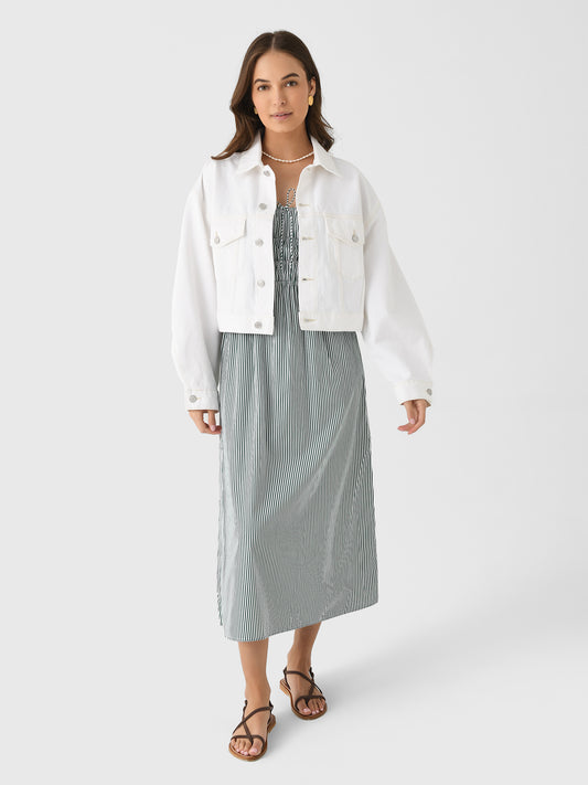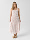 Spring is calling! This long, flowy dress is made from floral-printed eyelet fabric. It features back cutouts and ruched straps for added feminine charm.