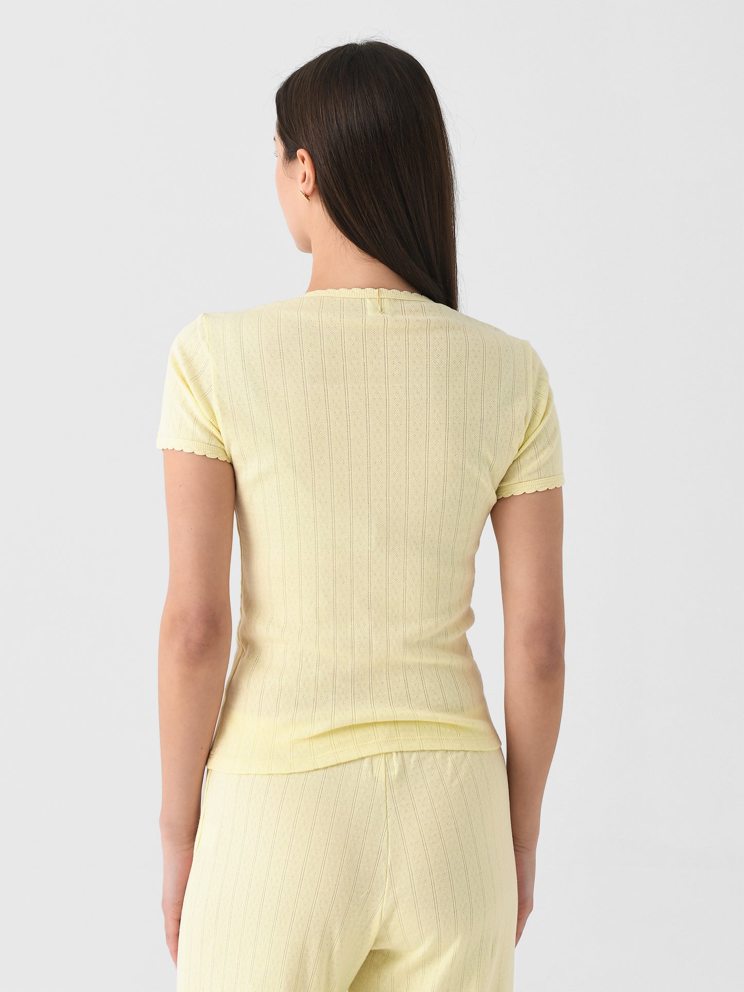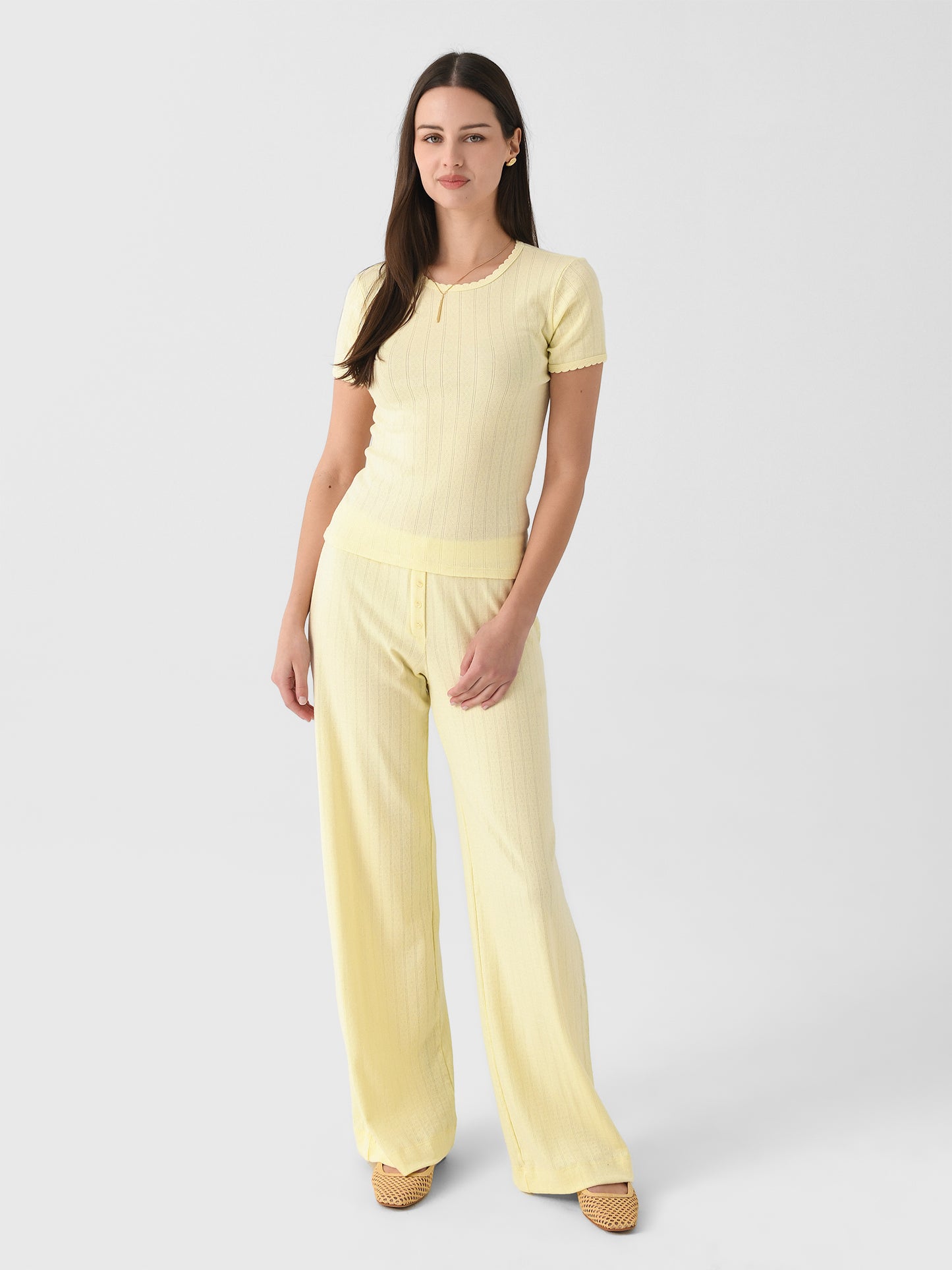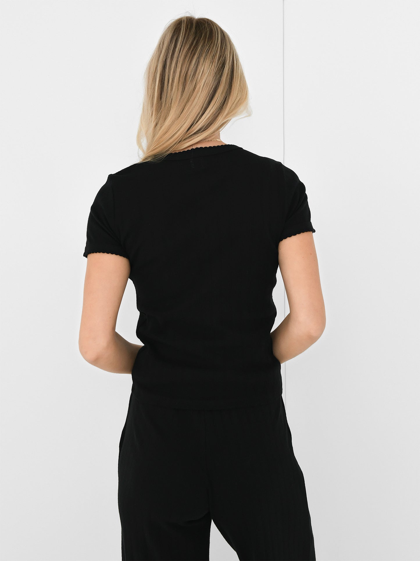A slim-fitting crewneck tee constructed from soft cotton pointelle fabric.