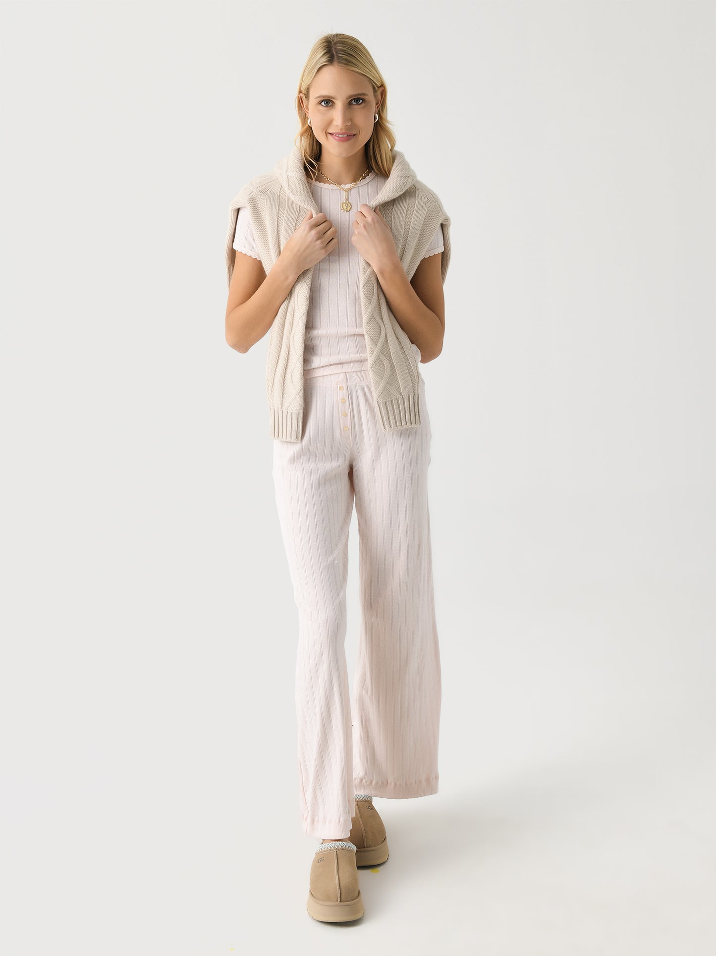 Leset Women's Pointelle Slim Fit Tee L / PINK