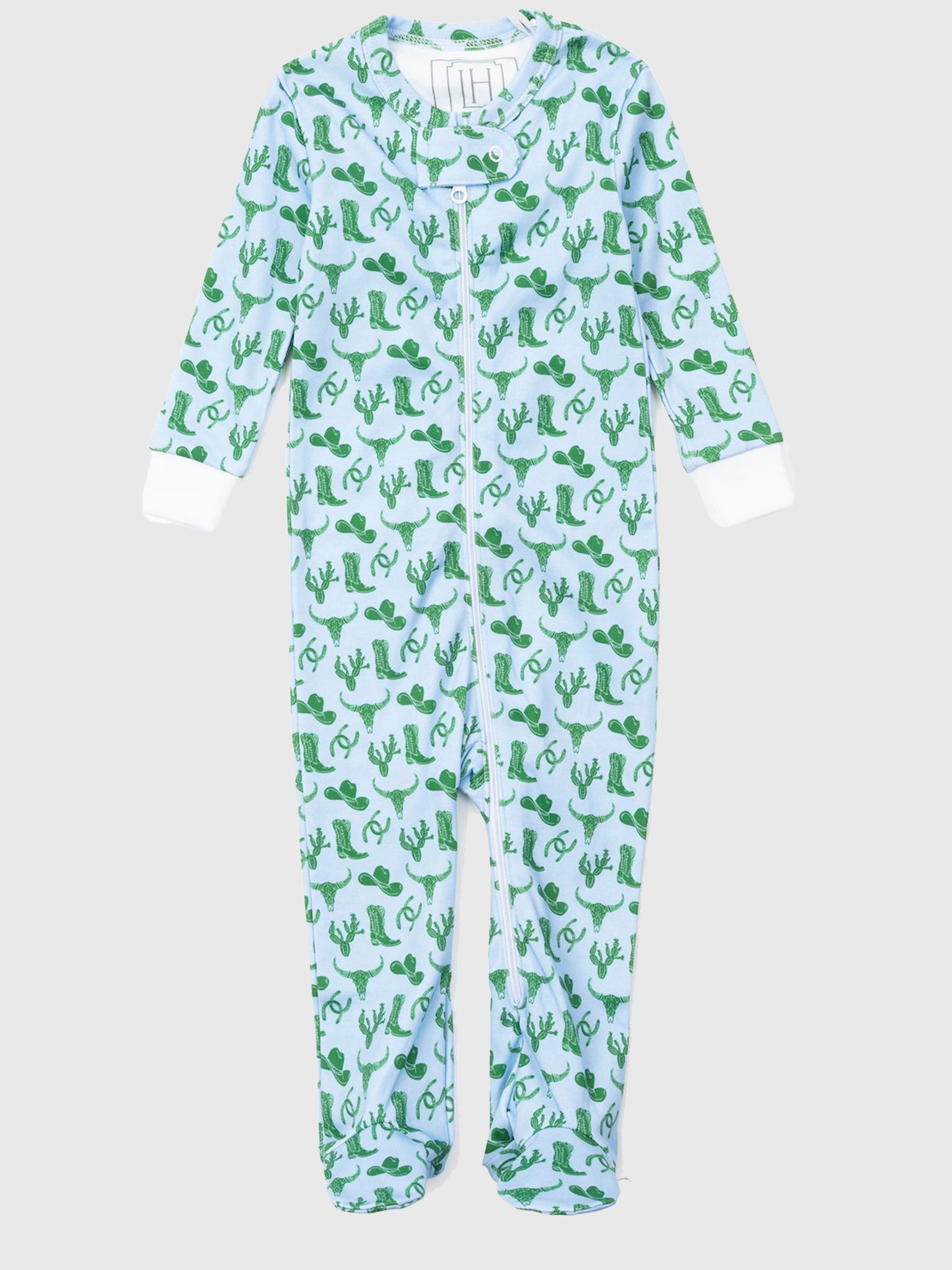 An ultra-soft Peruvian cotton zipper pajama with a custom print.