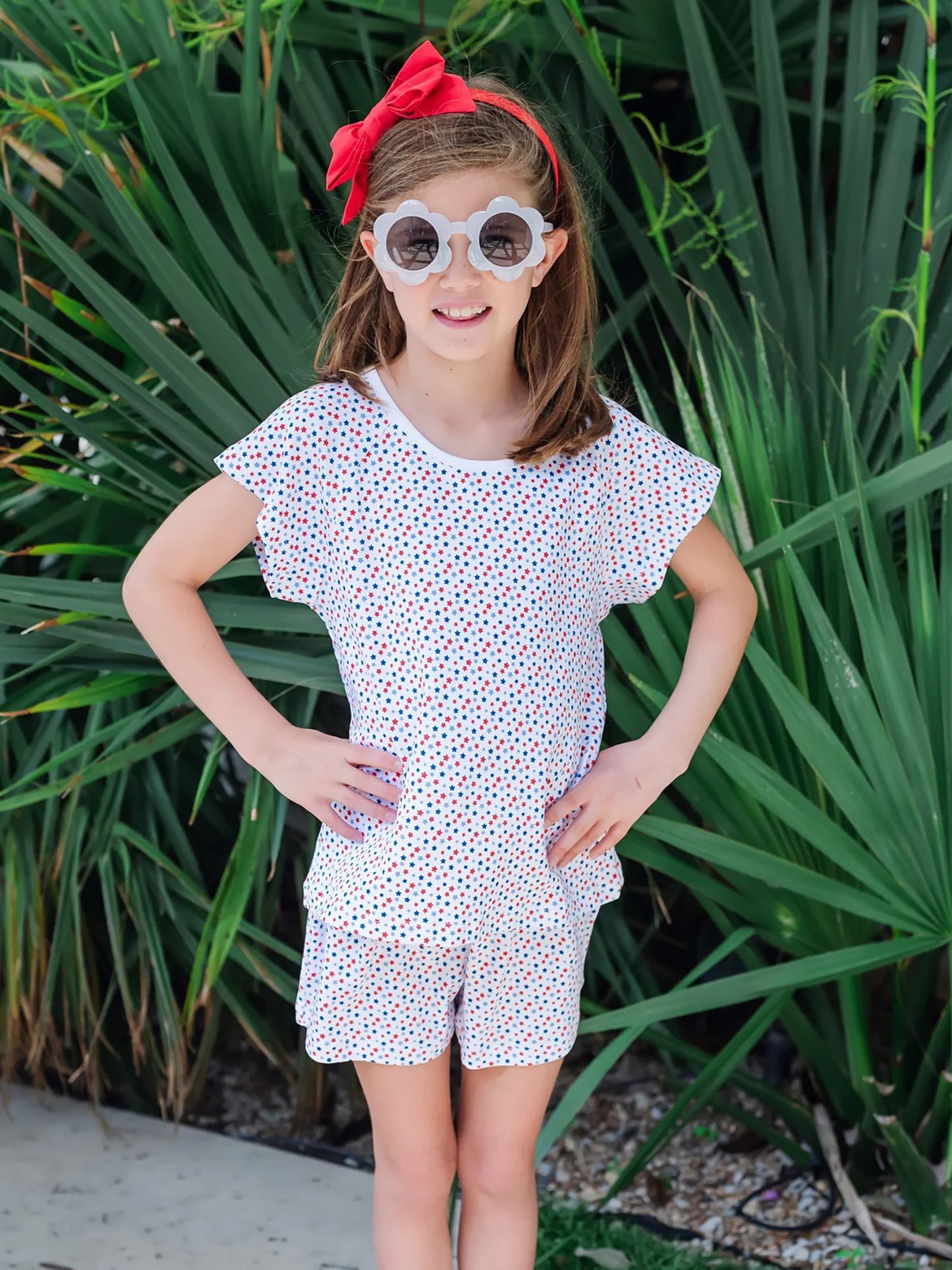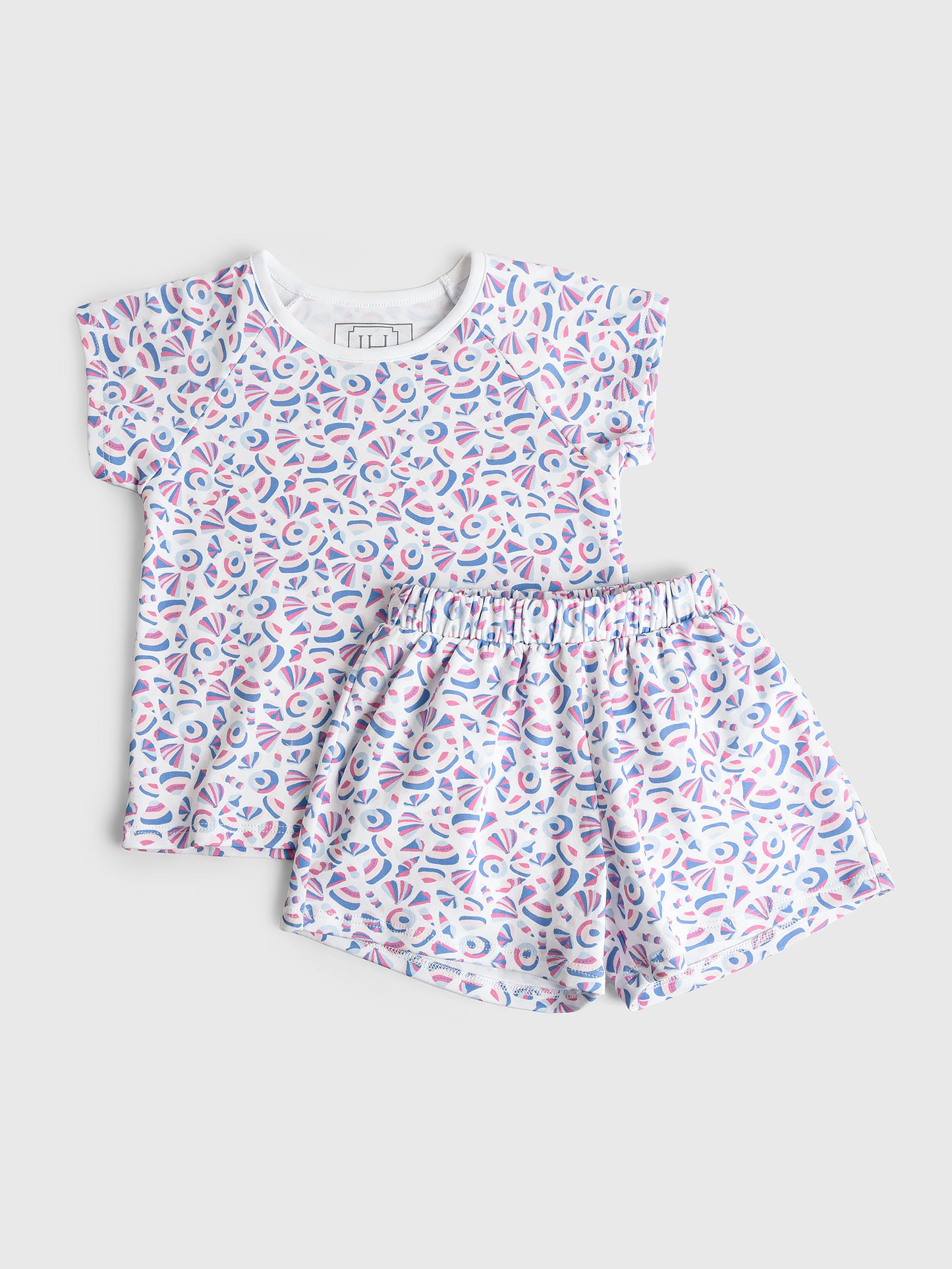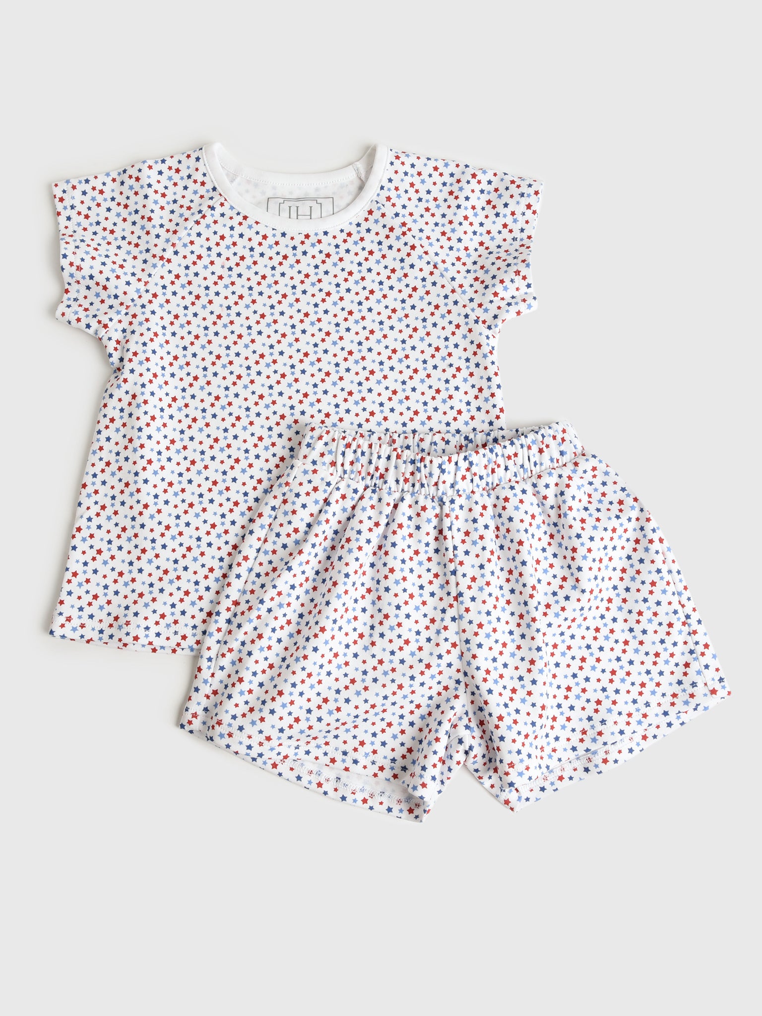 A casual tee and short set made from soft Pima cotton featuring a fun, custom print.