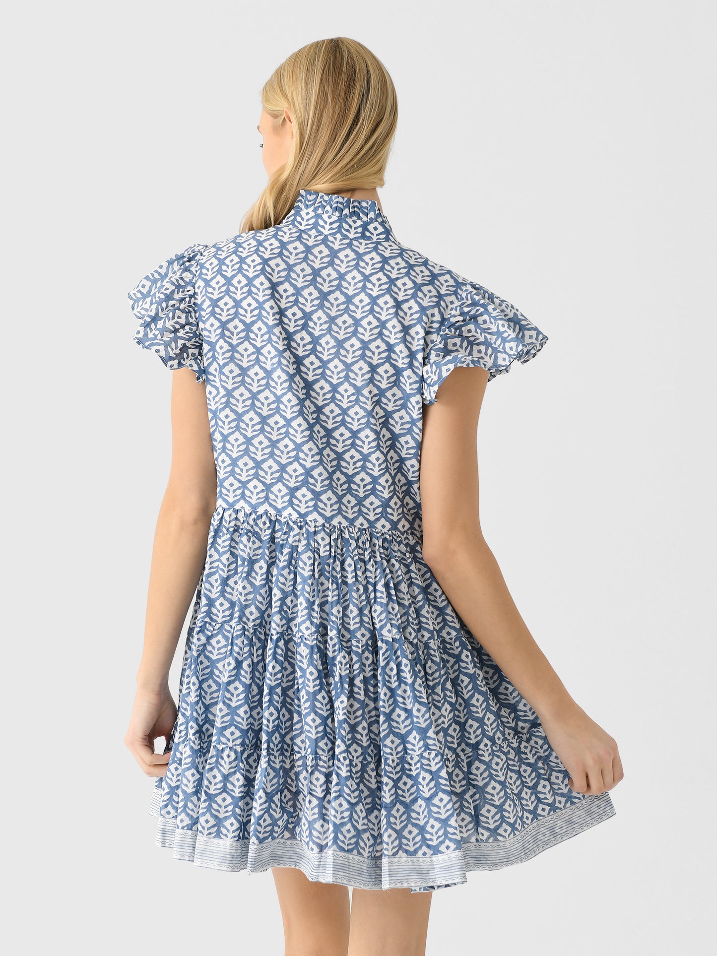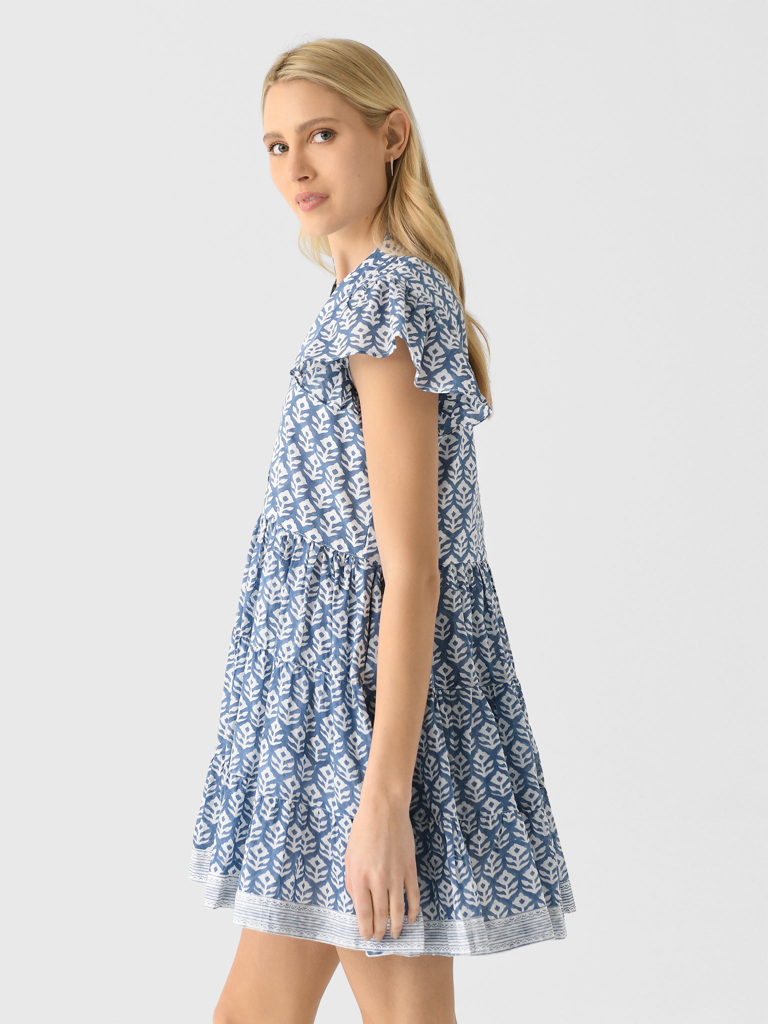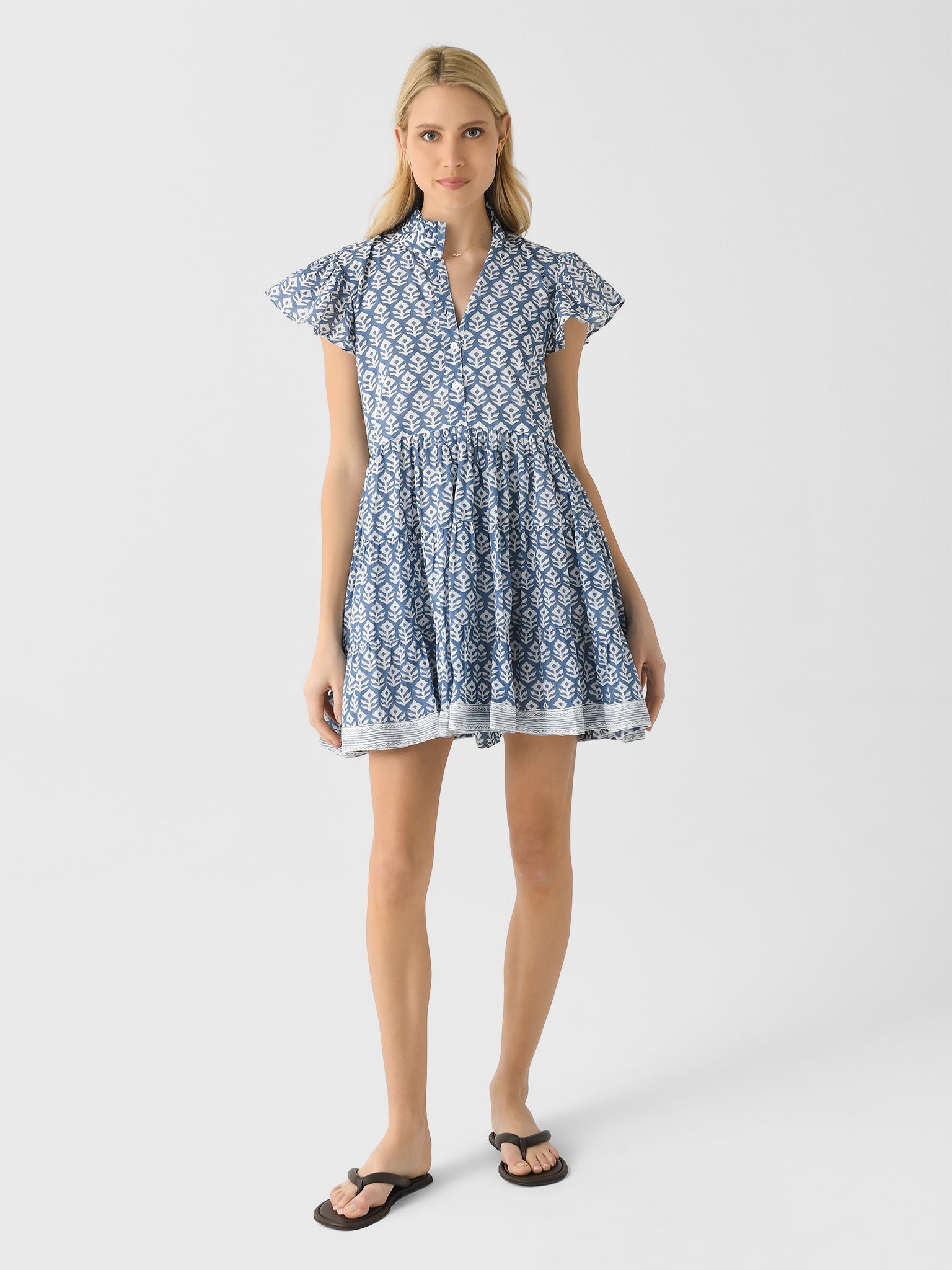 This airy mini dress is made from lightweight cotton and features a custom print and flutter sleeves.