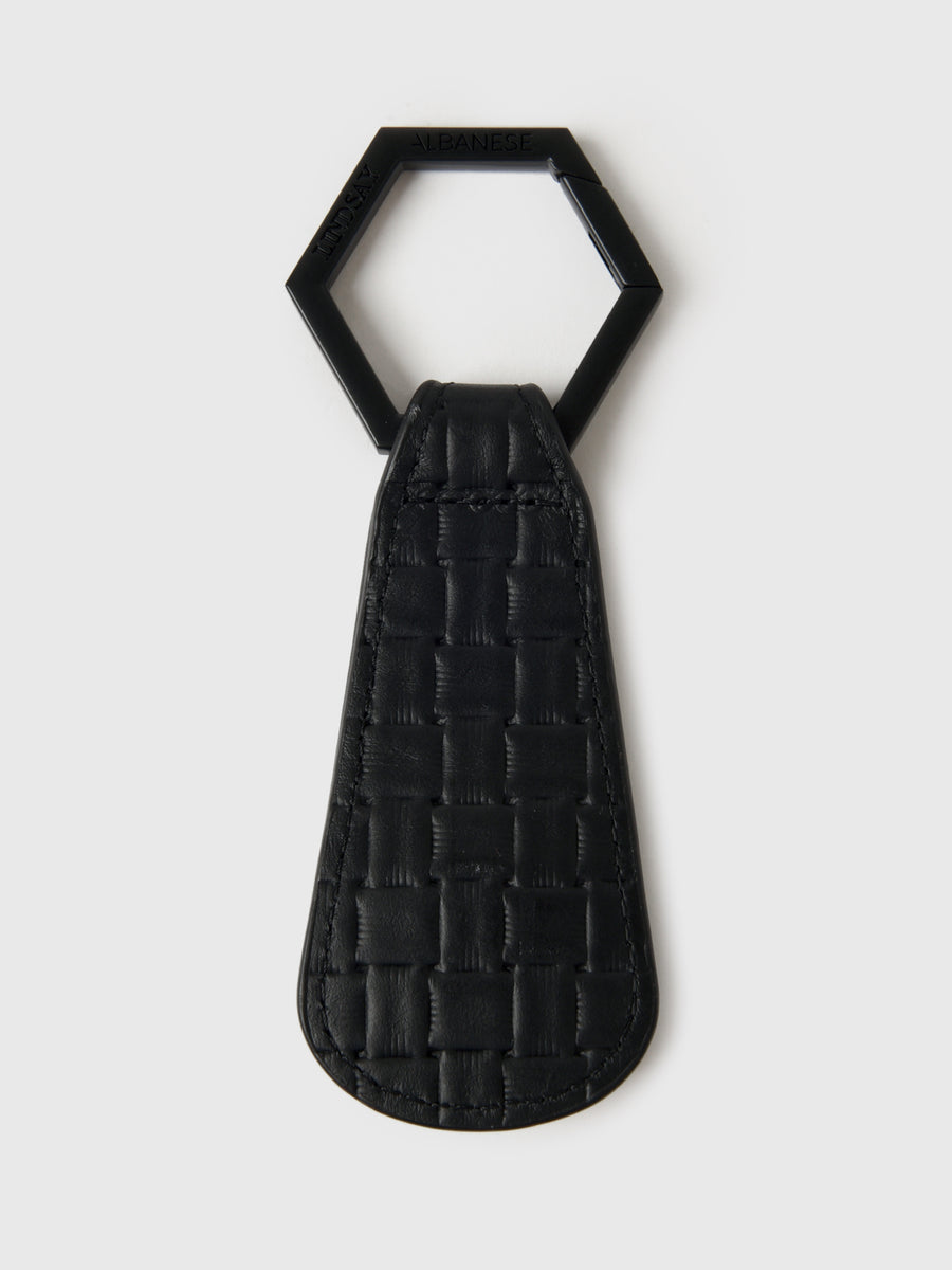 Hat Holder High-Powered Magnetic Closure Holds Most Hats Depending on Brim Thickness Attaches to Most Handbag Straps Depending on Thickness Basketweave Detail Genuine Leather Fabrication Dimensions: 5.25 in. L x 0.37 in. W