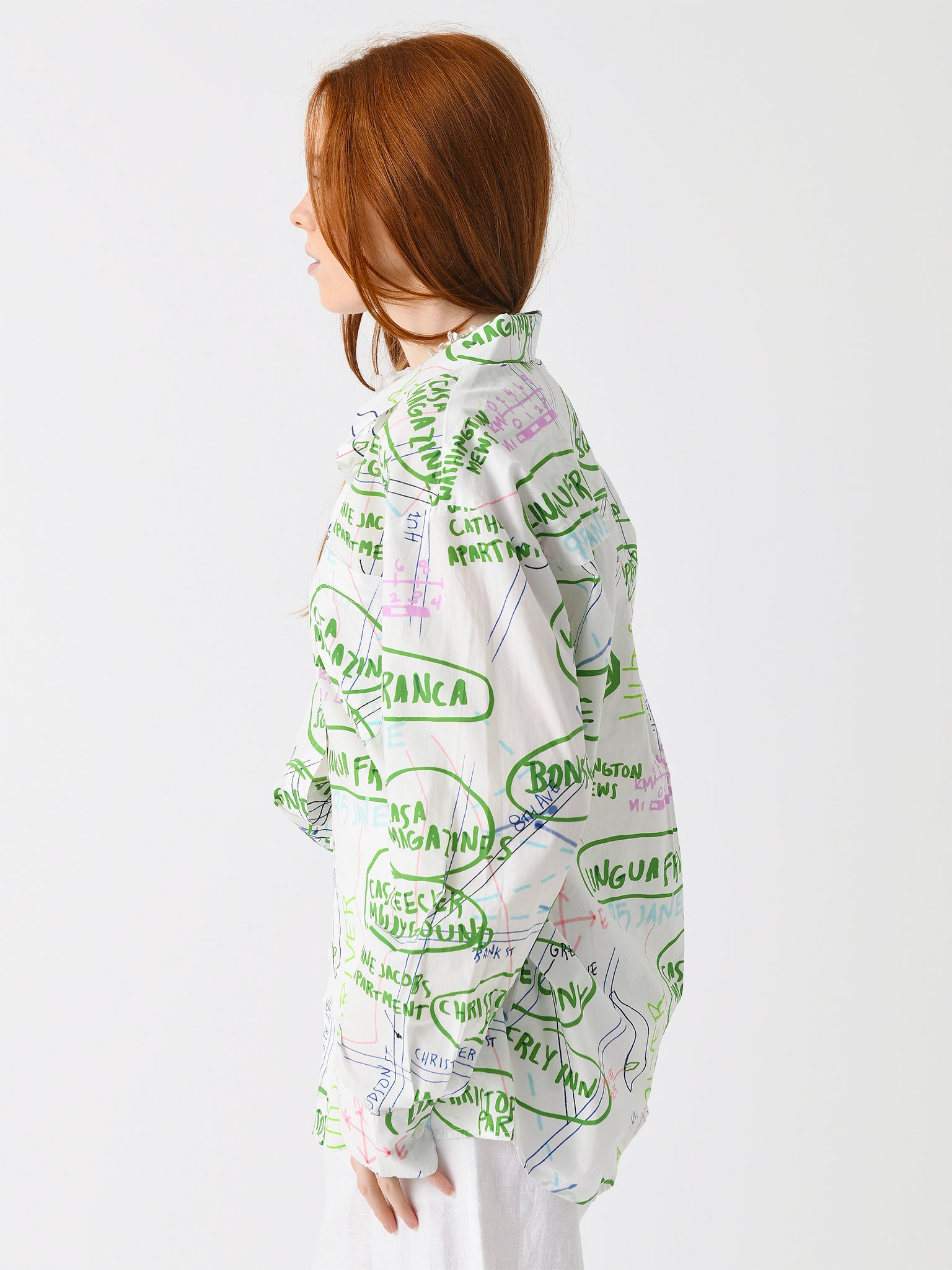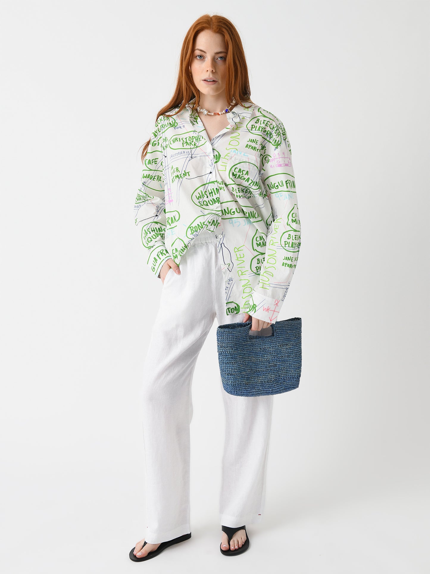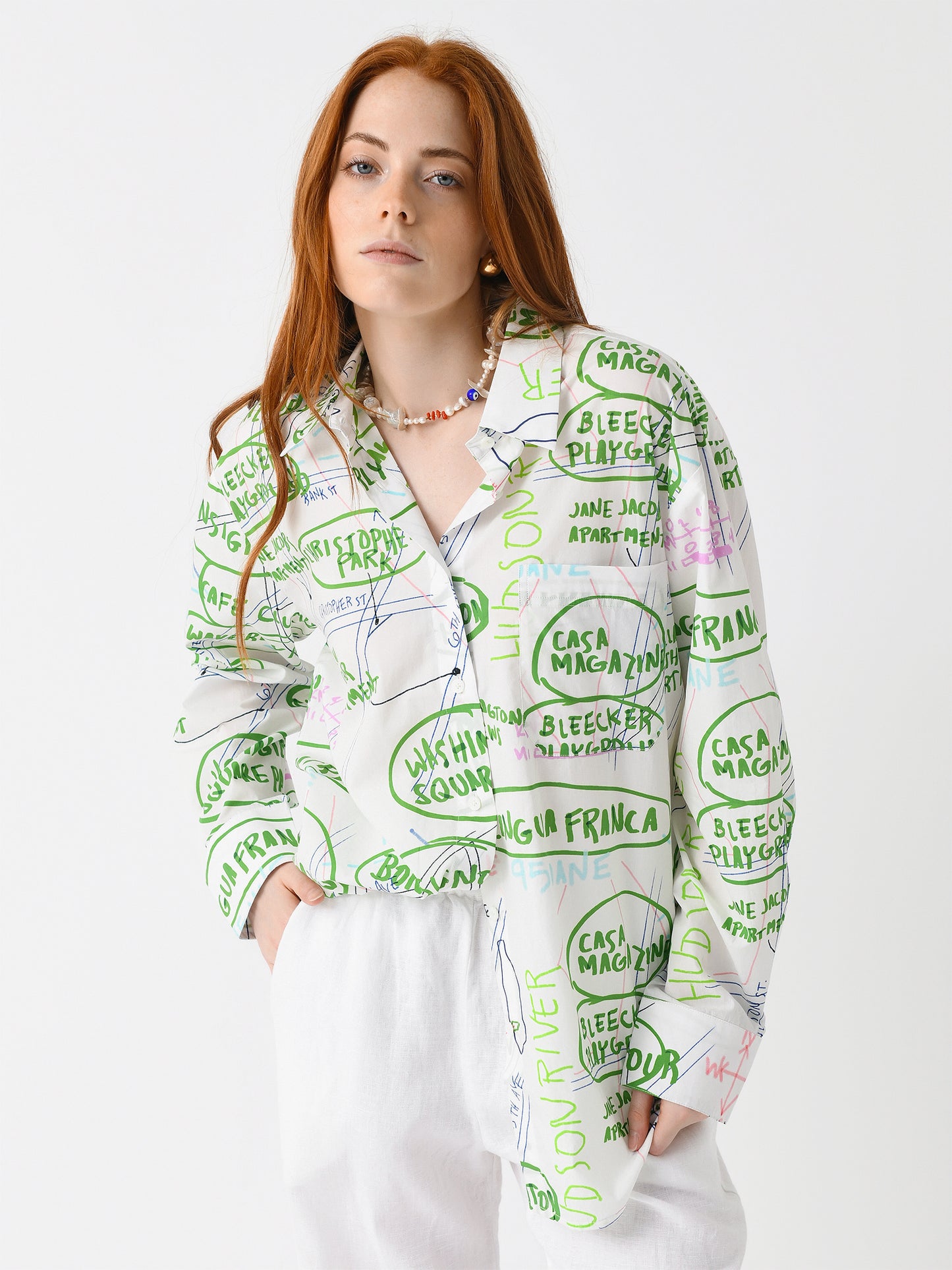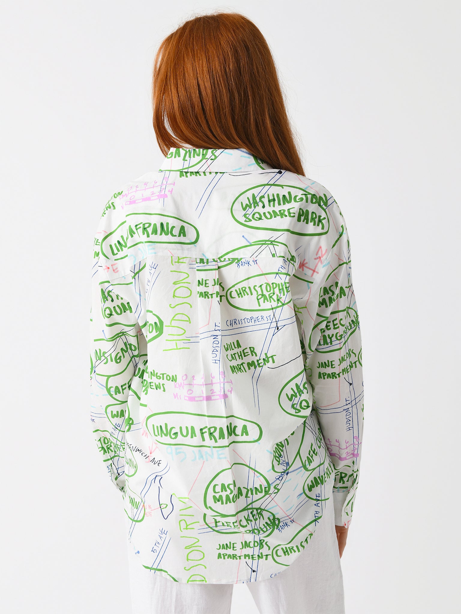 A menswear-inspired button-down shirt featuring a custom West Village map print constructed from soft-washed cotton.