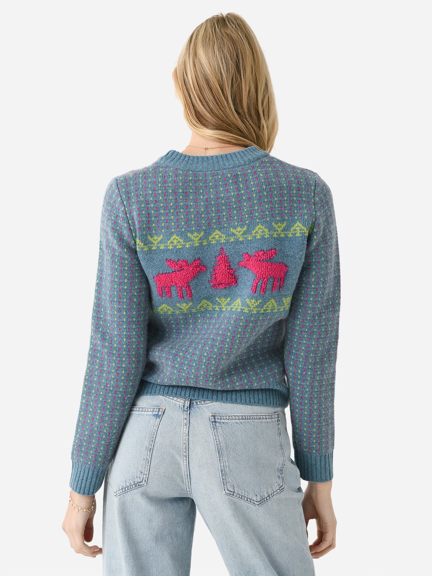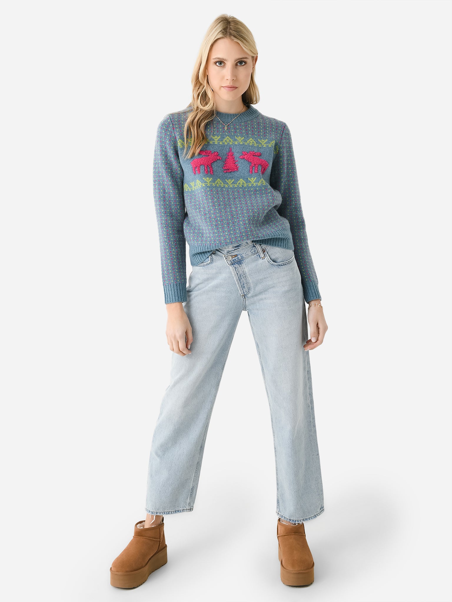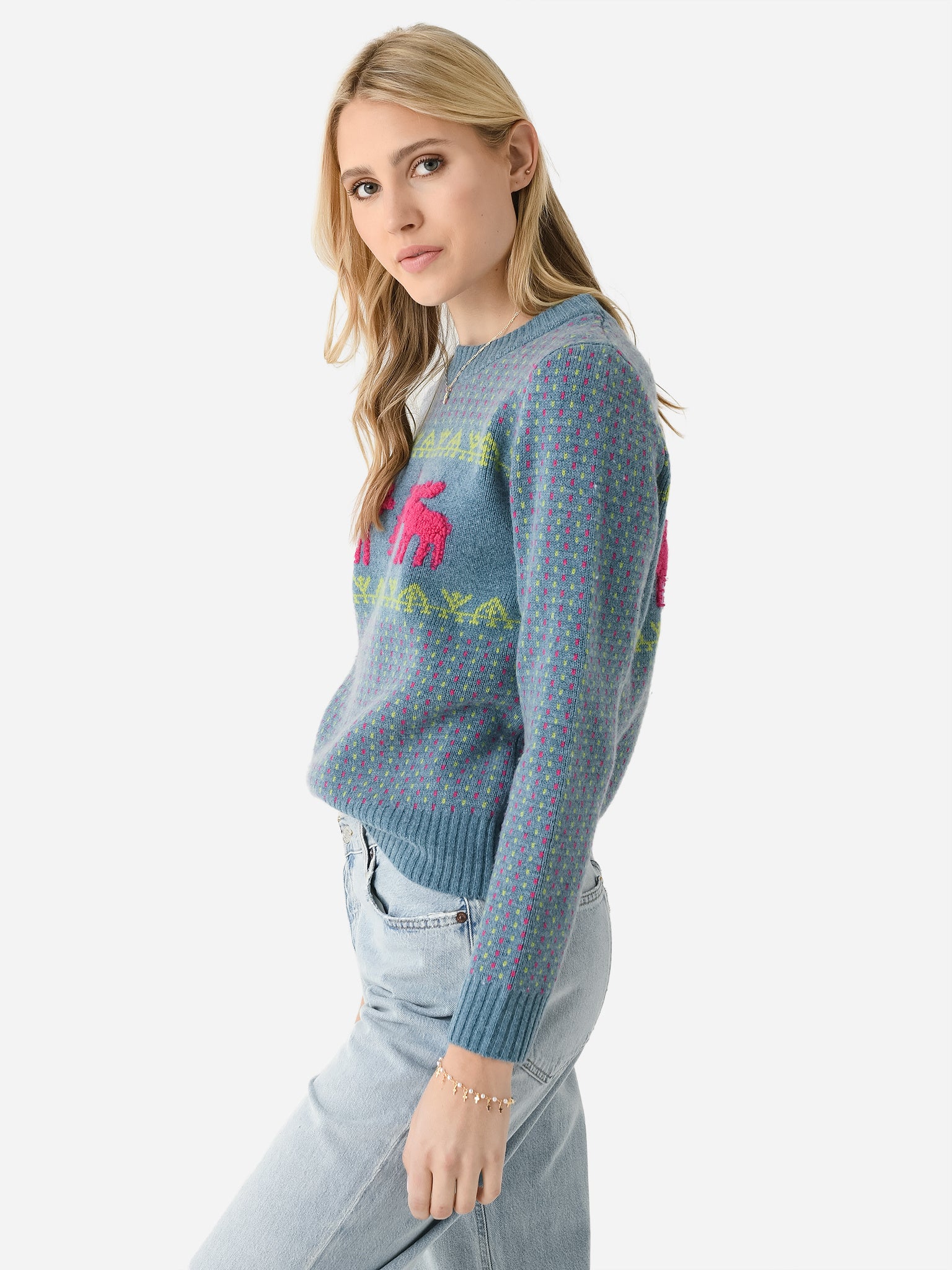 This wool-cashmere blend sweater is vintage-inspired and features a textured fuzzy jacquard design.