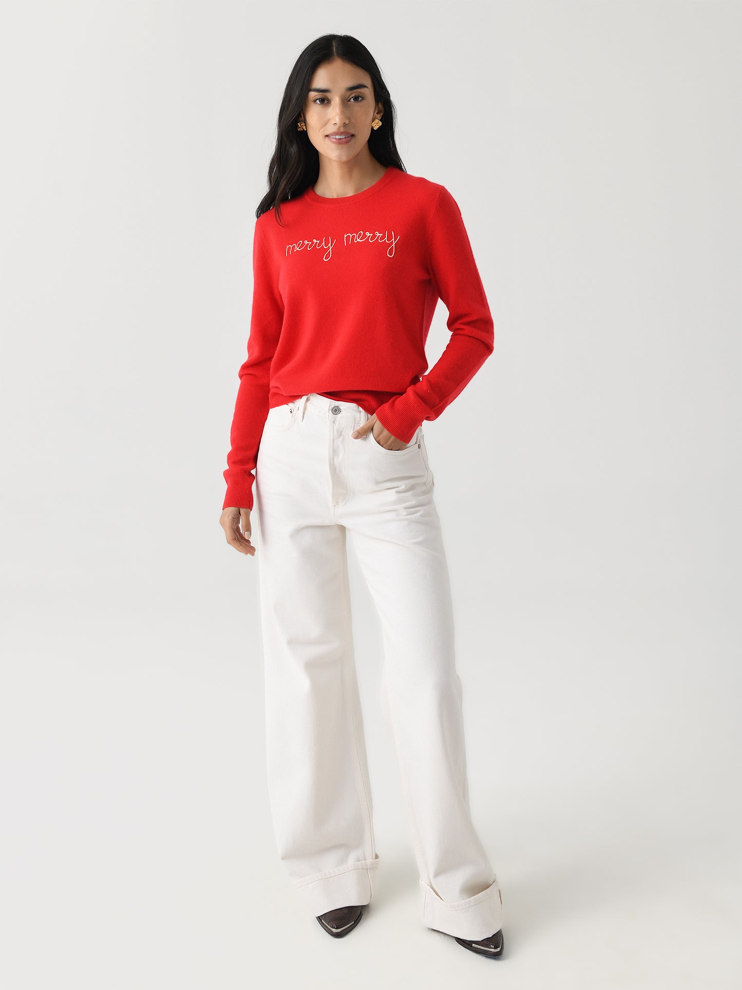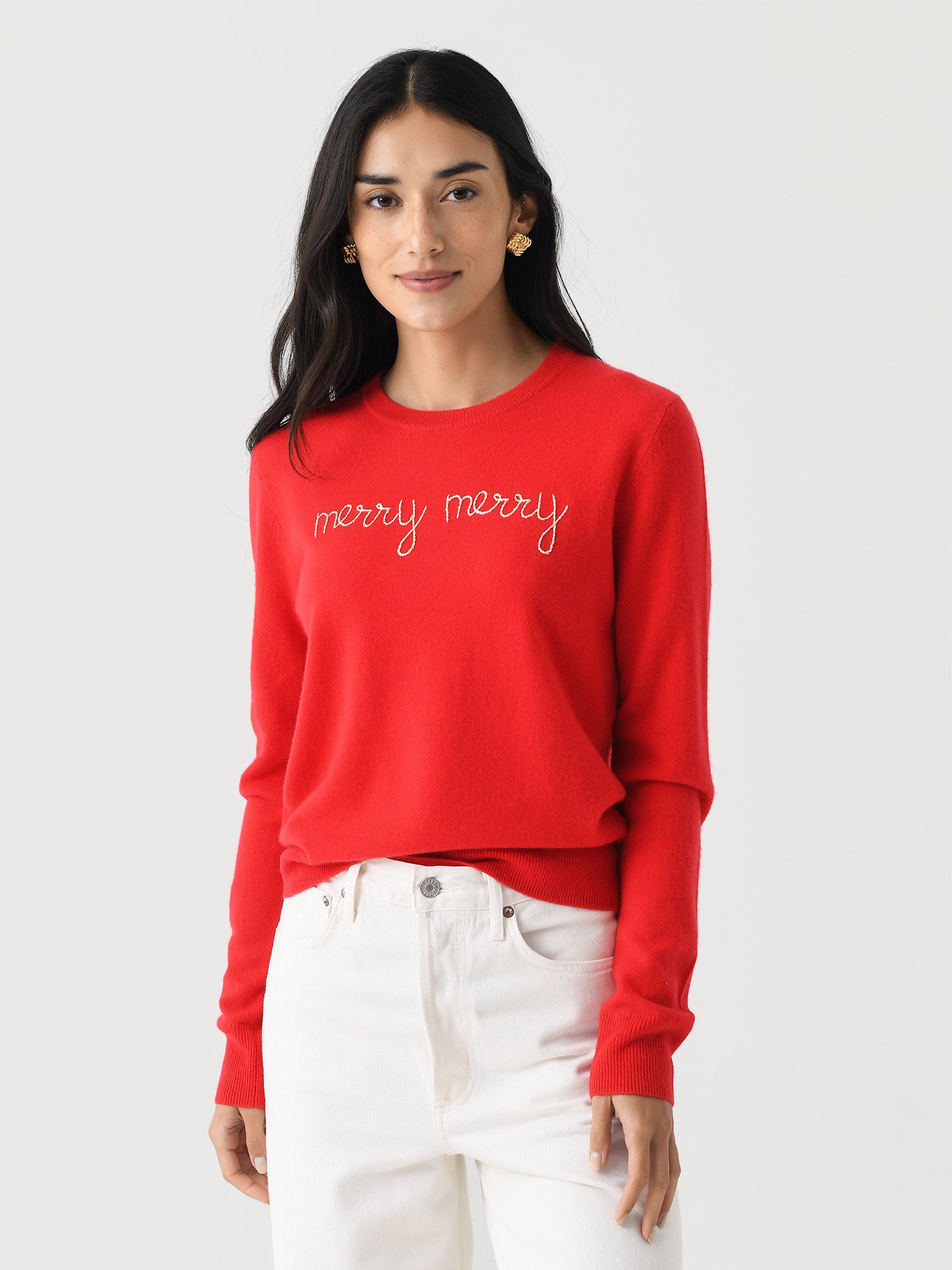 A lightweight sweater made from super soft cashmere with a festive hand-embroidered design.