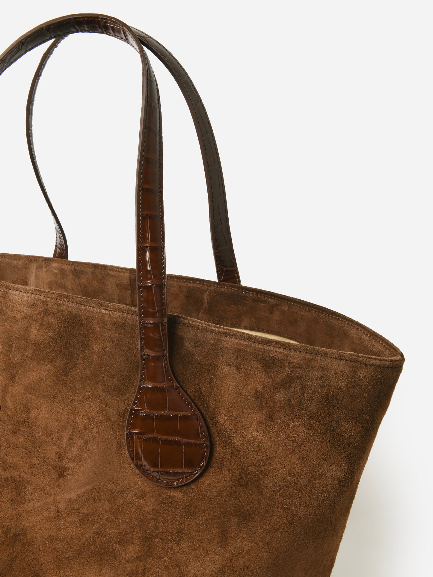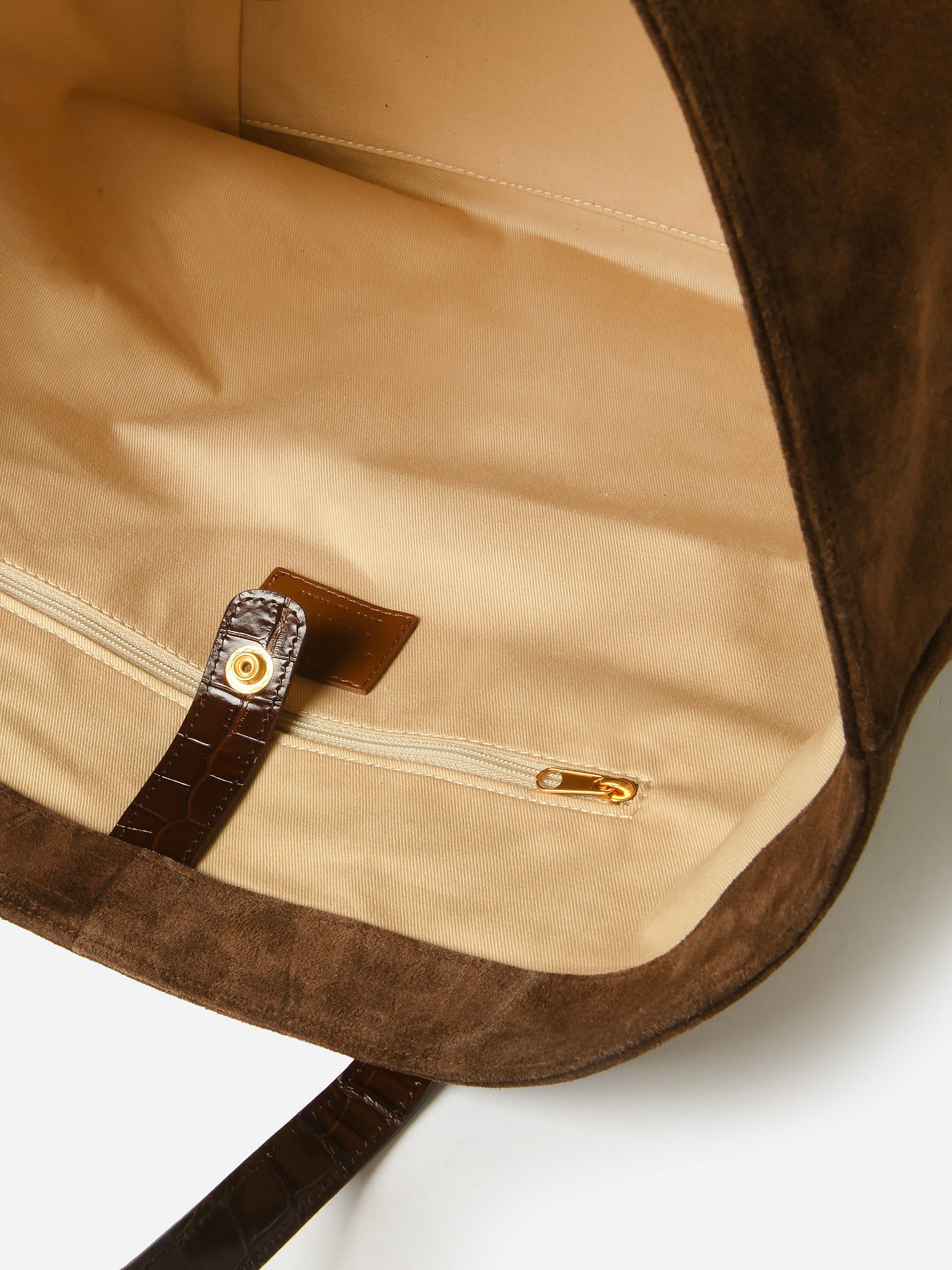 Slouchy tote bag made from soft suede with croc-embossed leather straps.