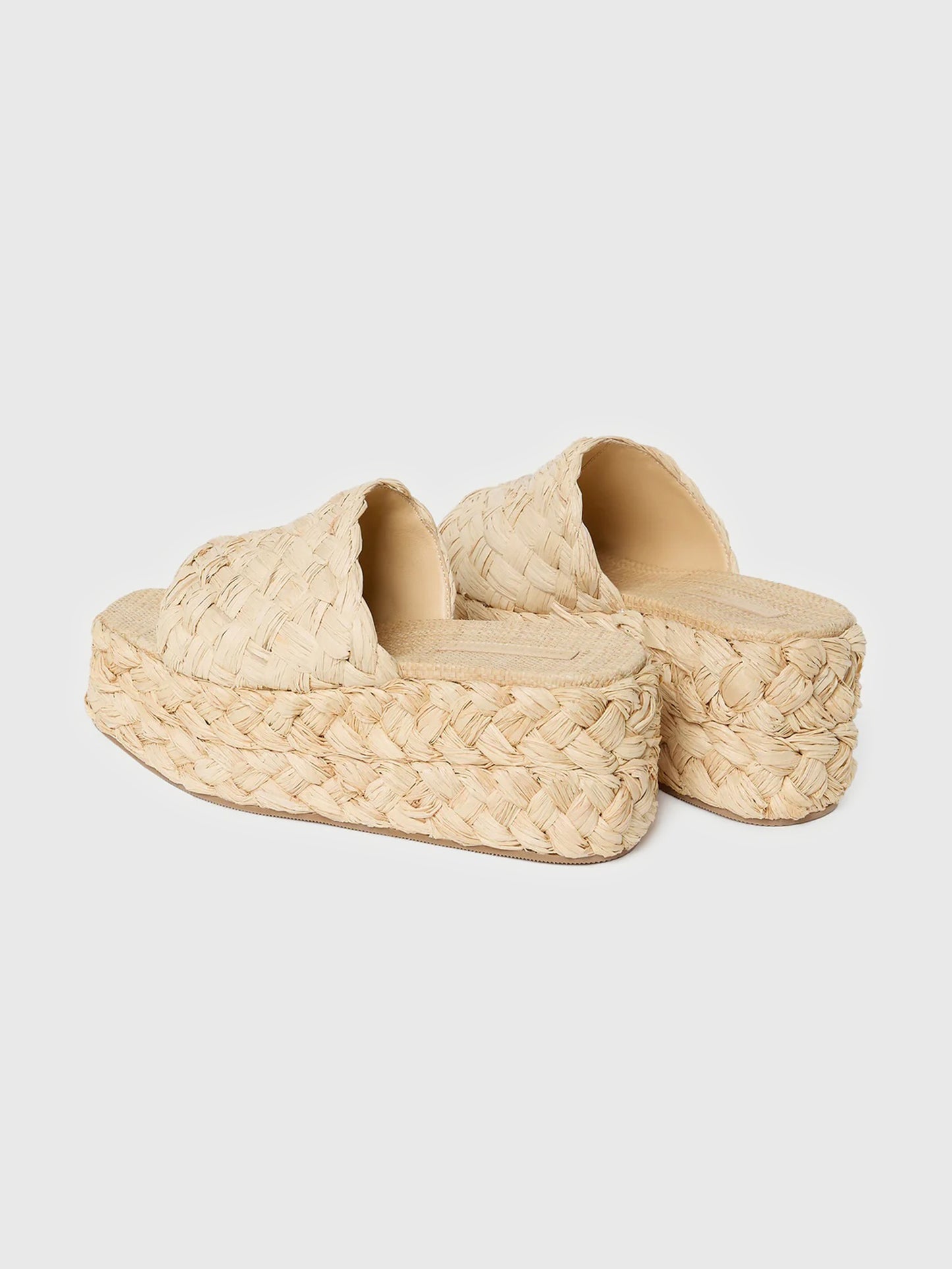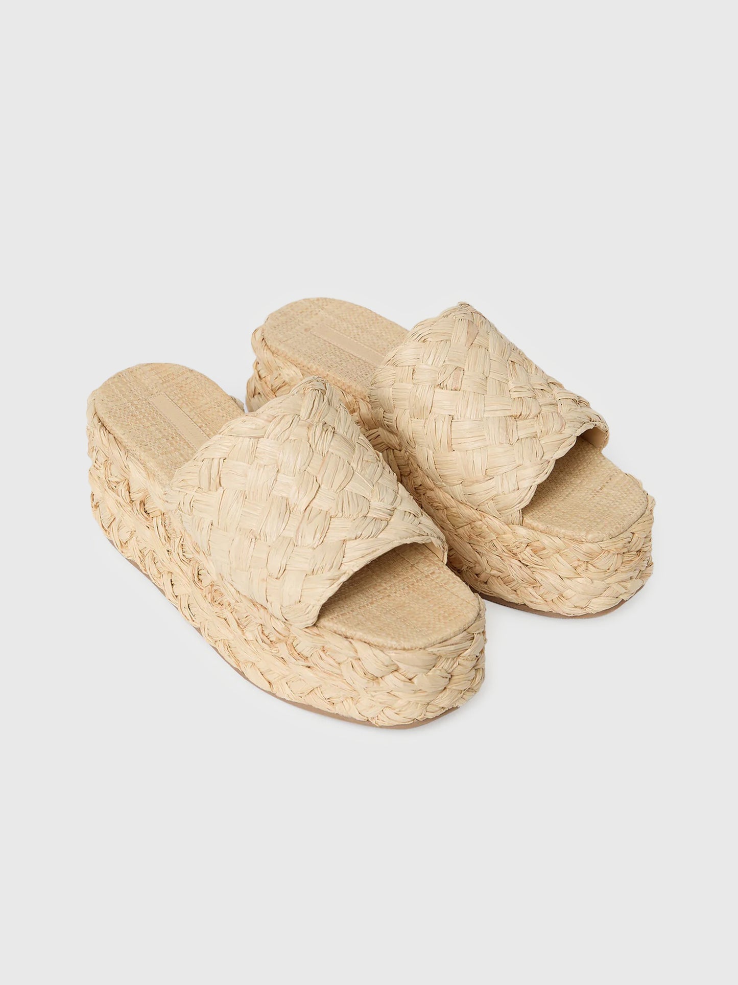 An effortlessly chic slip-on platform sandal made from braided raffia.