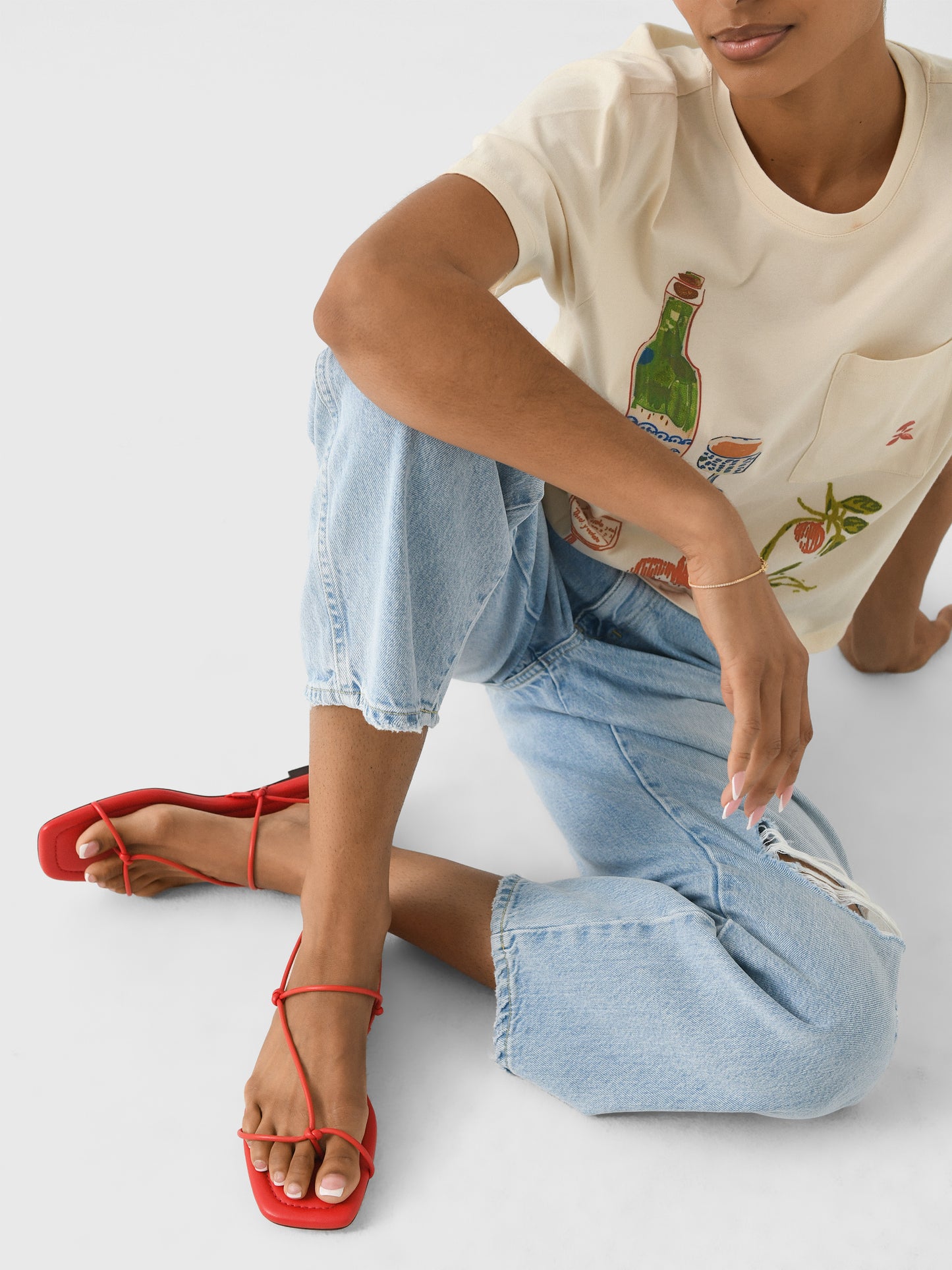 A minimal strappy sandal made from nappa leather with a padded footbed.