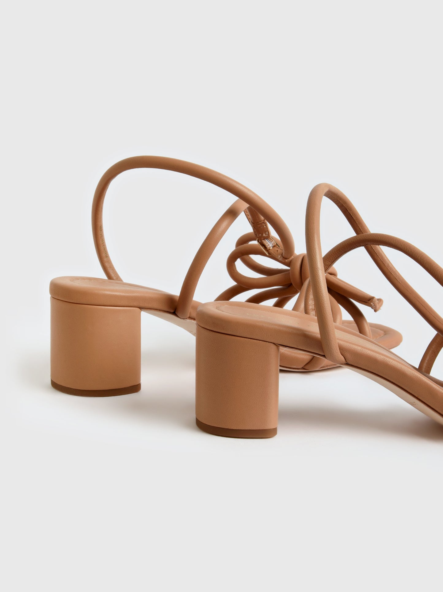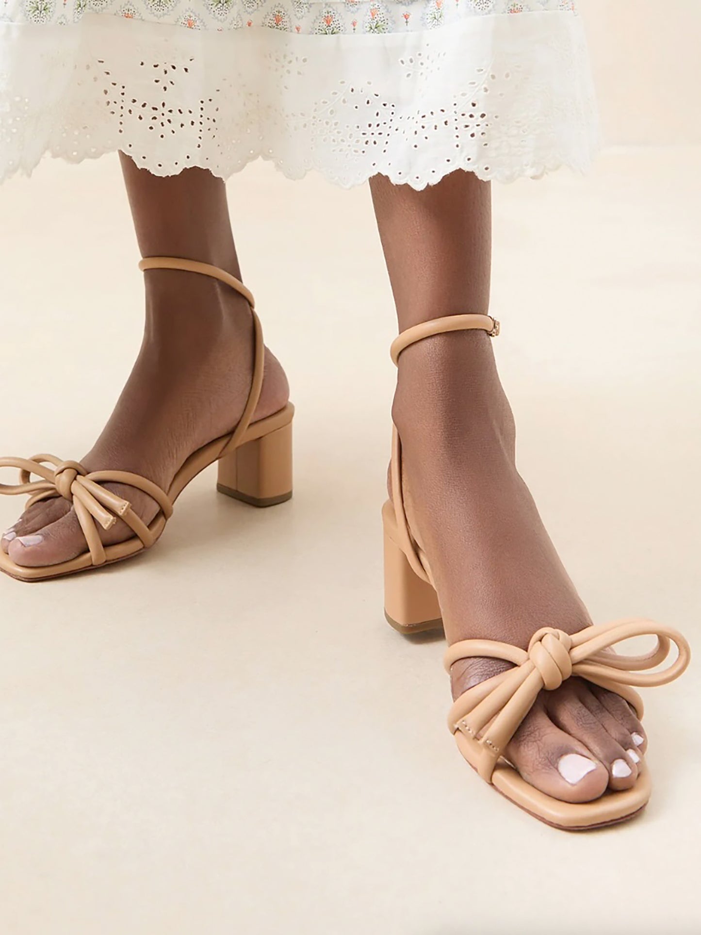 Step into effortless elegance with this heeled sandal. The delicate straps and playful bow detailing create a sophisticated look, perfect for any occasion.