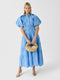 A gingham-printed maxi dress featuring voluminous sleeves, a partial button placket, and an adjustable belt.