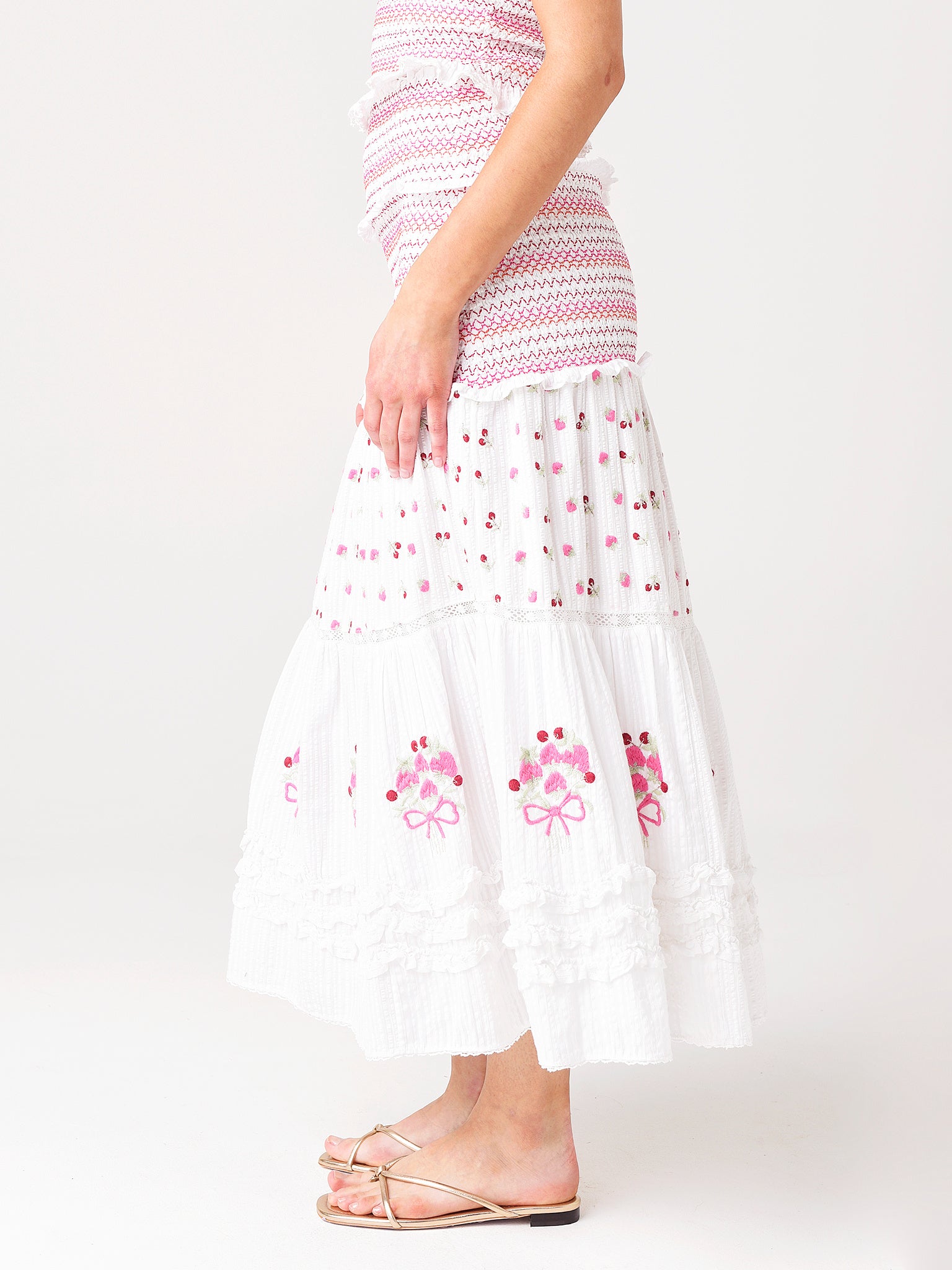 The Loveshack Fancy Women's Nightingale Skirt is a super sweet number with embroidery and airy vibes to uplift your spring-summer wardrobe.