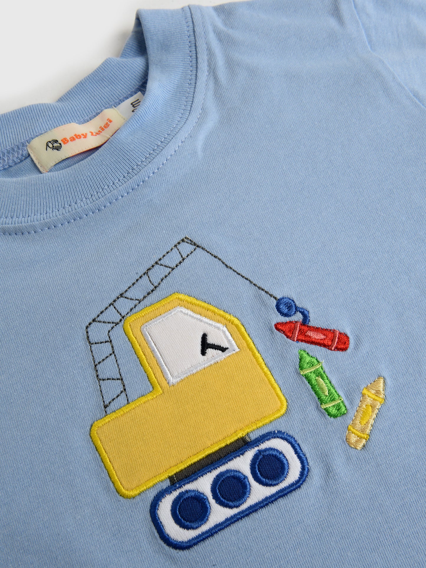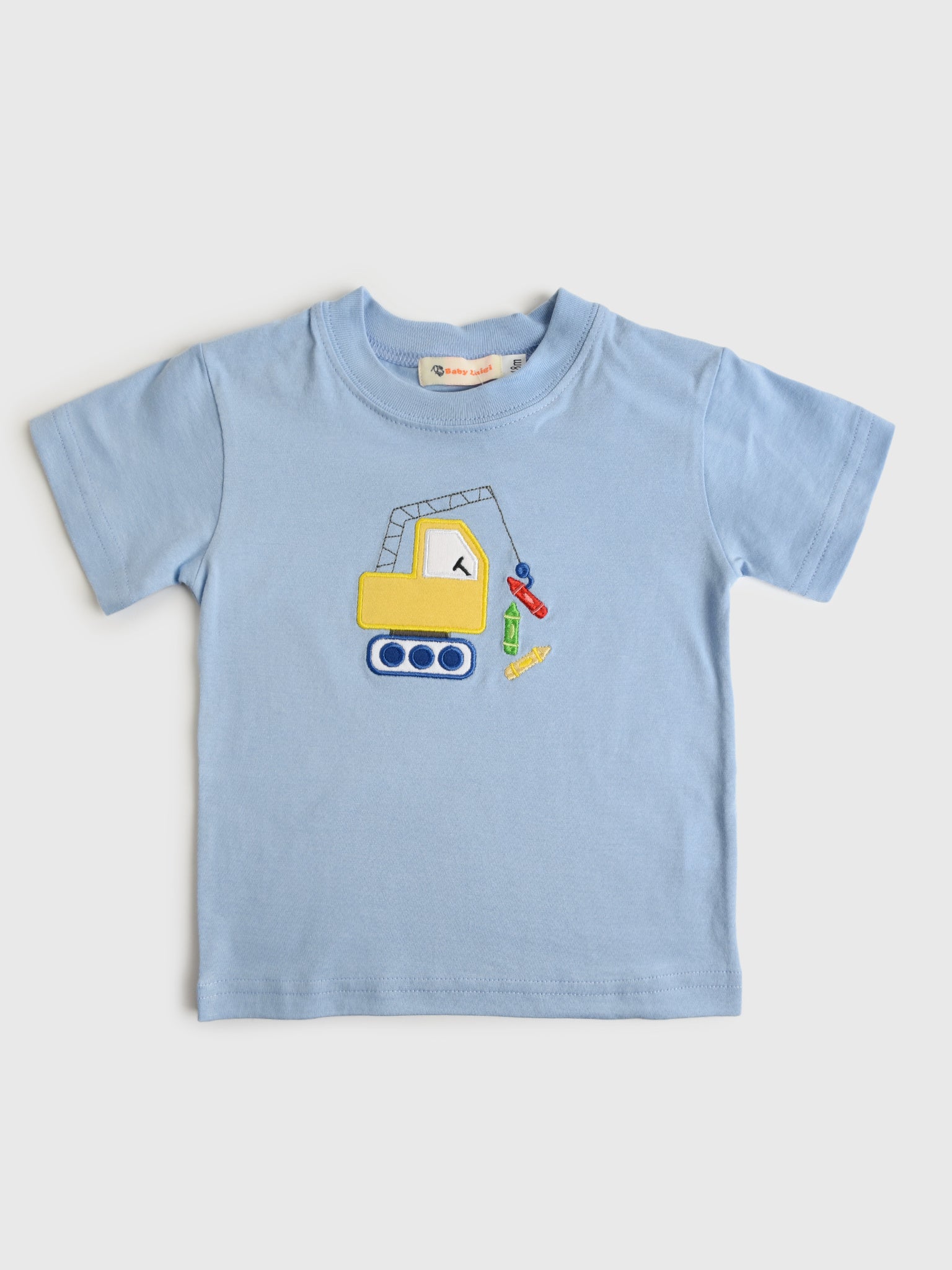 A lightweight cotton tee with an embroidered crane and crayon graphic.