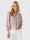 A lightweight and airy cotton blouse with a floral block print and puff sleeves.