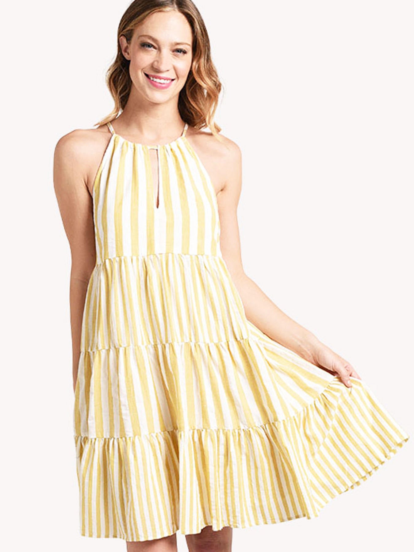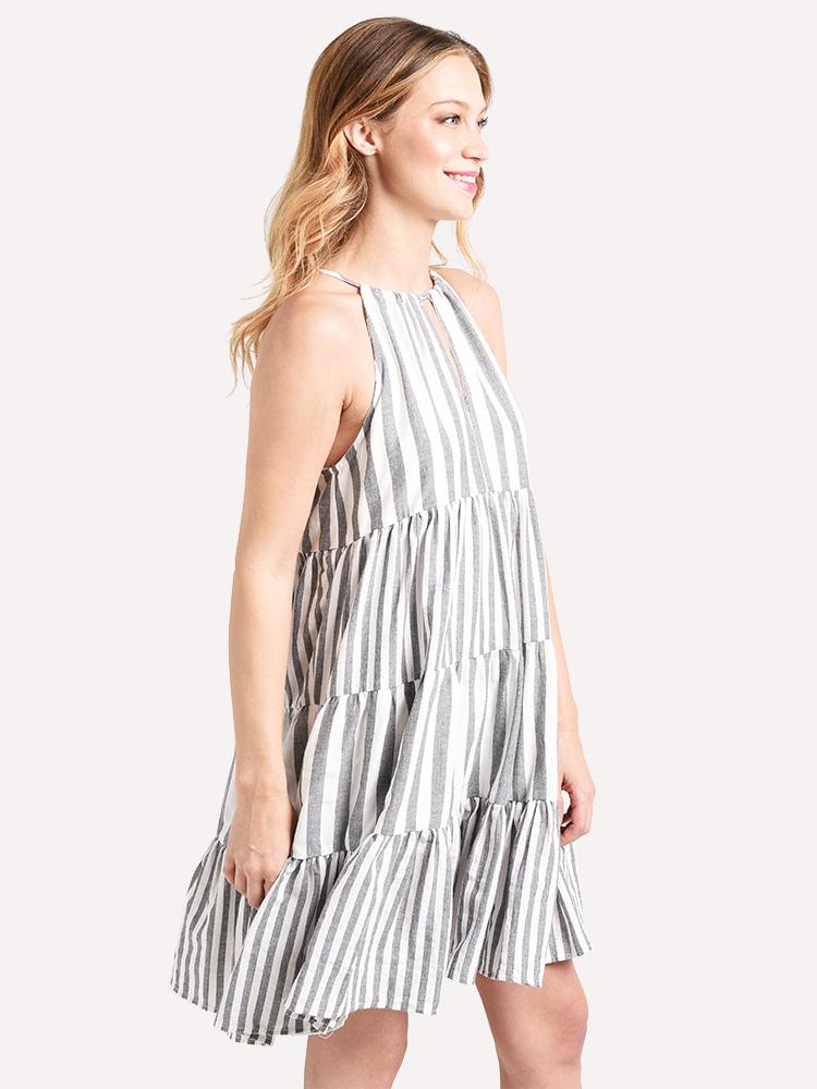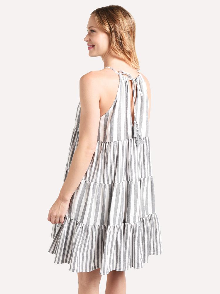 Take the Main Strip Halter Neck With Tassel Trim Stripe Dress from brunch with the girls to day shopping, effortlessly.