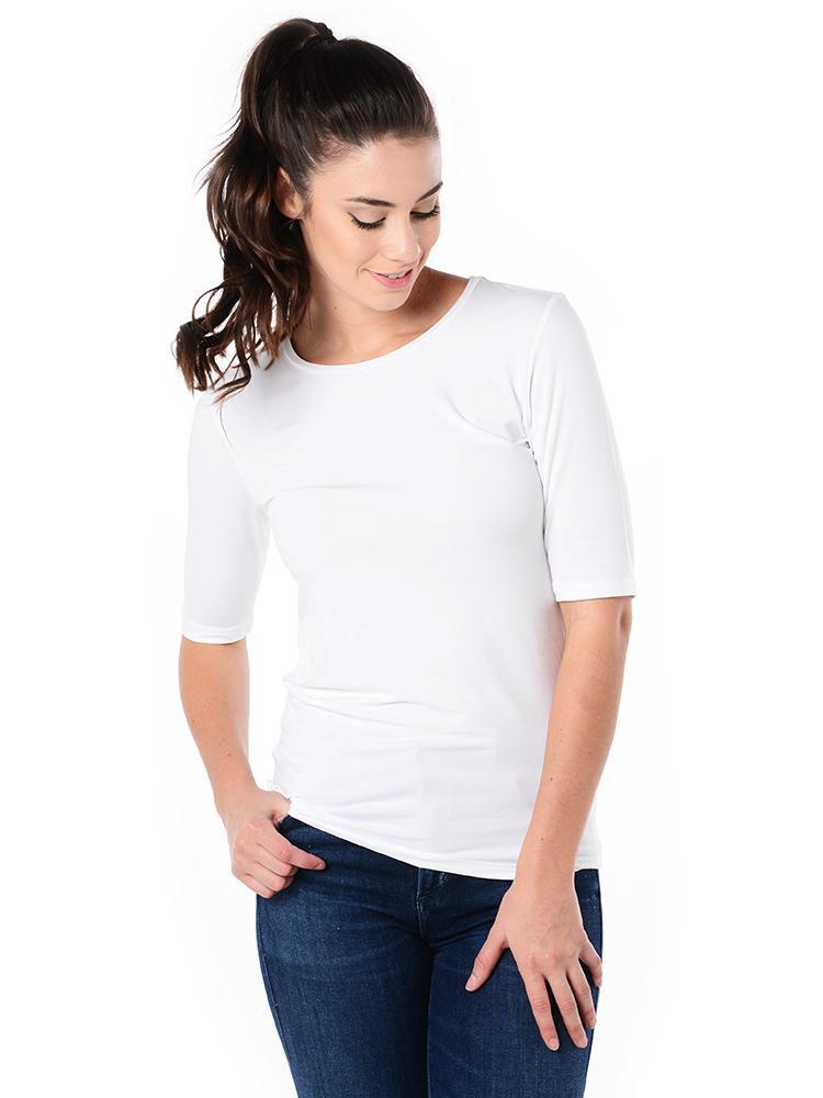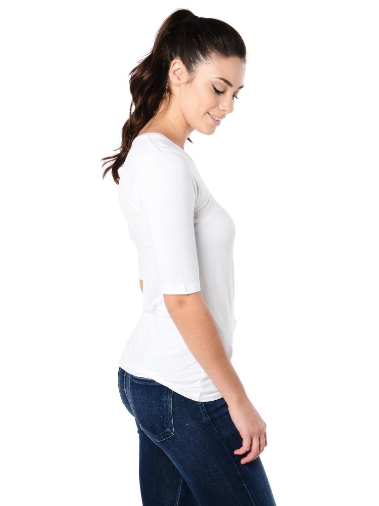When you need the perfect basic the Majestic Elbow Sleeve Crew Neck Tee is a soft comfy choice.