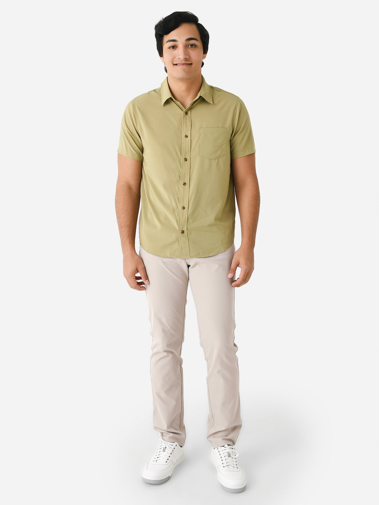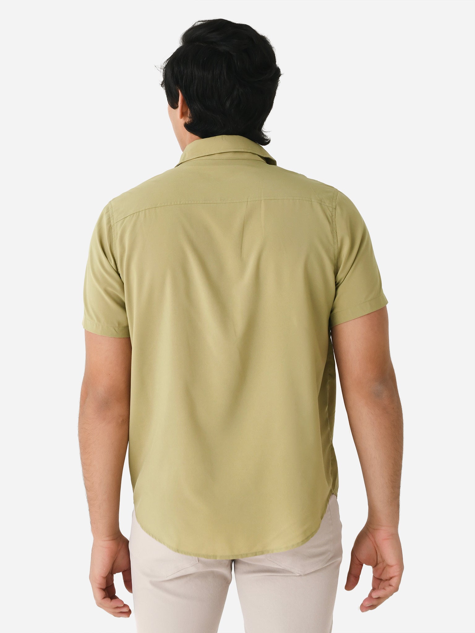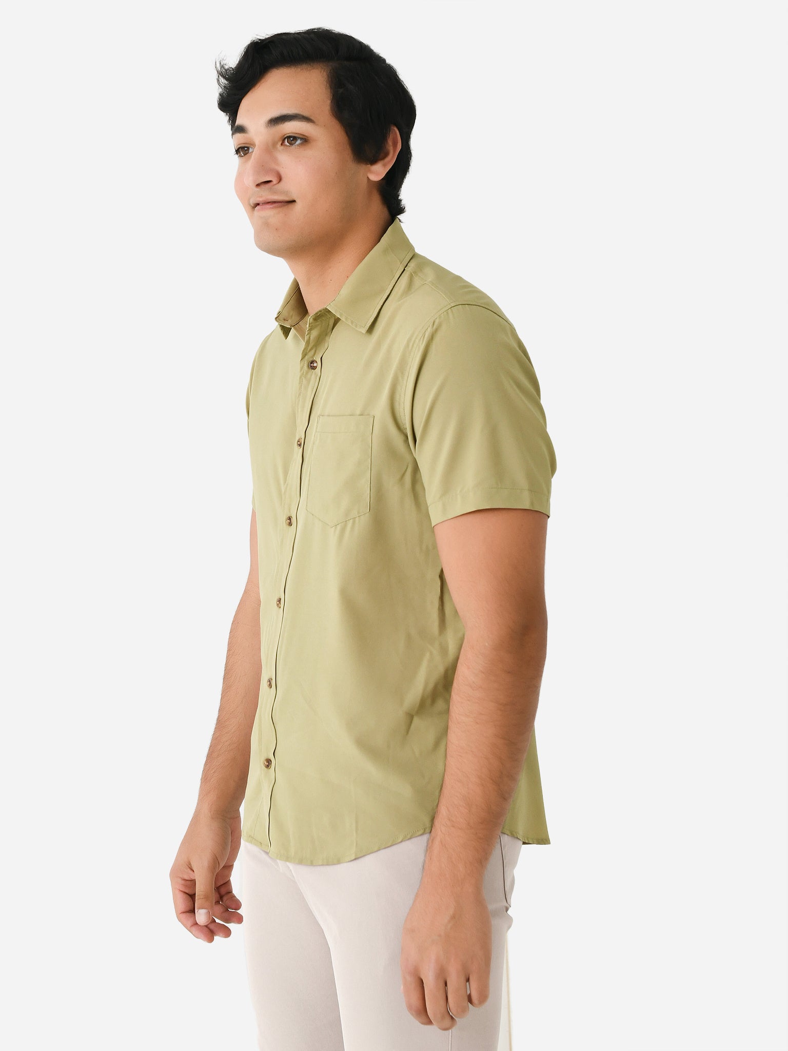 A casual short-sleeve button-up shirt crafted from lightweight fabric.