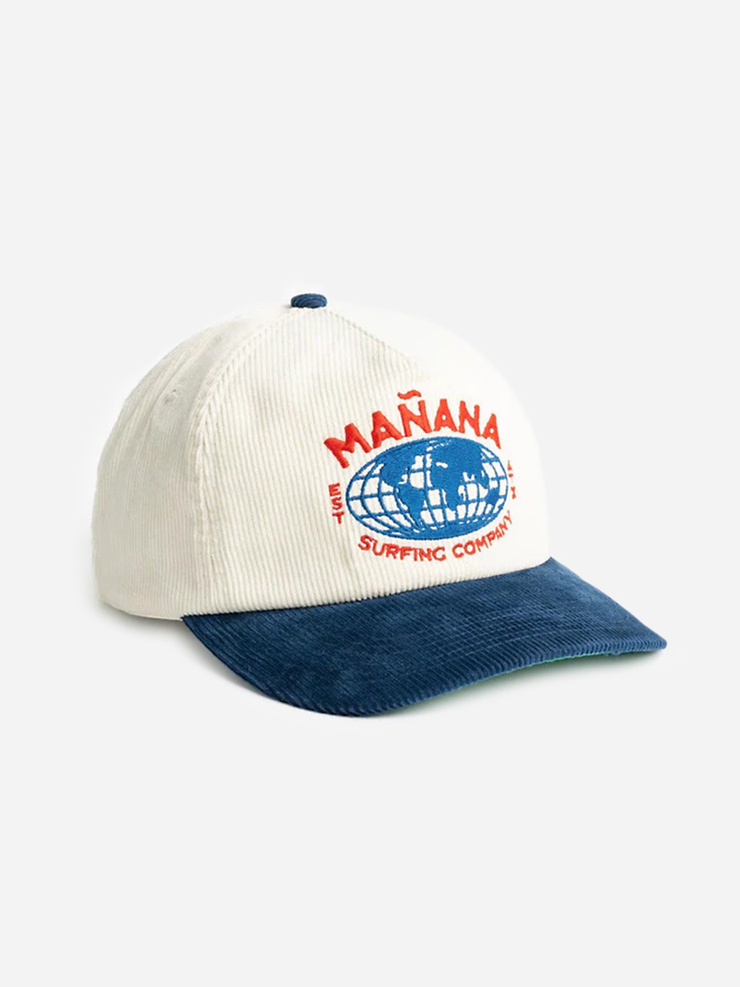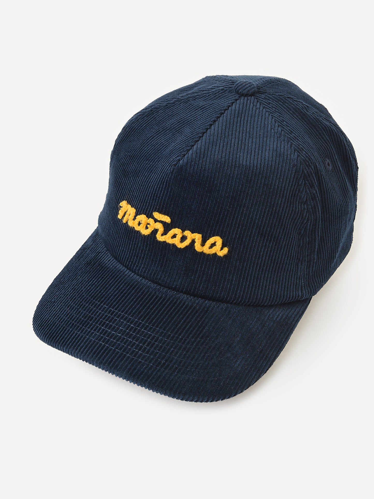 A corduroy hat with a stitched Mañana logo and a five-panel mid-crown design.