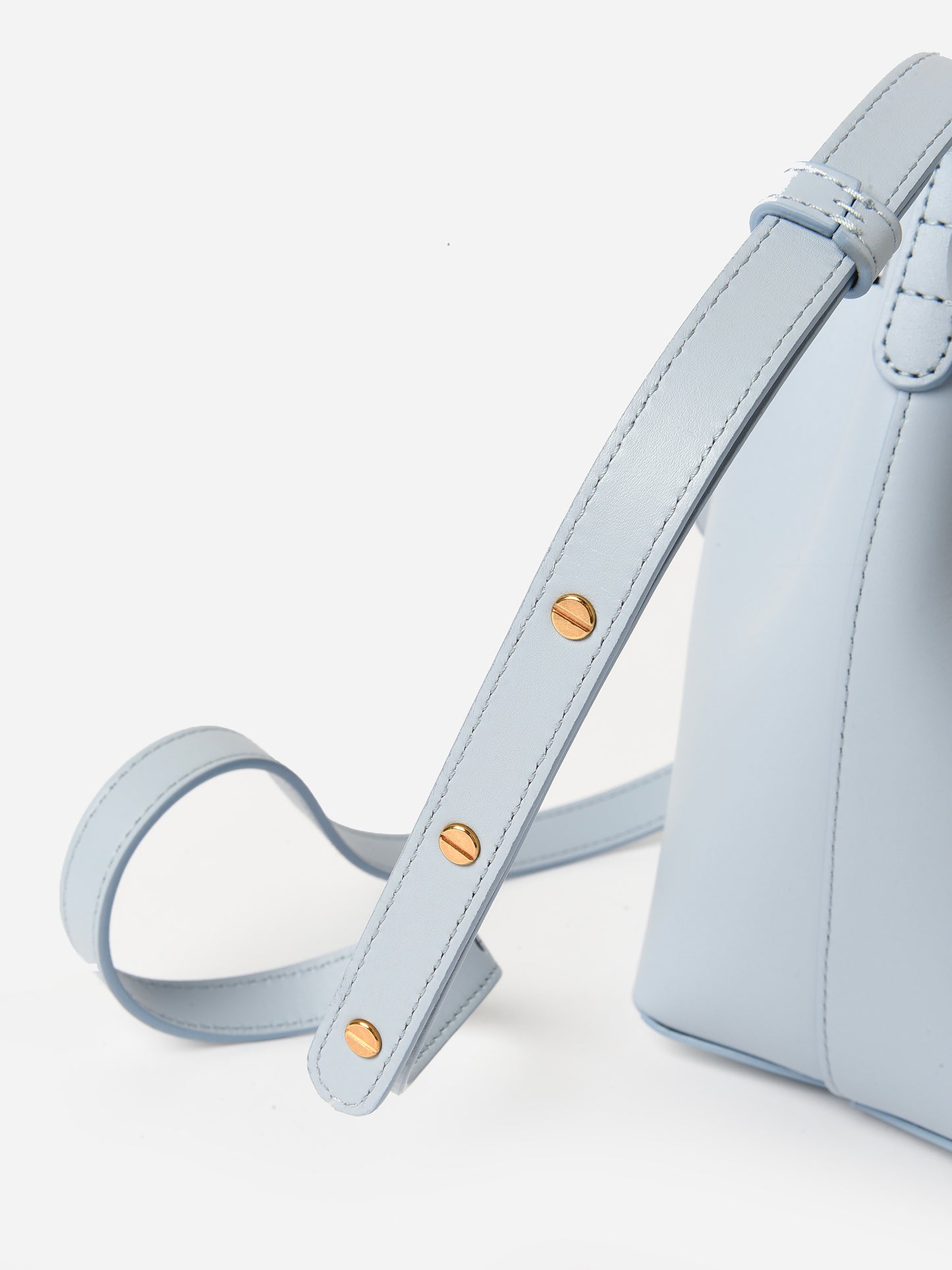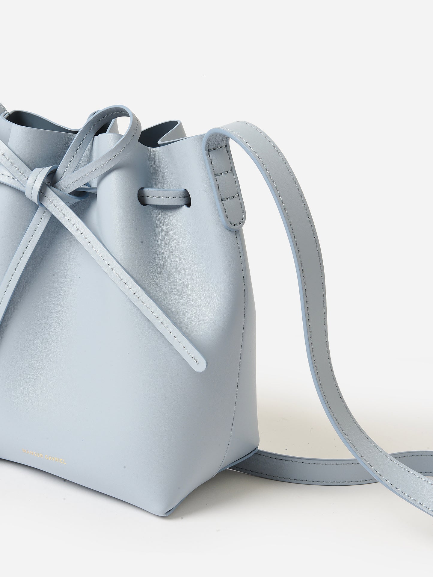 A super-mini bucket bag made from vegetable-tanned Italian leather with a cinched drawstring closure.